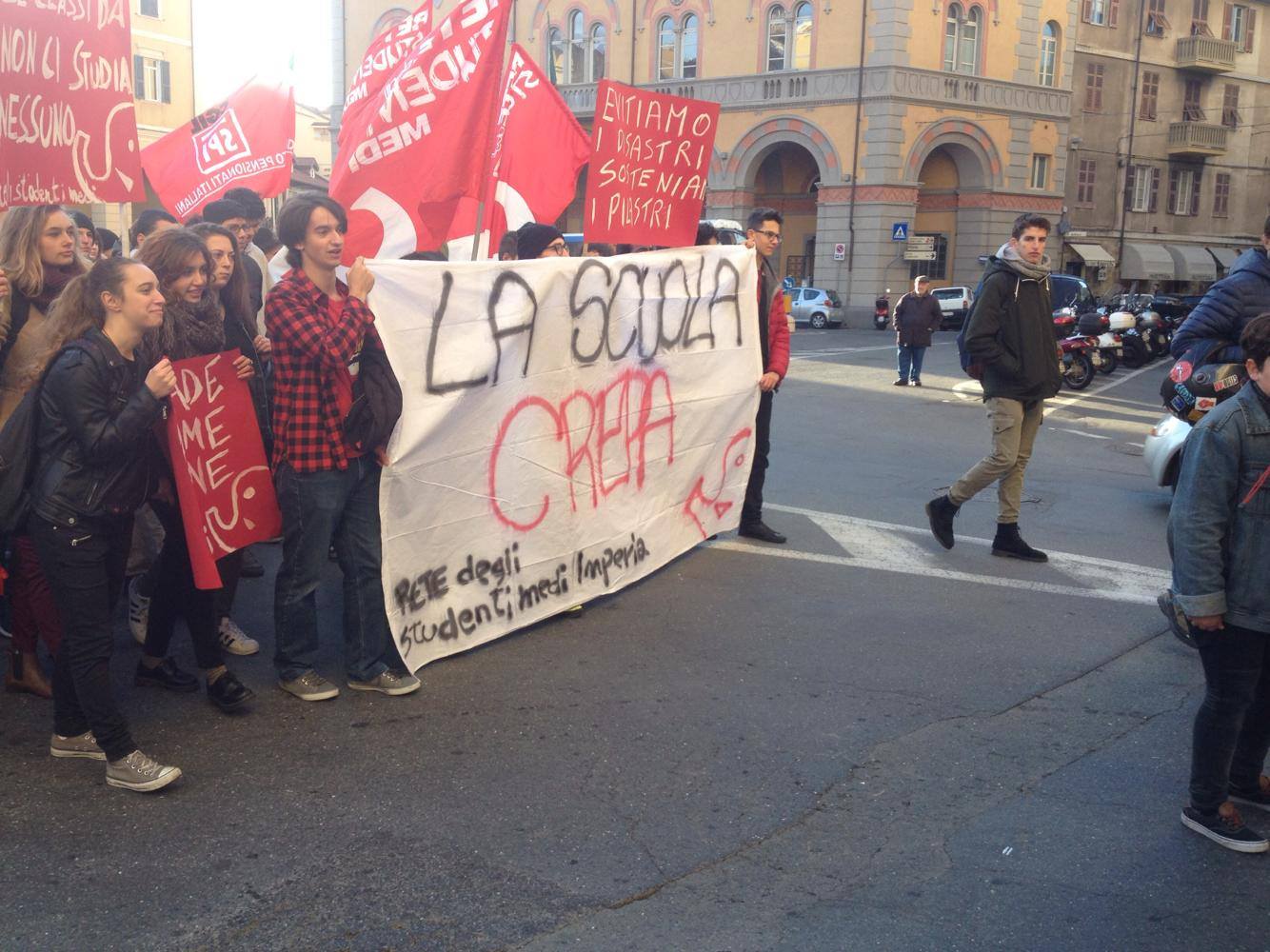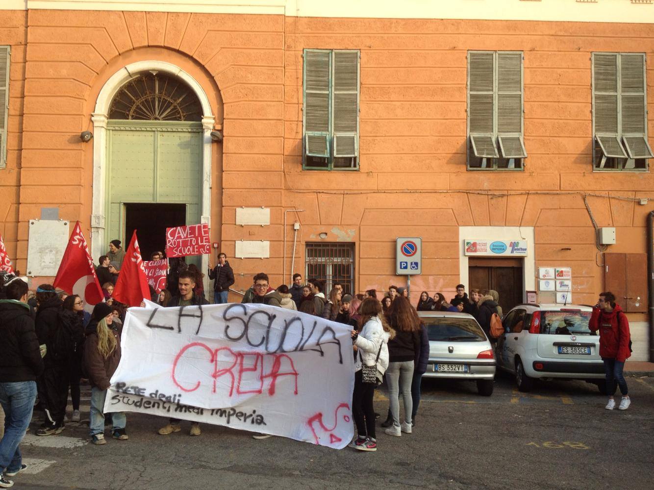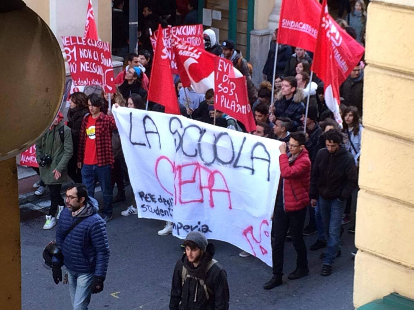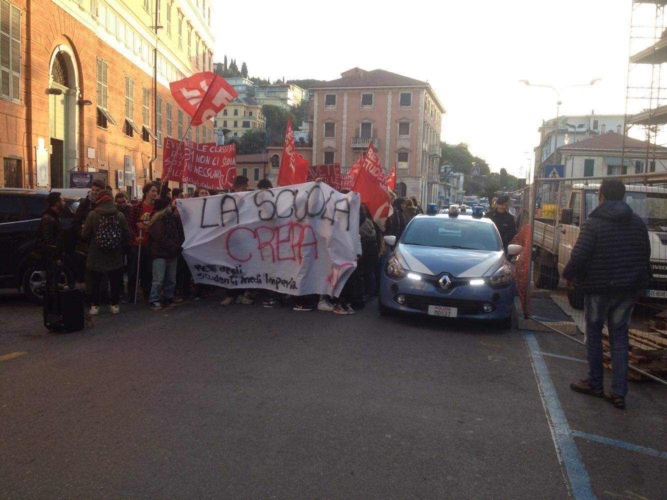 Il corteo “La scuola crepa“, questo lo slogan della manifestazione organizzata dalla “Rete degli studenti medi di Imperia”, in collaborazione con la Cgil, è partito poco dopo le 8 da piazza Ulisse Calvi, snodandosi, scortato da Polizia e Carabinieri, lungo via Amendola, via Bonfante, piazza Dante, via della Repubblica e Viale Matteotti, sino a raggiungere la sede della Provincia, dove una delegazione incontrerà il presidente della Provincia Fabio Natta per consegnare un documento con le richiede degli studenti in tema di edilizia scolastica.