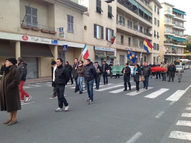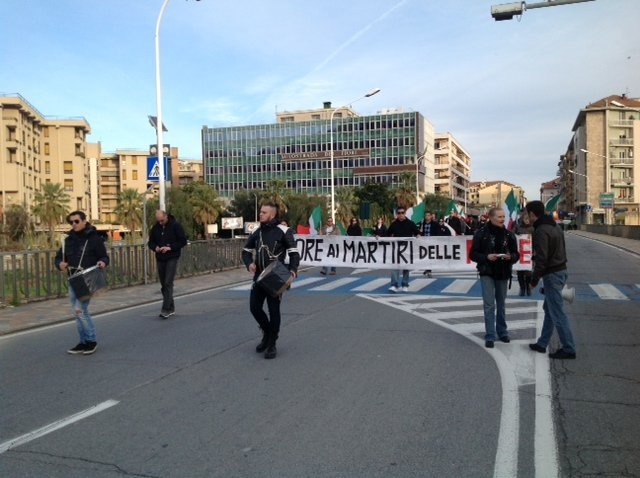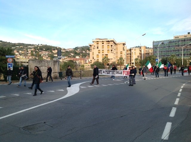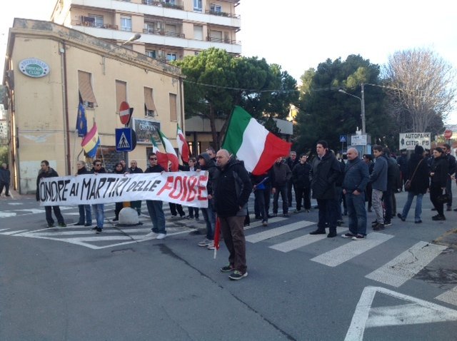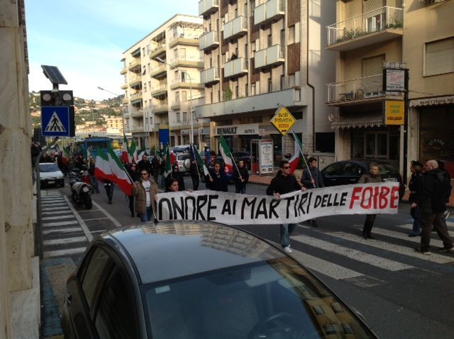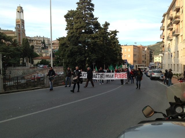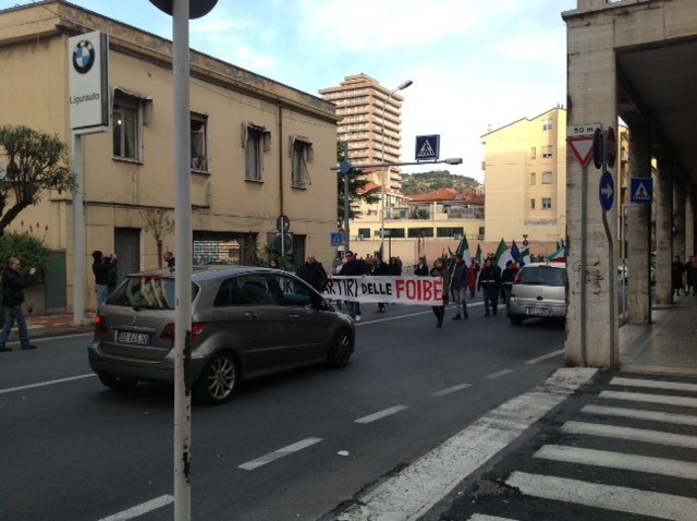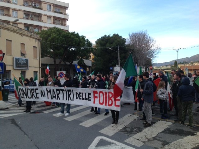 Circa un centinaio di persone hanno partecipato, questo pomeriggio, alla commemorazione dei martiri delle Foibe. Il corteo è partito da via Ludovico Brea (Oviesse) ed è giunto sino ai giardini dedicati ai martiri delle Foibe (di fronte a piazza della Vittoria). L’iniziativa promossa dal neonato “Coordinamento X Febbraio” ha registrato la presenza del capogruppo di “Imperia Riparte” Giuseppe Fossati e del coordinatore provinciale dei giovani di Forza Italia , nonché ex consigliere comunale, Angelo Francesco Dulbecco. Presenti anche alcuni esponenti de “Spazio Avalon” come Valerio Ramini e Manuela Leotta (consigliere comunale a Diano Castello). Presente anche il presidente del comitato provinciale di Imperia dell’associazione nazionale Venezia Giulia e Dalmazia Pietro Tommaso Chersola. All’arrivo del corteo gli interventi e la deposizione dei un mazzo di fiori al monumento in onore ai Martiri delle foibe.