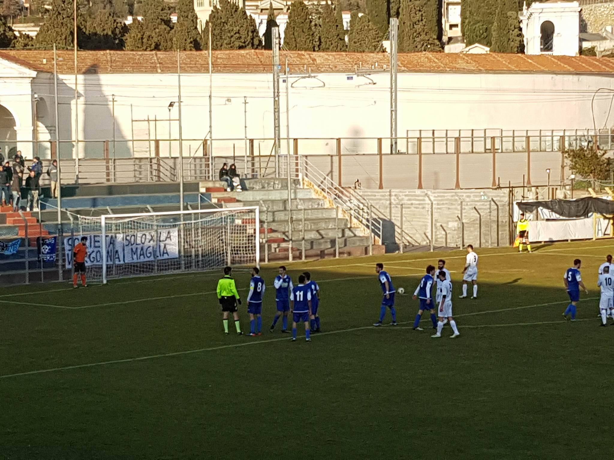 7′ OCCASIONE VALDIVARA 5 TERRE. Cuccolo prova il cross ma viene intercettato dai difensori dell’Imperia.