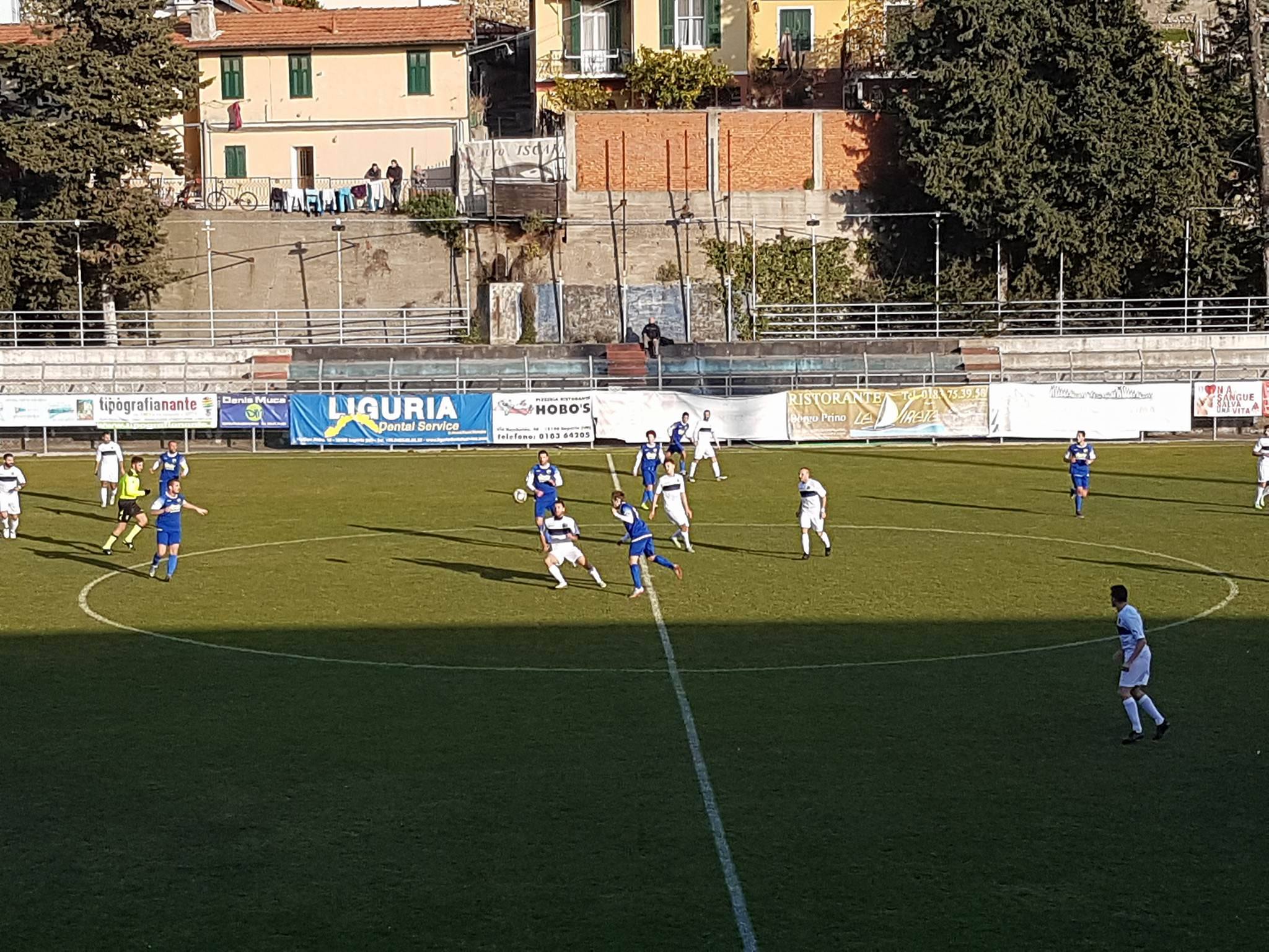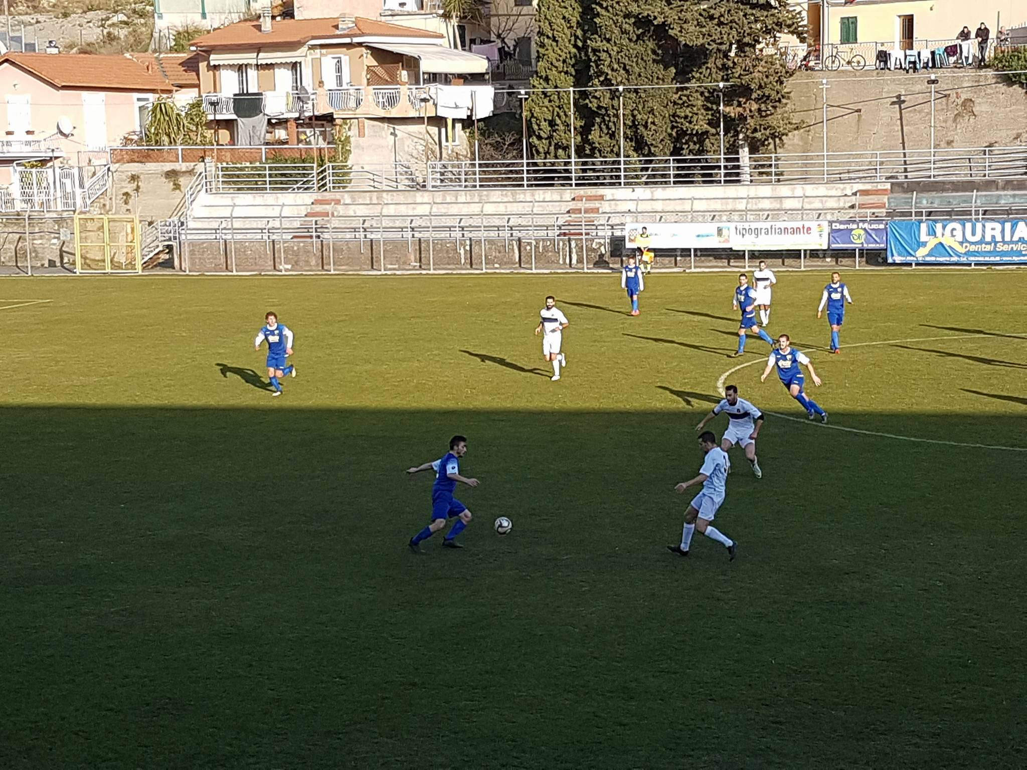 Torna alla vittoria l’Imperia che nel 16° turno del campionato di Eccellenza Liguria si impone con 1 rete a 0 sul Valdivara 5 Terre. Sblocca la partita Sanci su calcio di rigore al 38′ del primo tempo. Partita che promette subito bene quando Fici colpisce una traversa. E’ l’Imperia durante tutta la partita a portare più minacce verso la porta con il Valdivara che comunque cerca di pressare alta la retroguardia nero azzurra ma con scarsi risultati. Da notare l’esordio da titolare per Matteo Calzia che ha giocato un ottima partita per tutti i 95 minuti, il centrocampista scuola Imperia si è distinto per la serietà e la tranquillità con cui ha giocato questa partita facendo sembrare, ai pochi spettatori presenti, una disinvoltura da esperto giocatore.