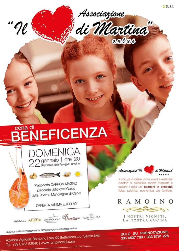 Come ogni anno, il 22 gennaio a Sarola si festeggia San Vincenzo. Per l’occasione la famiglia Ramoino dell’omonima Azienda Agricola ha nuovamente messo a disposizione il suo locale, il suo staff e coinvolto altre aziende e titolari di altri ristoranti per ripetere la cena di beneficenza a favore dell’Onlus Il Cuore di Martina.