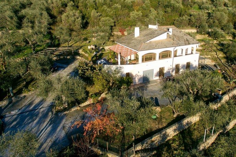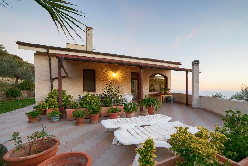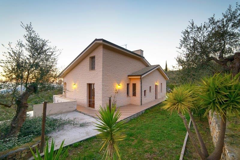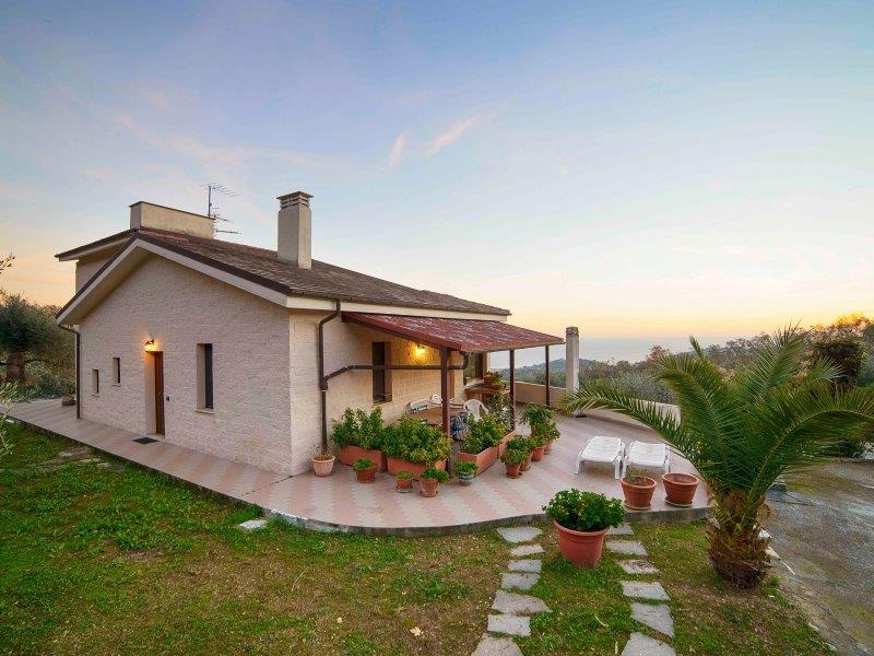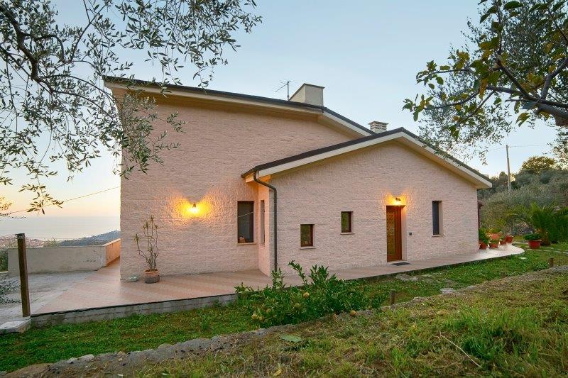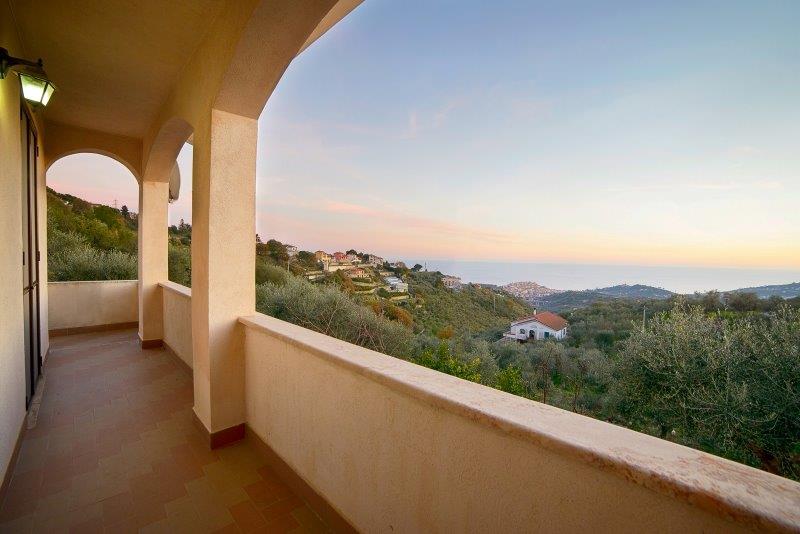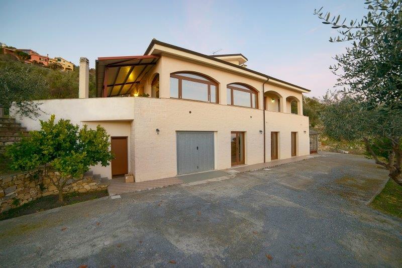 Villa Moderna – Questa bella villa elegante si trova ad Imperia, sulla collina, tra gli ulivi, e gode di una magnifica vista sul mare. La proprietà è disposta su due livelli e l’ampia superficie di 225mq comprende salone con zona pranzo e vista panoramica fino al mare, cucina abitabile, porticato e terrazzi, 3 camere, 2 bagni; ampia lavanderia, tre vani, bagno, oltre garage 35mq in piano seminterrato. Terreno circostante 3000mq. Questa proprietà è la soluzione ideale per chi desidera pace e tranquillità, ma anche per una famiglia numerosa che può sfruttare la buona metratura disponibile. E’ possibile costruire una piscina: se ne potrà godere fino al tramonto assaporando la vista sul mare e sul romantico promontorio di Porto Maurizio.