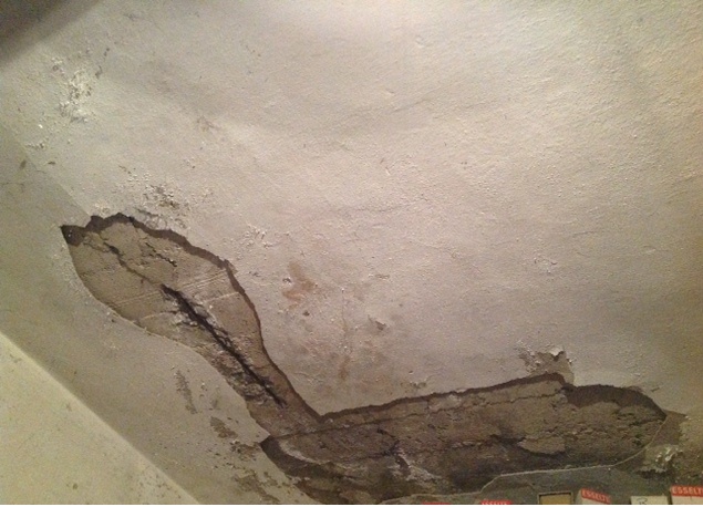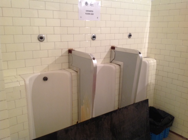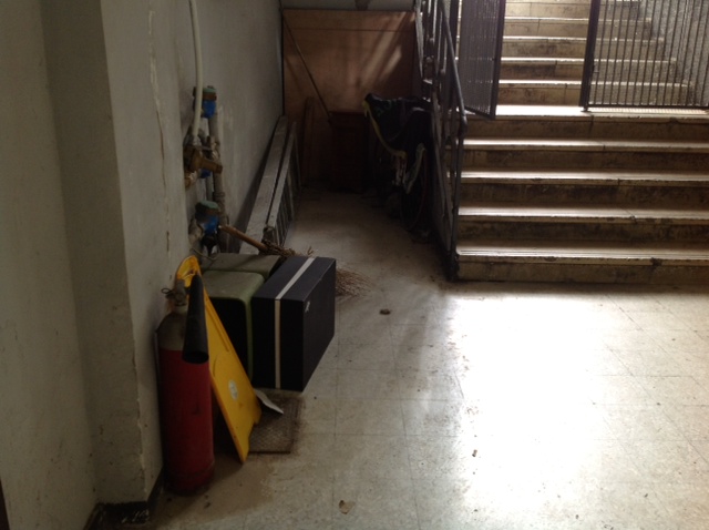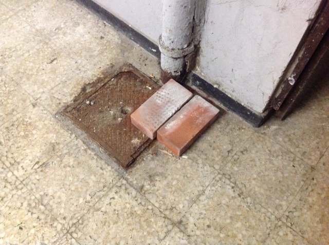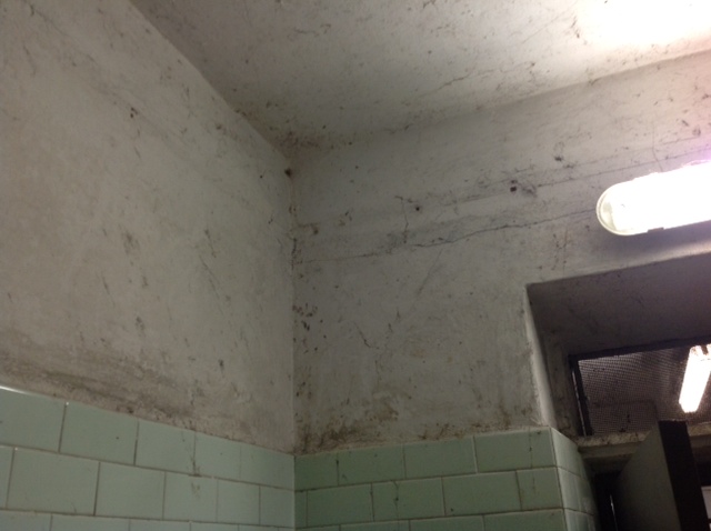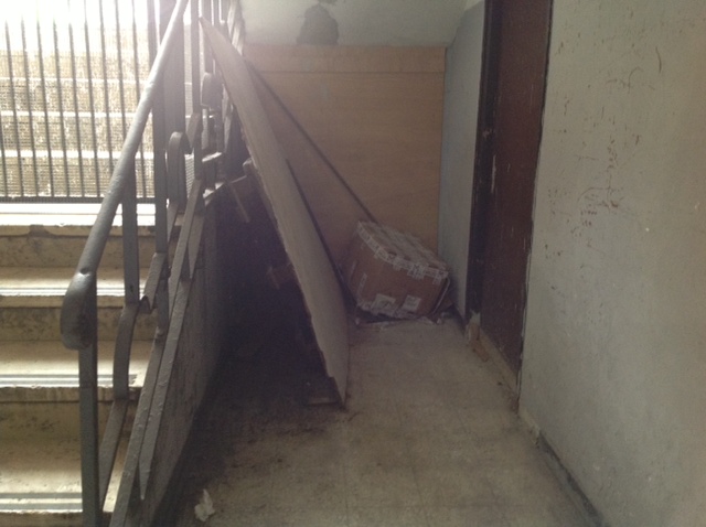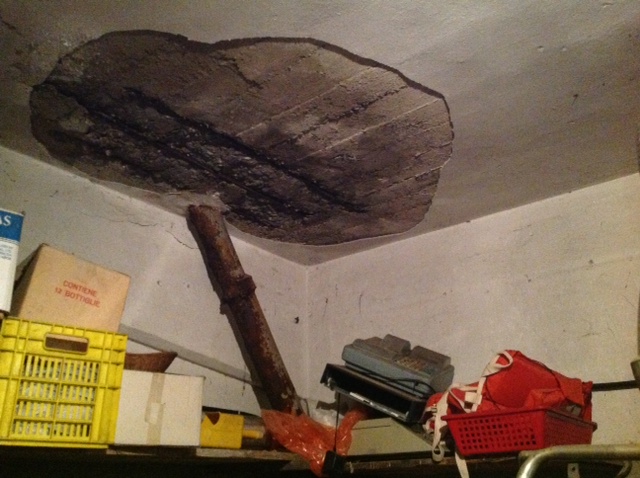 Entrando nella struttura la situazione non migliora, anzi. I neon che periodicamente si staccano dal soffitto, luci spente, infiltrazioni d’acqua, pezzi di intonaco che cadono in testa ai clienti e ai commercianti, ragnatele e l’impianto elettrico datato guerra del golfo. Ma il vero campo di battaglia si registra al piano – 1 della struttura comunale. Le immagini che vi mostriamo sono state scattate questa mattina, ogni altro commento ci pare superfluo.