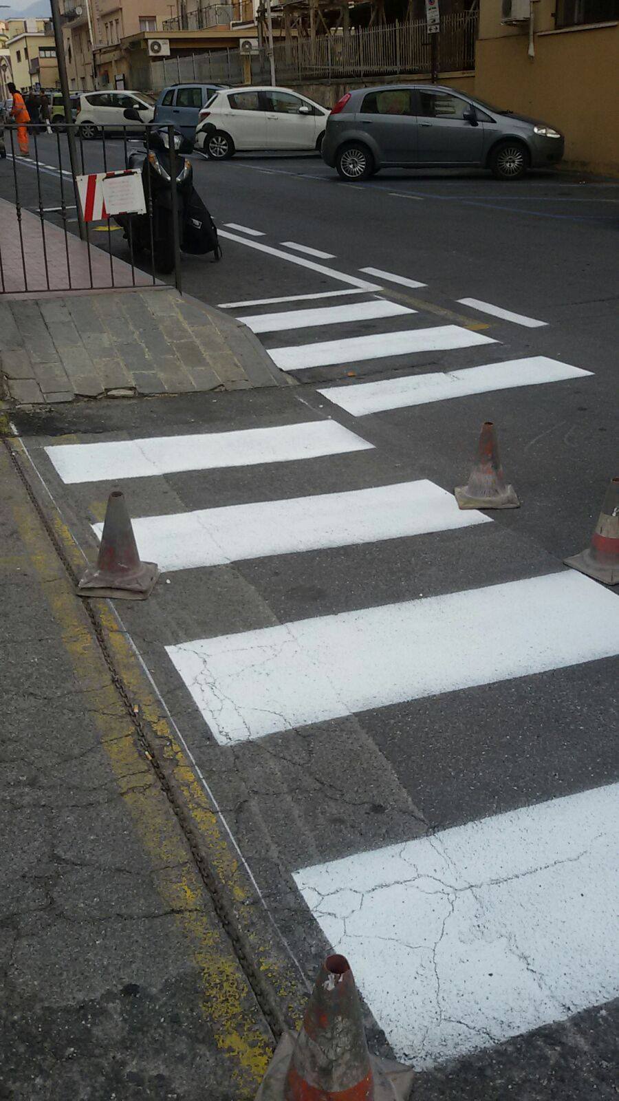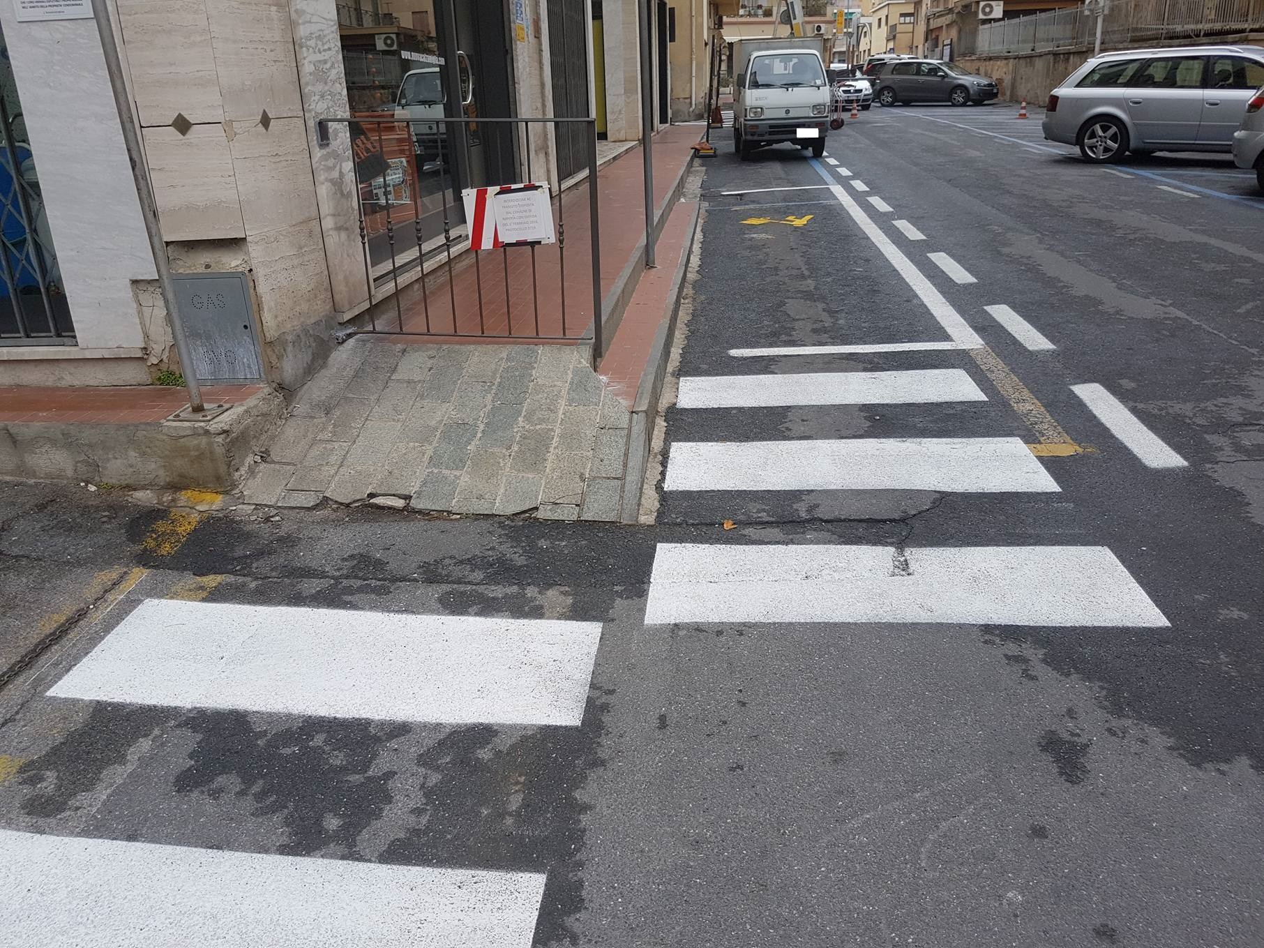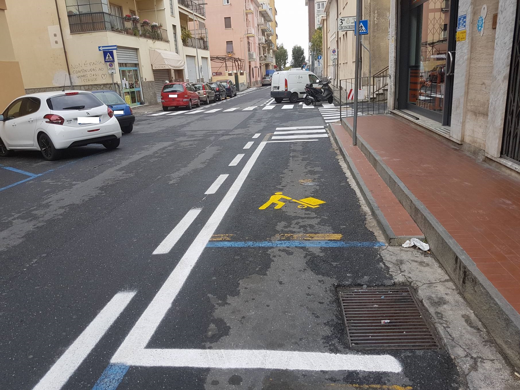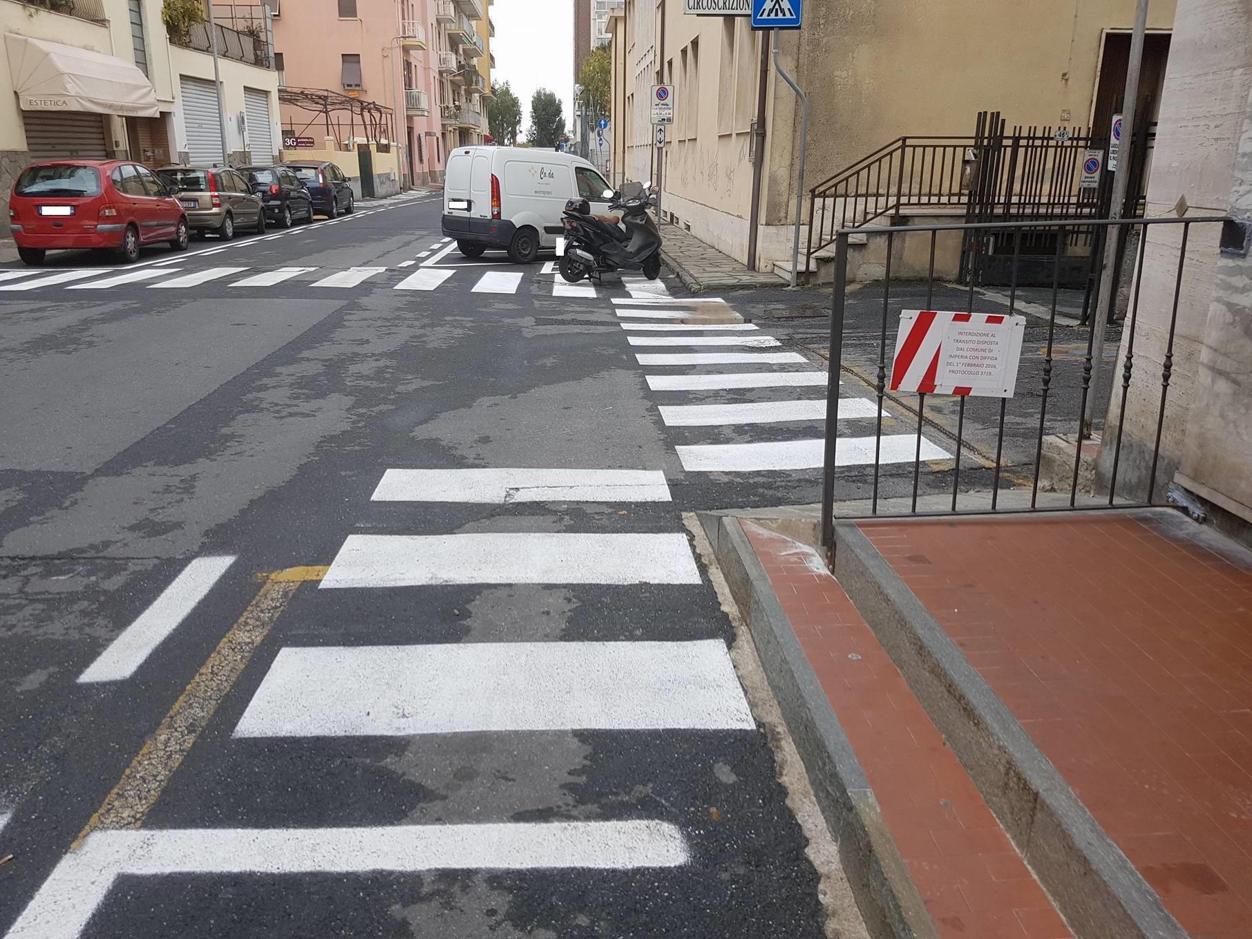 A seguito della segnalazione della settimana scorsa, in cui una mamma residente in zona ex-Ferriere aveva contattato ImperiaPost per mostrare la situazione di via Buonarroti, M.B. torna a scriverci, questa volta per comunicarci una buona notizia. Finalmente il Comune ha trovato una soluzione, sebbene parziale, per agevolare il complicato passaggio pedonale che le persone erano costrette ad affrontare. Il marciapiede è ancora interrotto da una ringhiera, però, perlomeno, sono state disegnate le strisce pedonali per permettere ai passanti di aggirare l’ostacolo in sicurezza.