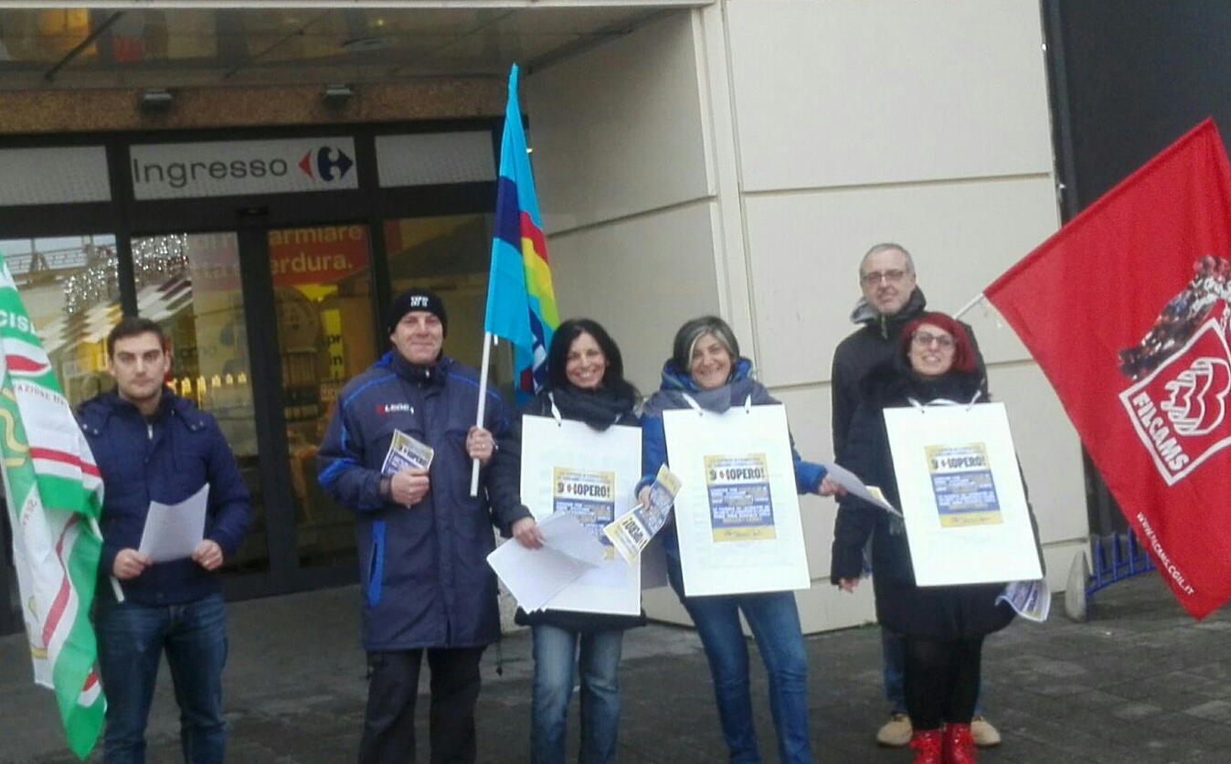 “500 persone. 500 famiglie. 1000 mani 1000 piedi senza Lavoro. Per contrastare il piano di ristrutturazione annunciato da Carrefour che coinvolge 500 lavoratori dichiarati in esubero e che prevede la chiusura dei tre ipermercati di Borgomanero, Trofarello e Pontecagnano, anche la Filcams CGIL, la Fisascat CISL e la UILTuCS di Imperia confermano lo sciopero Carrefour nelle giornate del 27 e 28 gennaio.