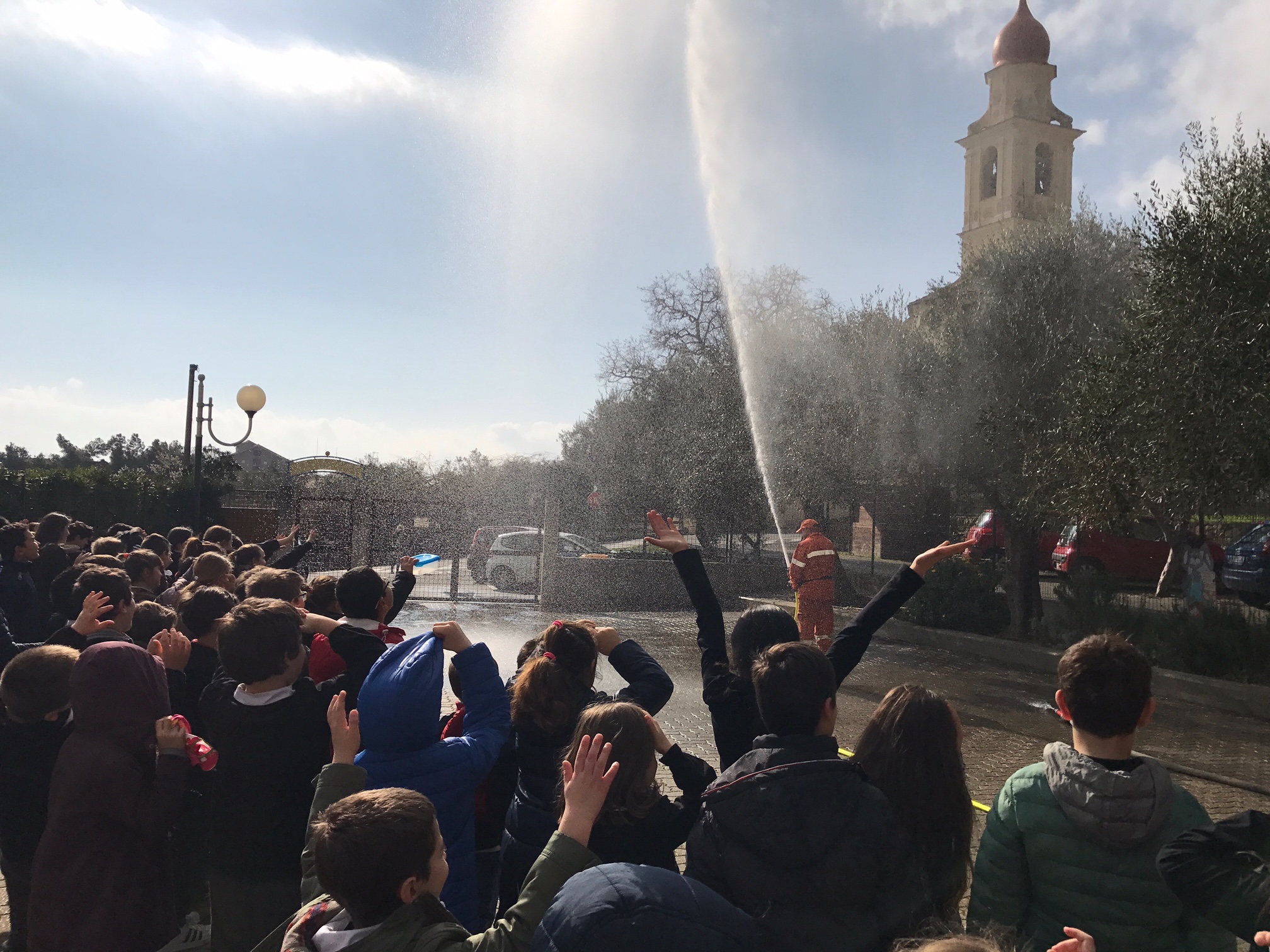 Nella seconda parte della mattinata, nel cortile della scuola, i volontari hanno fatto conoscere ai bambini i presidi utilizzati per lo spegnimento degli incendi boschivi; ogni alunno ha potuto sperimentare l’utilizzo di idranti di varie dimensioni: momento emozionante e molto apprezzato da tutti.