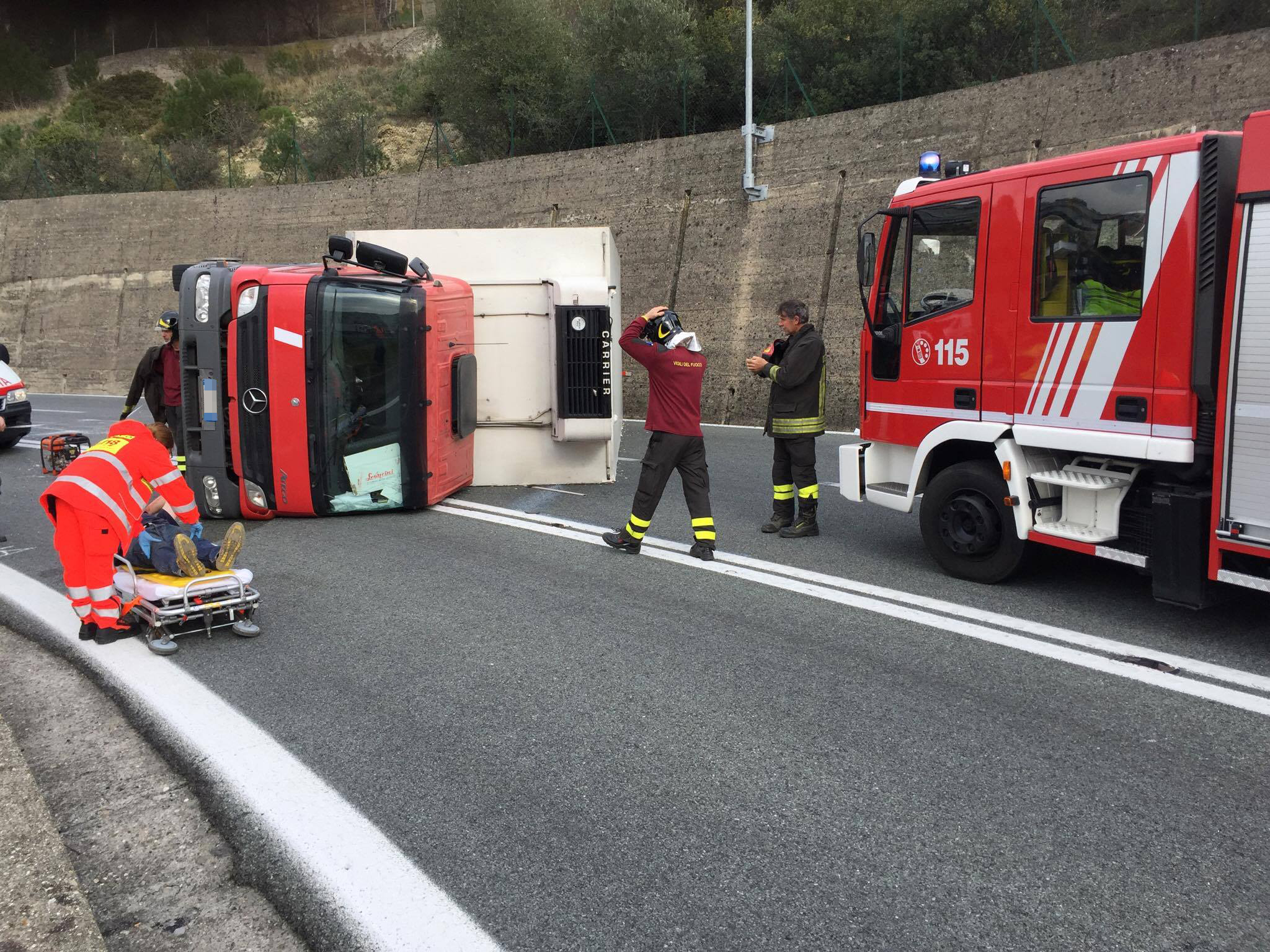 Sul posto sono intervenuti i Vigili del Fuoco, un’ambulanza della Croce Rossa di Imperia e l’automedica del 118. Il conducente del mezzo pesante, è stato soccorso sul posto e dopo essere stato stabilizzato è stato trasportato al Pronto Soccorso dell’Ospedale di Imperia in codice giallo di media gravità con lesioni, per fortuna non gravi.
