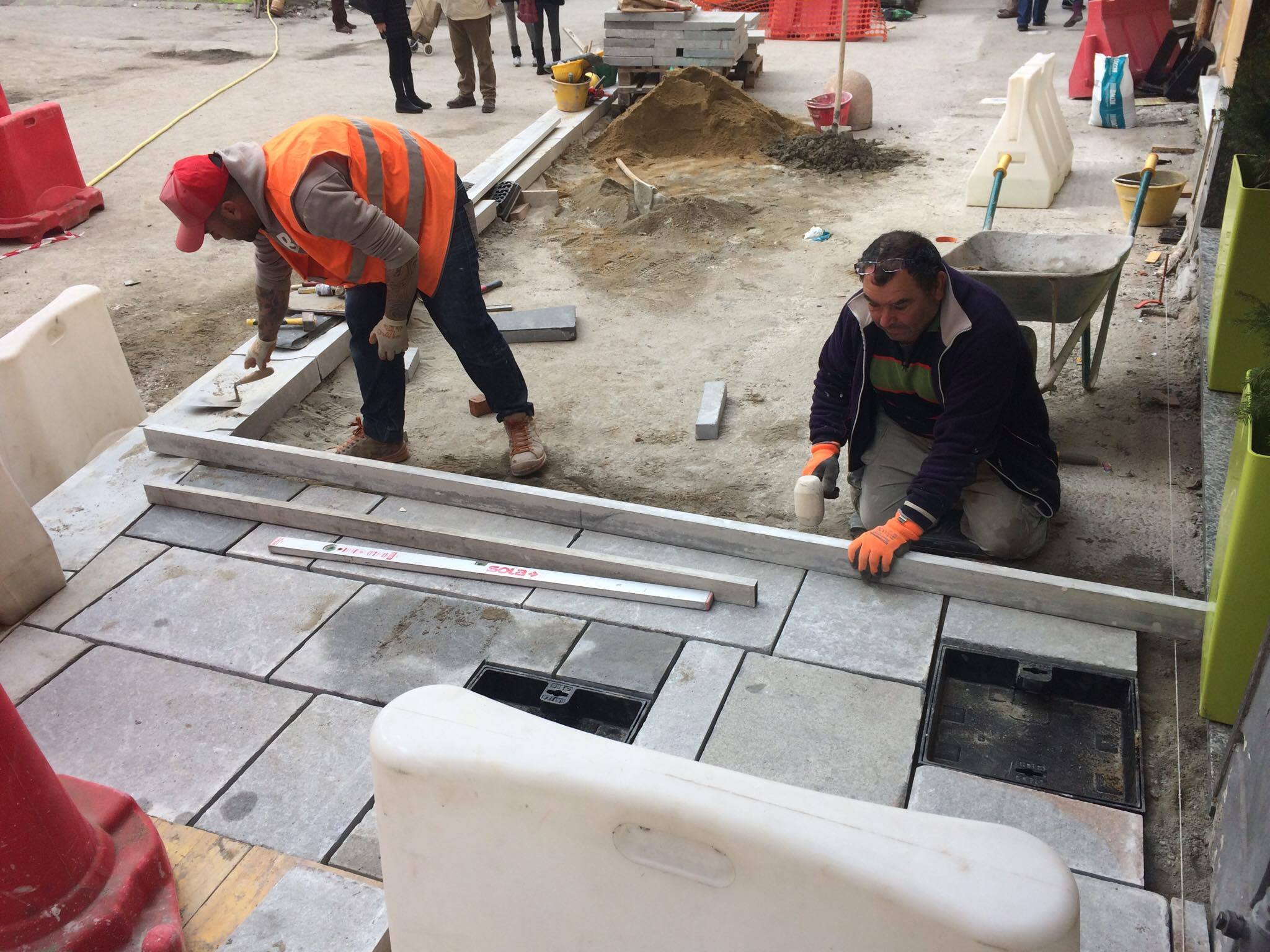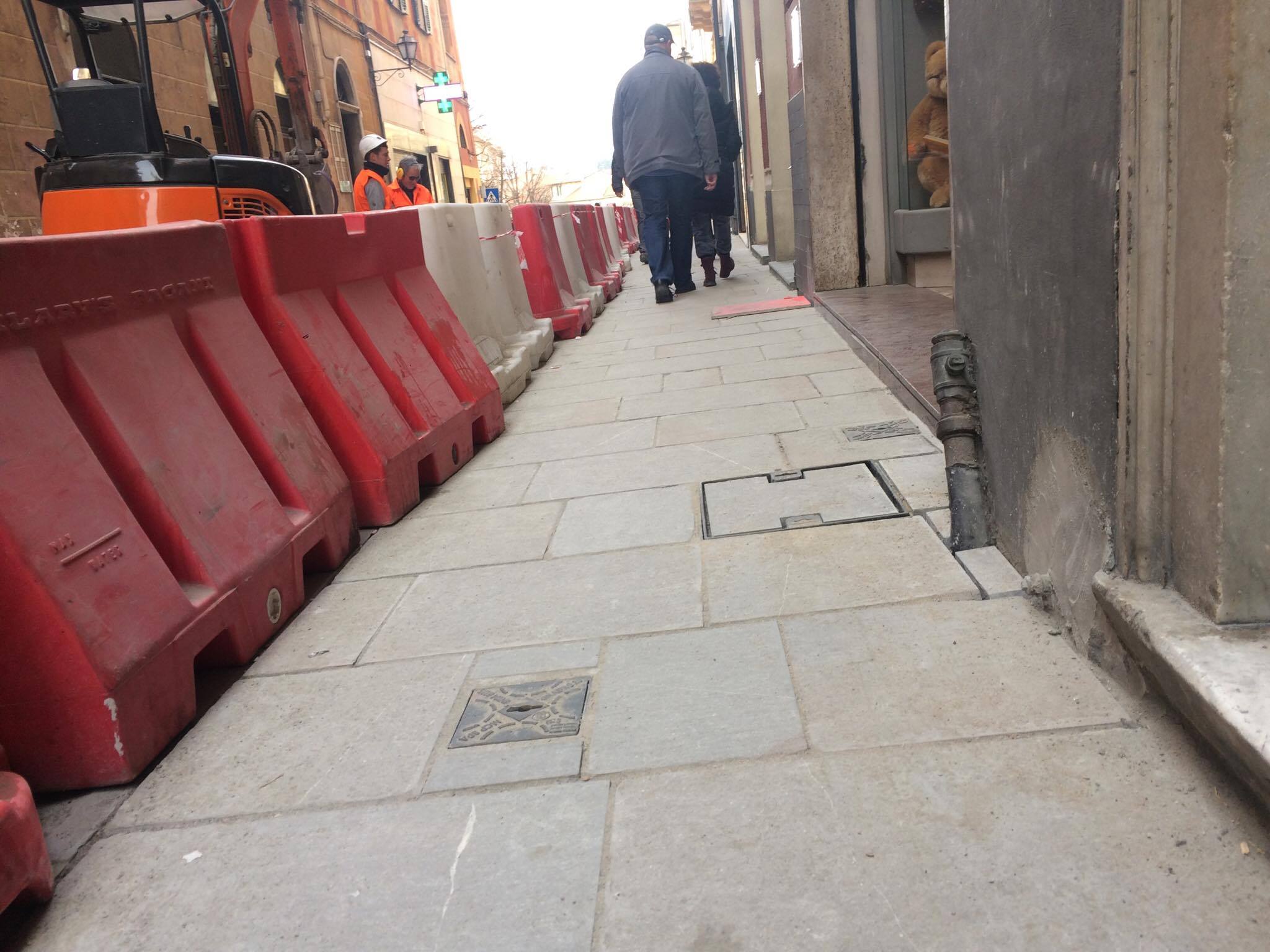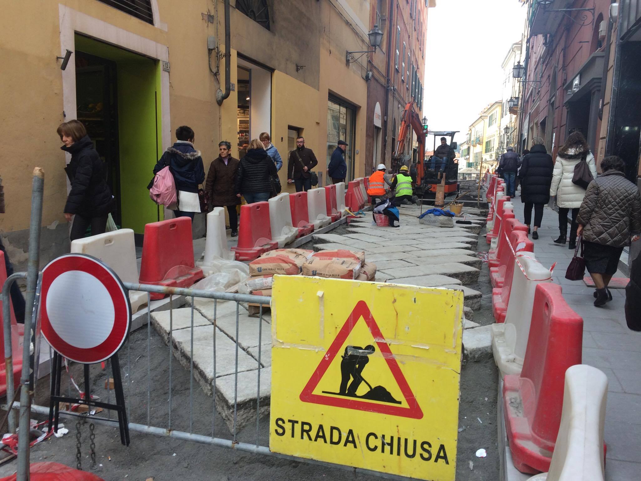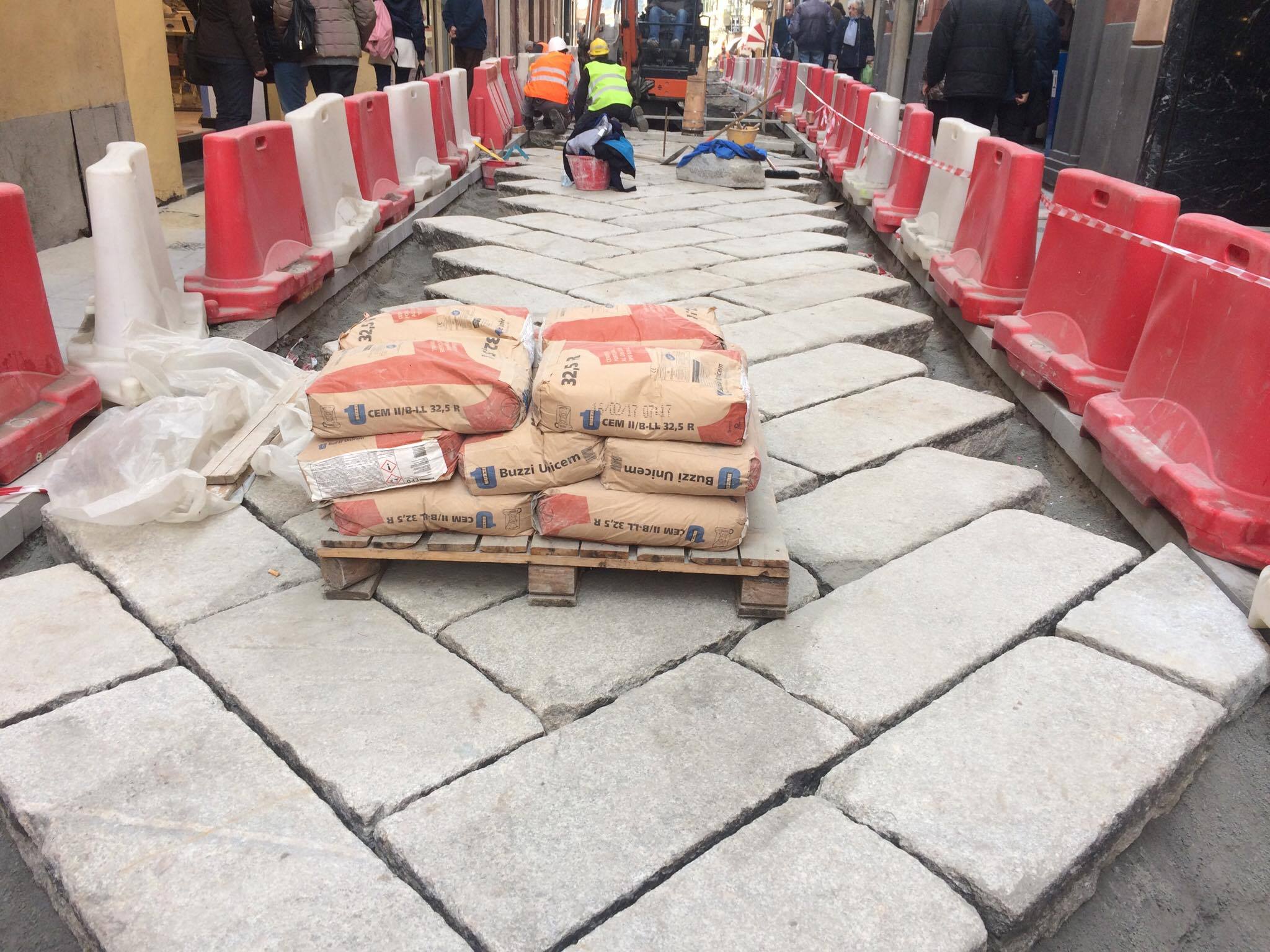 Prende forma la nuova via Cascione. Con la posa delle basole al centro della strada e delle pietre di Verezzo ai lati, si inizia a intravedere finalmente come si presenterà la zona una volta terminati i lavori.