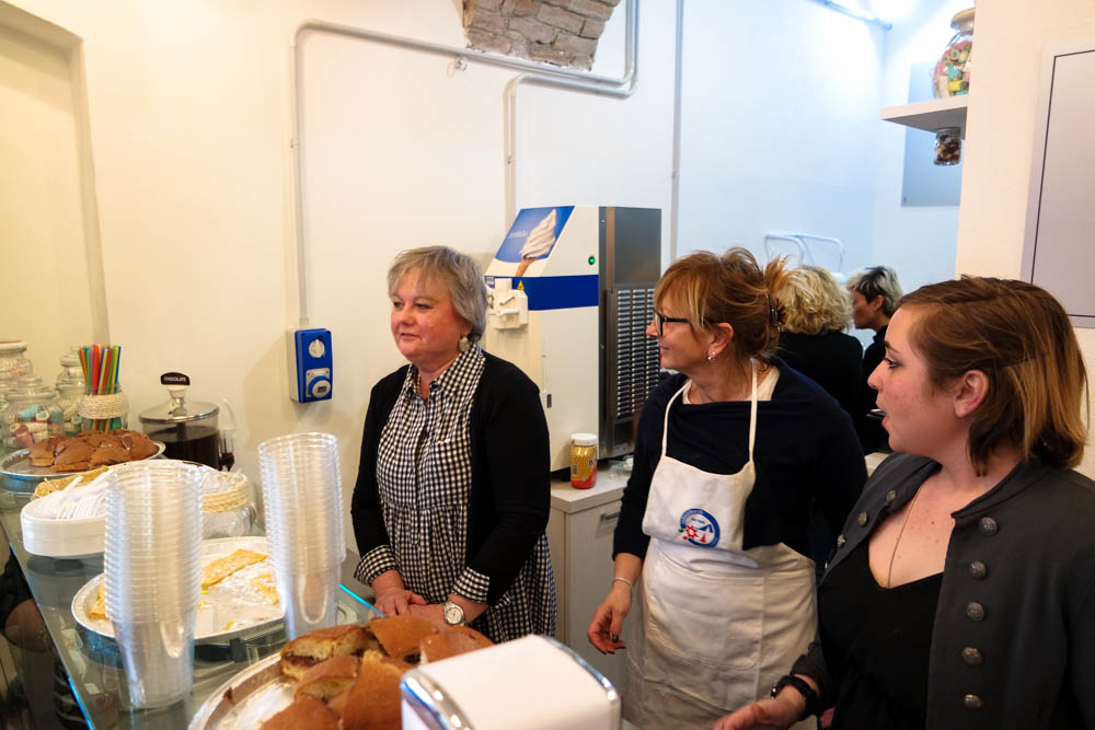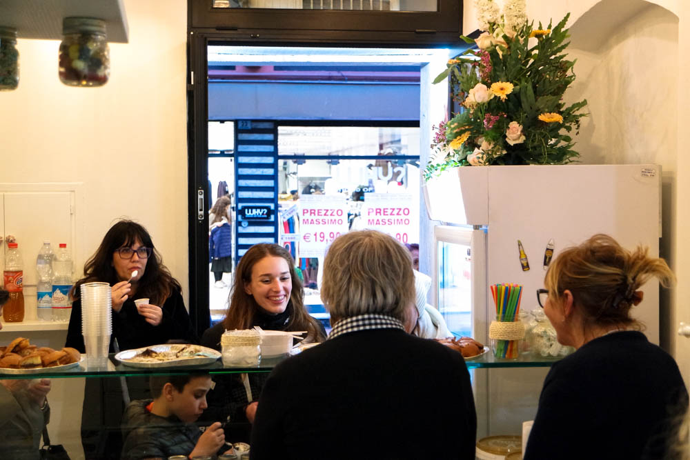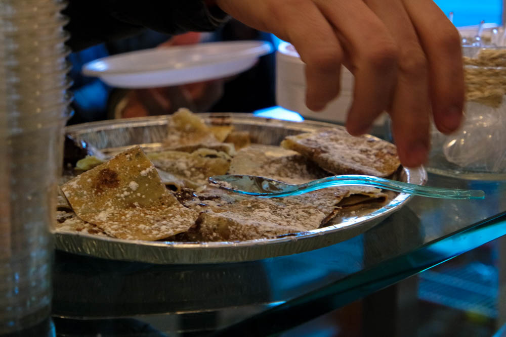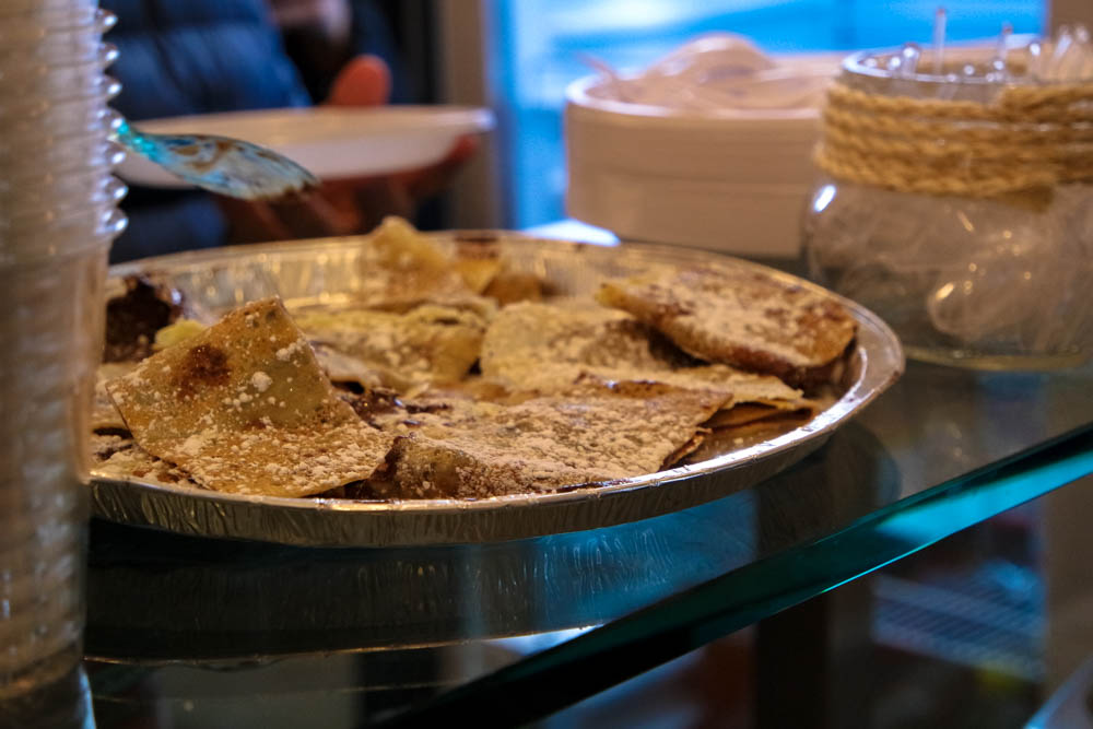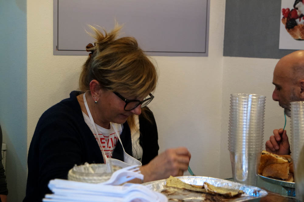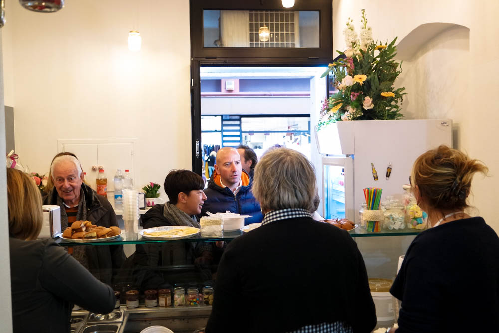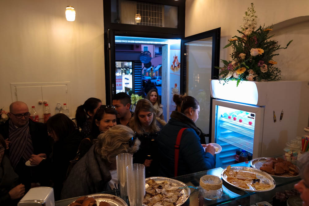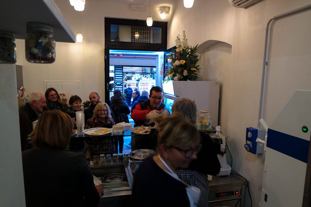 Tutte la produzione viene venduta in pratiche confezioni da asporto ma si può anche consumare all’interno del locale dove sono stati predisposti appositi sgabelli.