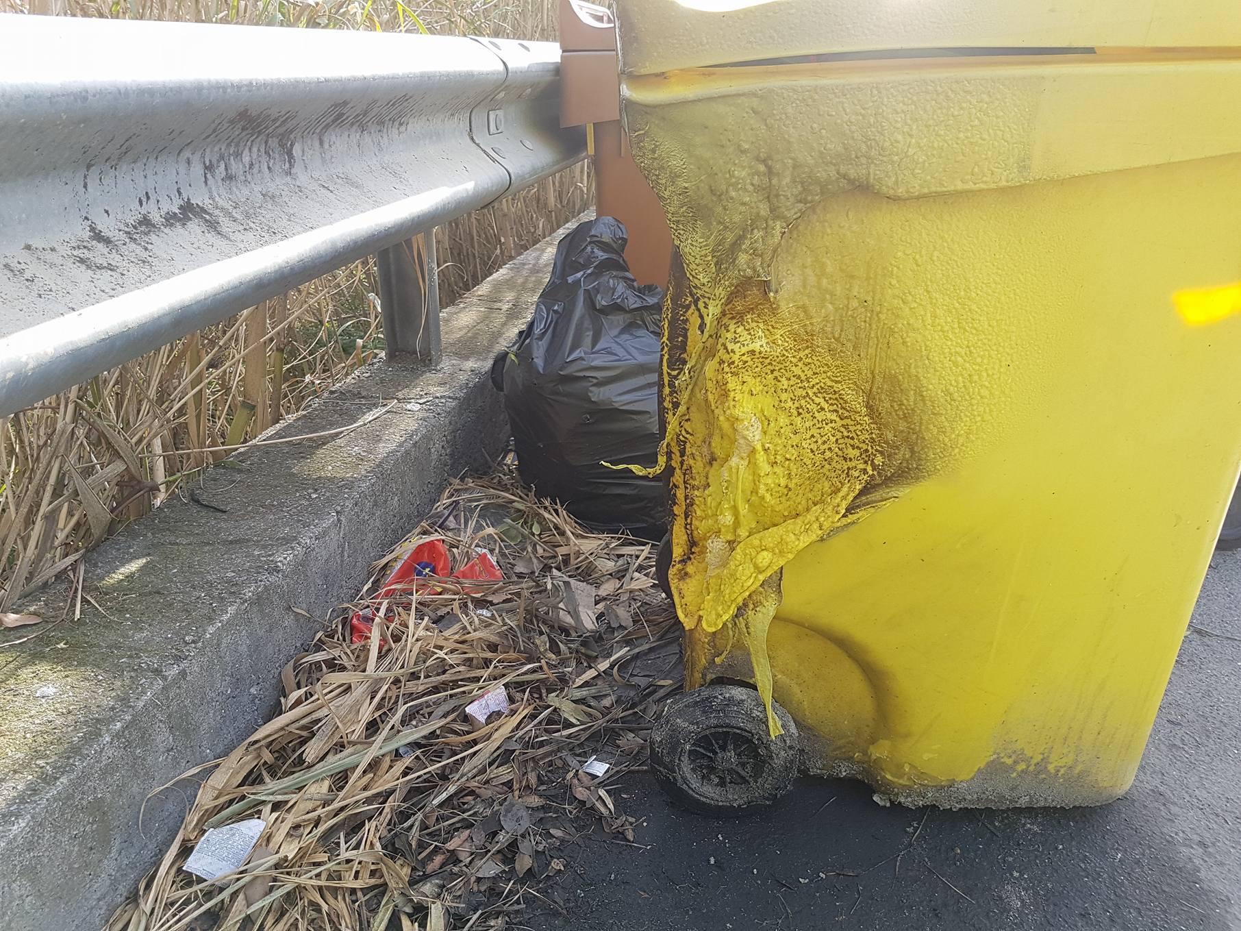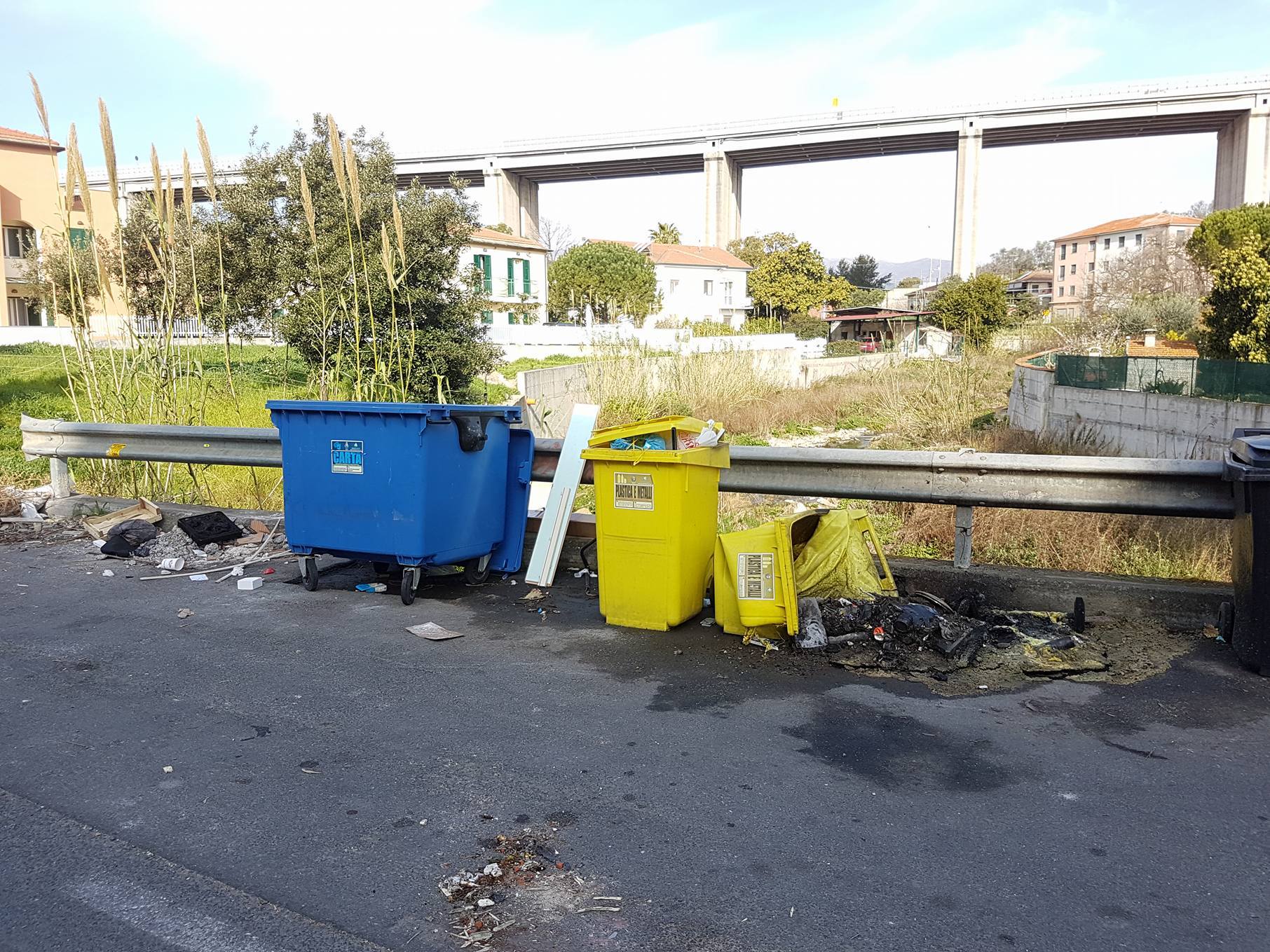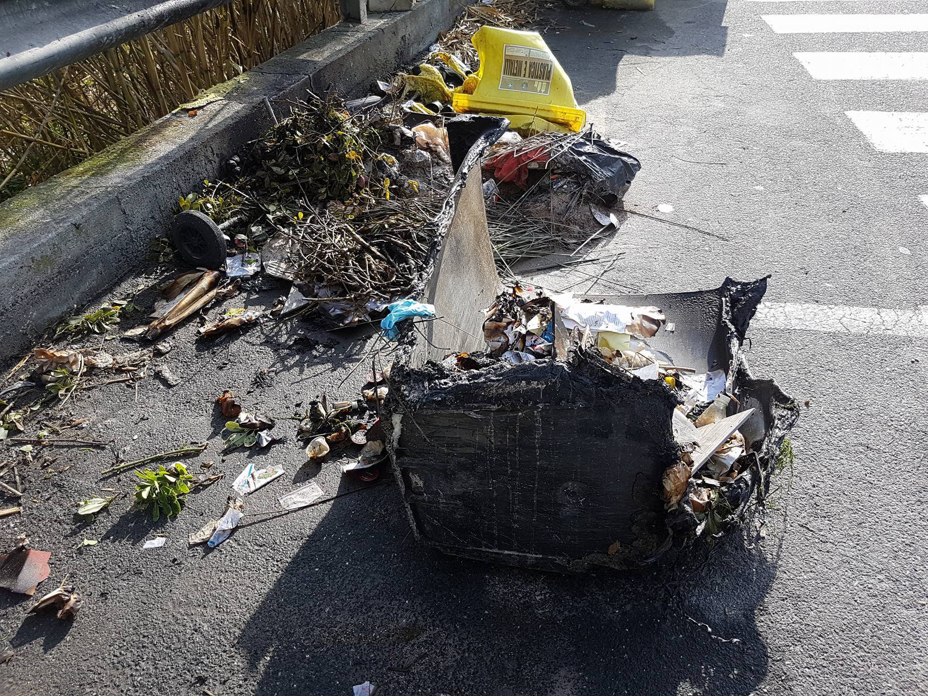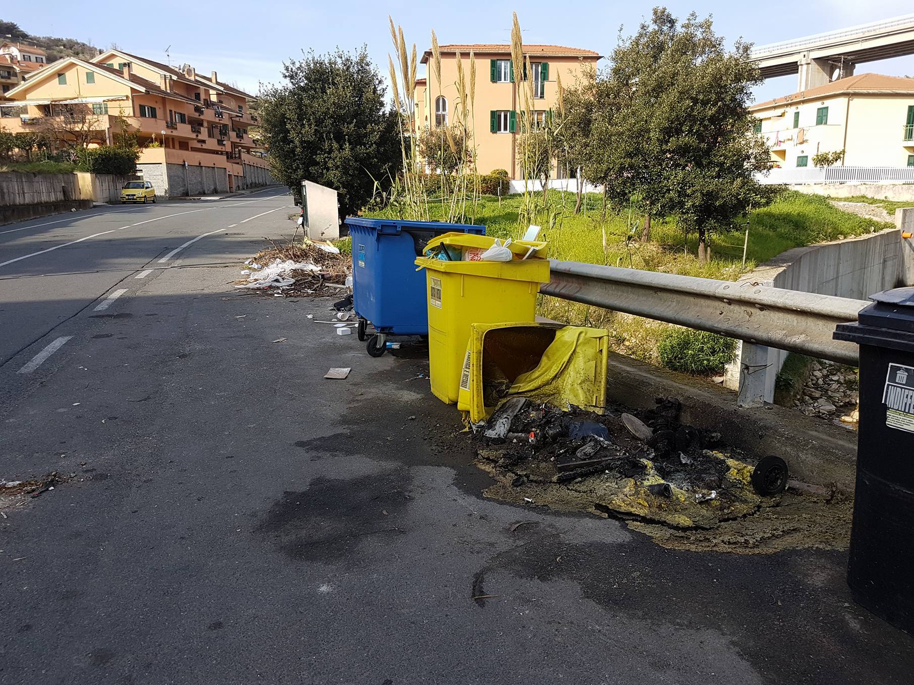 La stessa cosa è successa pochi giorni fa, sempre nella stessa zona, e ancora rimangono gli ultimi resti dei cassonetti distrutti. Vicino alle isole ecologiche c’è molta vegetazione, data la presenza del letto del torrente, e ciò poteva comportare l’espandersi delle fiamme in modo pericoloso. L’ipotesi più attendibile è che si tratti di azioni dolose di vandali o piromani.