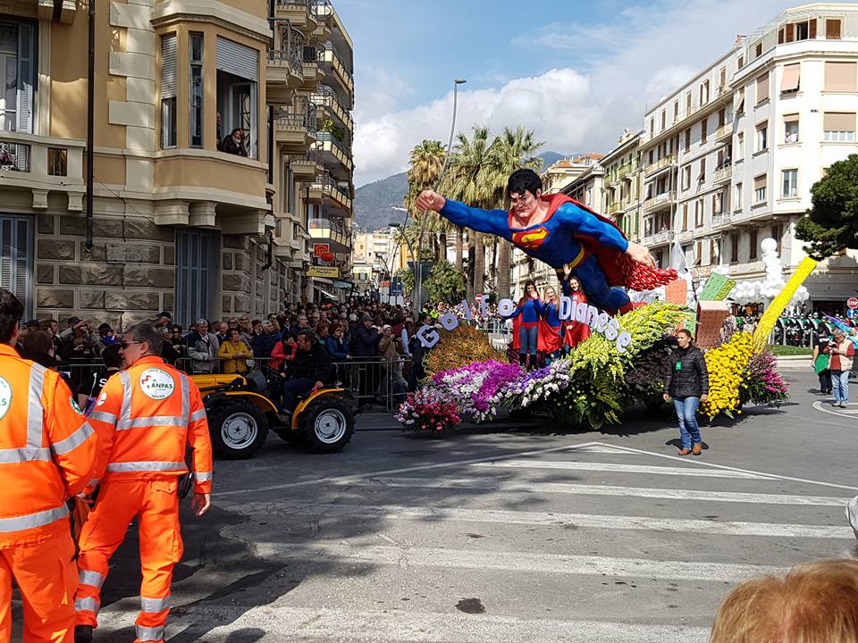 Grande successo per l’edizione 2017 di San Remo In Fiore, la storica e importante manifestazione della provincia di Imperia, che attira moltissimi visitatori. Il tema di quest’anno sono i fumetti e i supereroi, per questo sono sfilati carri fioriti con Superman, Hulk, Cat Woman, Uomo Ragno e molti altri, per la gioia di tutti i bambini.