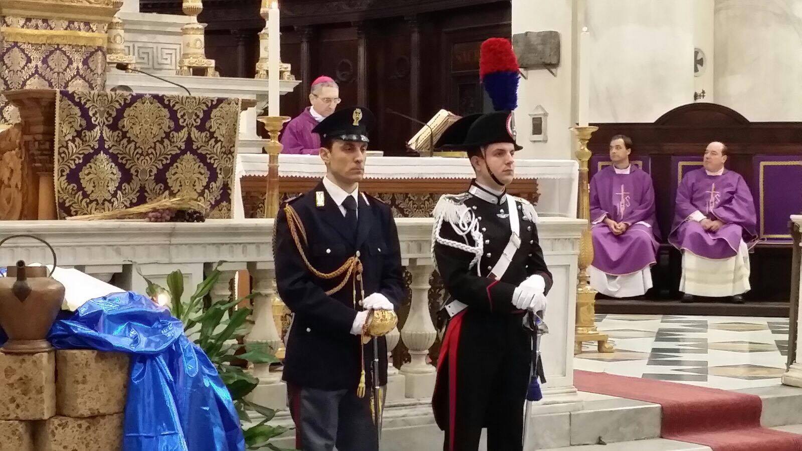 Hanno concelebrato la solenne celebrazione liturgica il cappellano militare dell’Arma dei Carabinieri del Comando Legione Carabinieri Liguria Don Paolo Lazzini e il cappellano della Polizia di Stato di Imperia Don Ivan Cattaneo. Il servizio liturgico e’ stato svolto dal Diacono Alex Dellerba, militare in servizio nell’Arma dei Carabinieri.
