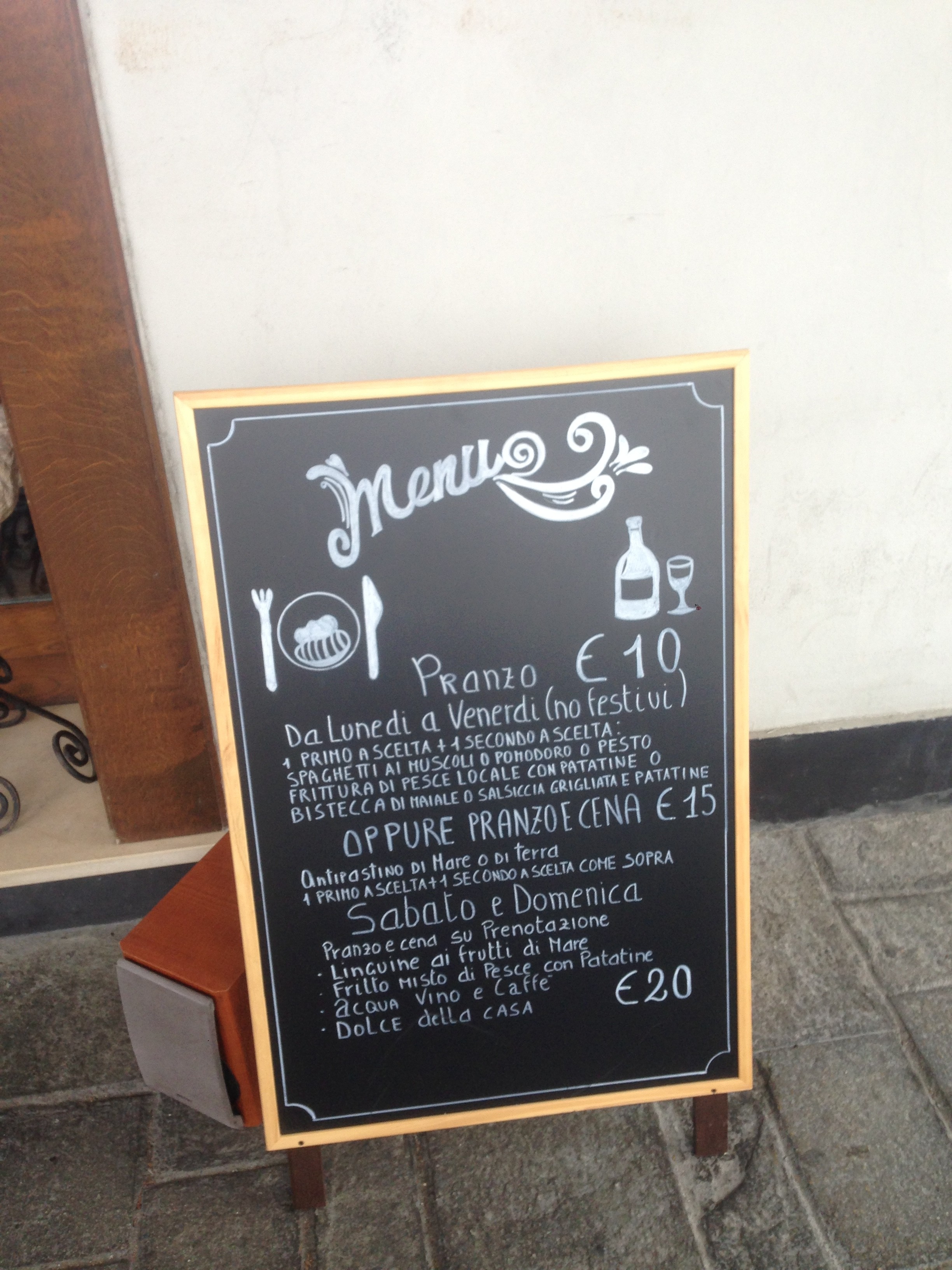 Il pranzo a partire da 10€ con menù di Pesce Fresco è composto da: un primo di pesce, più un secondo di frittura di Pesce fresco con contorno e 1/2 acqua.