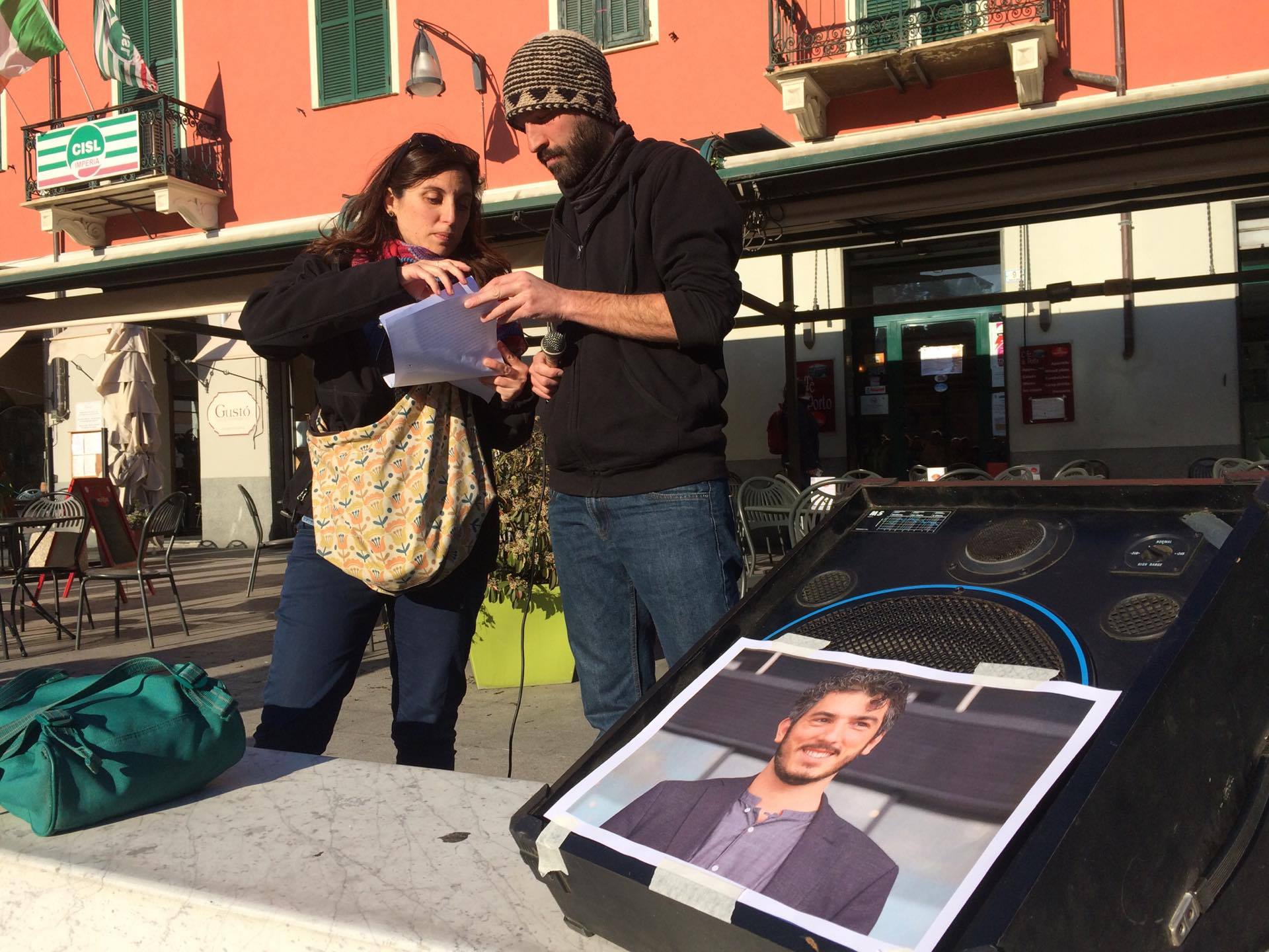 Il motivo per cui siamo scesi oggi in questa piazza anche a Imperia è per chiedere l’immediata liberazione di Gabriele Del Grande, giornalista, scrittore e regista, detenuto in Turchia e privato di ogni diritto in quanto detenuto.