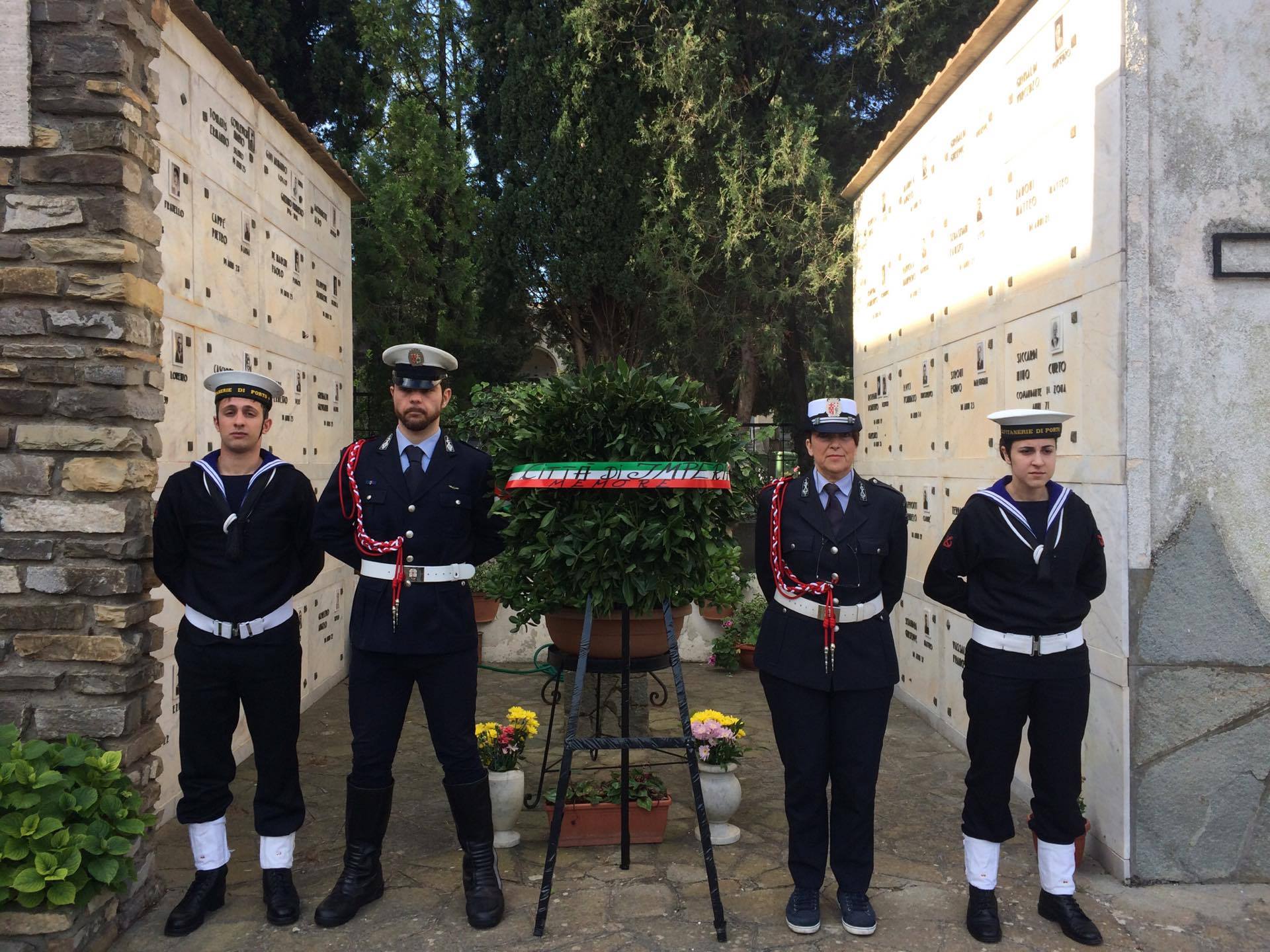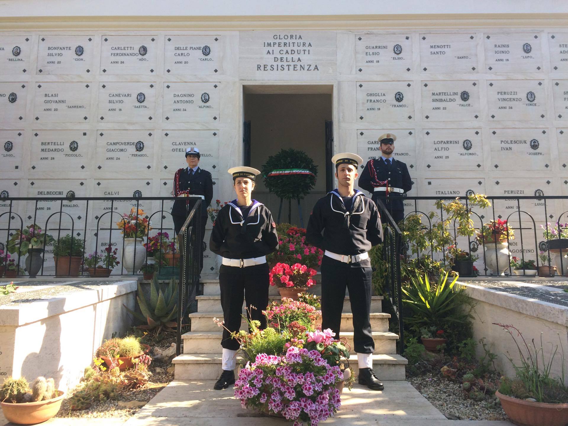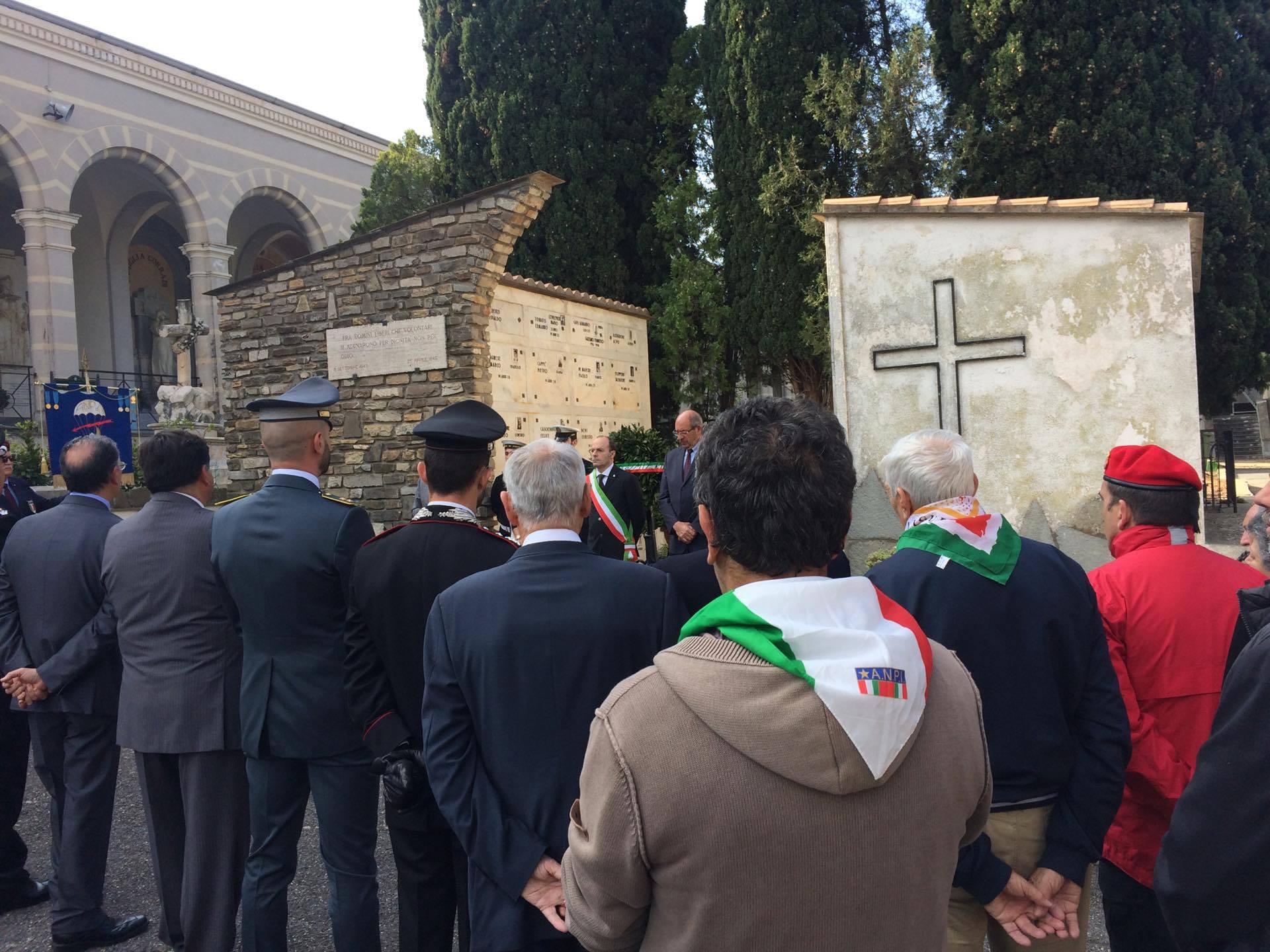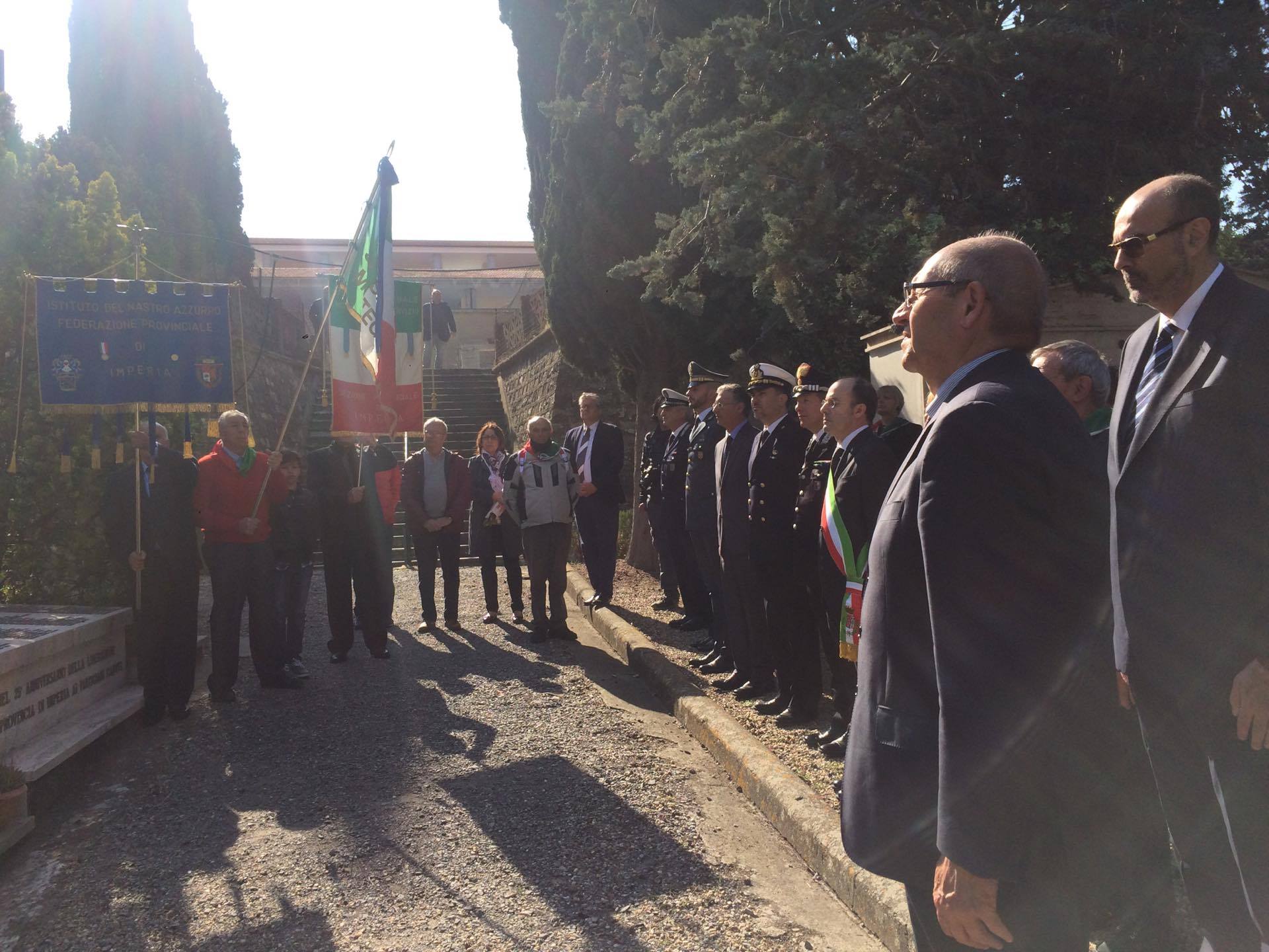Al Cimitero di Porto Maurizio ha avuto luogo la deposizione della corona di alloro al Mausoleo della Resistenza e, successivamente, la stessa cerimonia si è tenuta al Cimitero di Oneglia. Presenti il sindaco di Imperia Carlo Capacci, sua eccellenza il prefetto Silvana Tizzano, il presidente del comitato provinciale Anpi Ezio Lavezzi, il vicesindaco Giuseppe Zagarella, il presidente Anpi di Porto Maurizio Rinaldo Paglieri, il comandante Capitaneria di Porto di Imperia Luciano Pischedda, il Capitano Giovanni Diglio dei Carabinieri, Angelo Arrigo in rappresentanza della Polizia Municipale di Imperia, il presidente del Circolo Parasio Giacomo Raineri e l’on. Giovanni Rainisio.