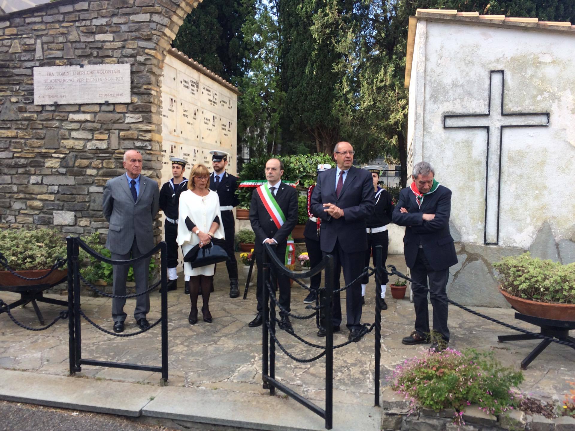Io sono stato educato dalla mia famiglia ogni qual volta, ‘questo è il cimitero di Porto Maurizio’ lo ha detto il presidente dell’Istituto storico, e ogni qual volta noi ci si recava al campo santo, perchè qui riposano i miei, di soffermarci un attimo vicino alle tobe di questi ragazzi, di questi giovani, eravamo ragazzini, si capiva quello che si può capire da ragazzino, ma questa frase ‘Fra uomini liberi che volontari si adunarono per dignità e non per odio’ mi ha sempre colpito.