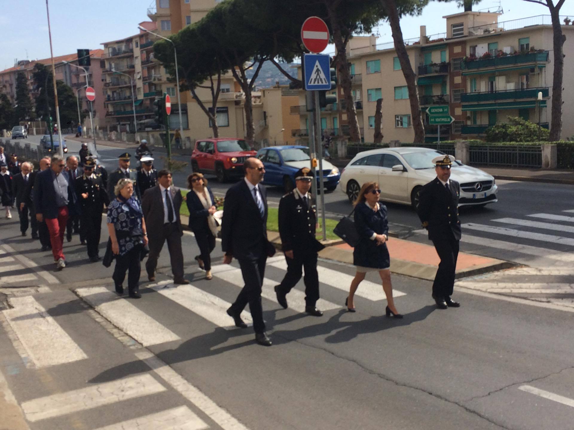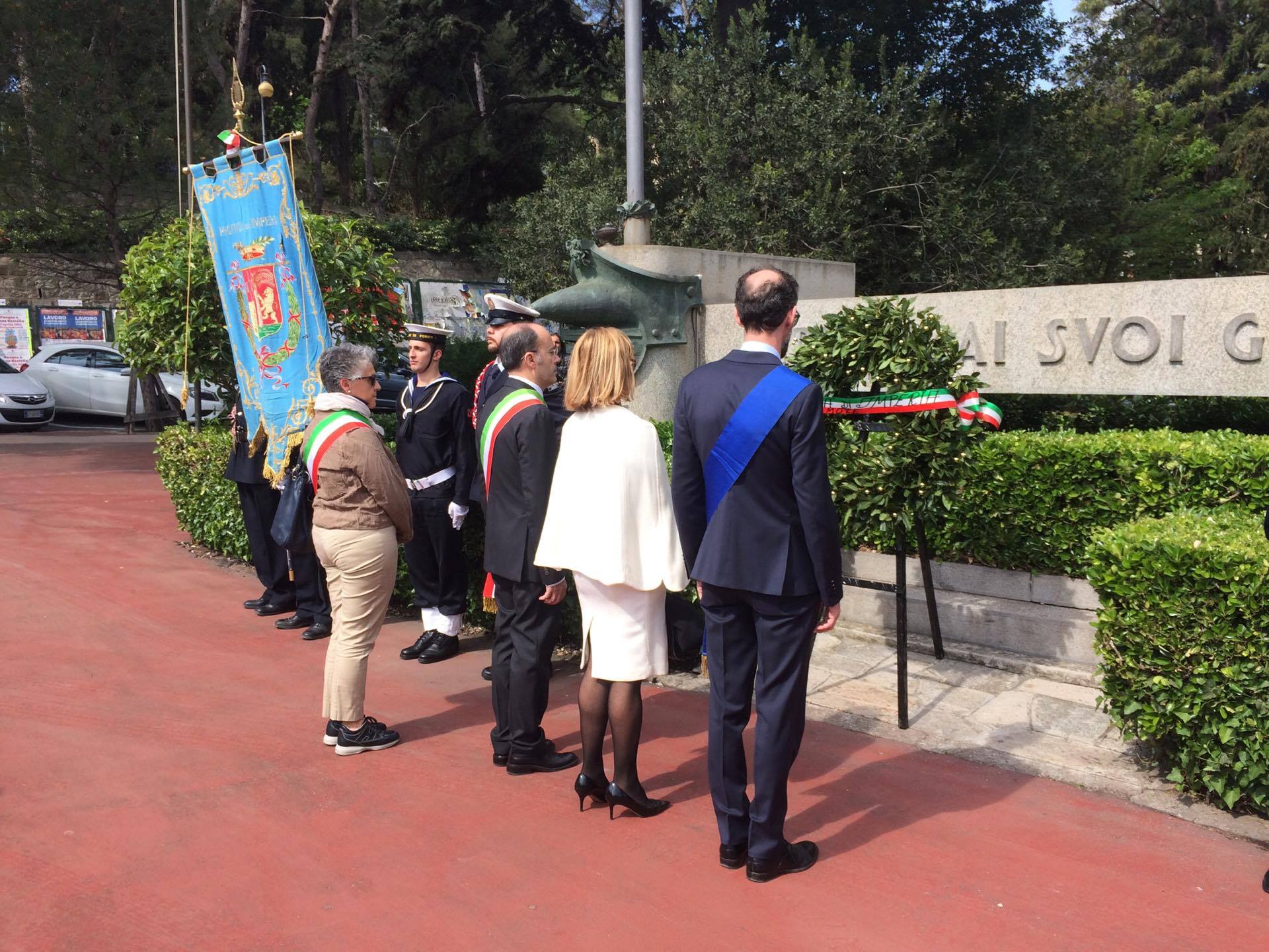 Proseguono le celebrazioni per il 72° anniversario della Liberazione d’Italia, nel ricordo del 25 aprile 1945. Dopo le cerimonie a Piani, presso il Monumento ai Caduti Civili e Partigiani della Val Prino, e ai cimiteri di Porto Maurizio e Oneglia, alle ore 10, come da programma, si è tenuta la Santa Messa nella Chiesa di Cristo Re, officiata da Don Giampiero Serrato, mentre successivamente un Corteo ha raggiunto la vicina piazza della Vittoria per la deposizione della corona di alloro al Monumento ai Caduti.