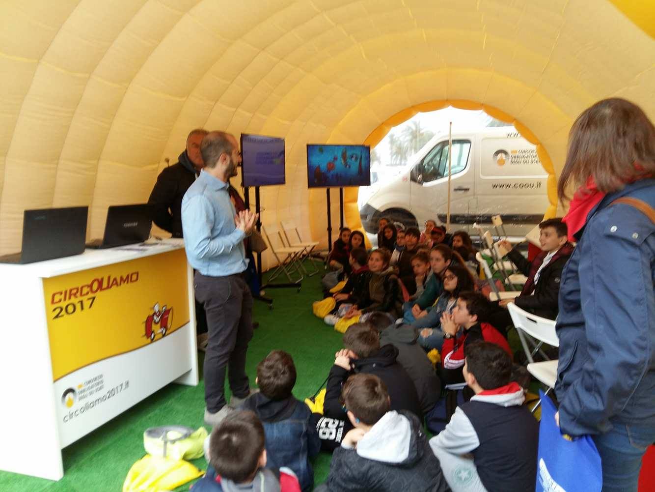 “Circoliamo è un progetto realizzato dal ‘Consorzio obbligatorio di oli usati’ che visita tutti i capoluoghi di provincia del nostro paese con due obiettivi: