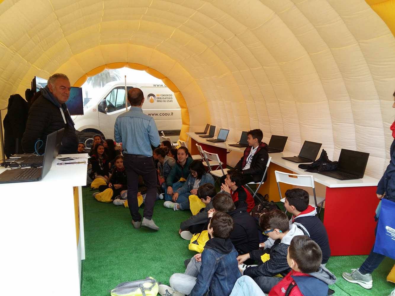 Questa mattina i ragazzi delle scuole, tra cui la classe 1ªC dell’Istituto Boine e la 4ªA della scuola Novaro, hanno visitato il villaggio CircOLIamo partecipando agli educational loro dedicati e sfidandosi a “Green League”, il progetto che prevede un sistema di giochi online finalizzati all’educazione ambientale.