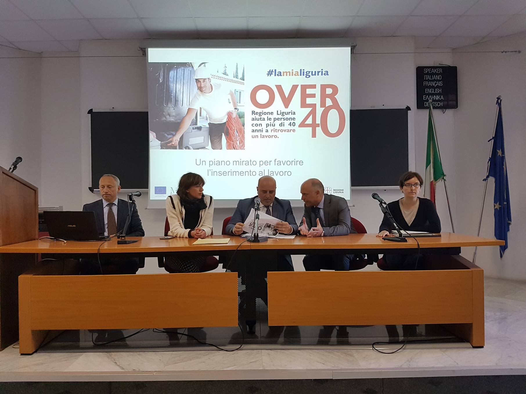“Parte qua da Imperia, dall’aula magna dell’università la presentazione del progetto in tutta la Liguria ‘Over 40’ che partirà il 15 maggio. È un progetto riservato ai disoccupati o a chi è sotto la soglia minima di reddito e quindi sotto gli 8 mila euro e che non gode di nessun ammortizzatore sociale.