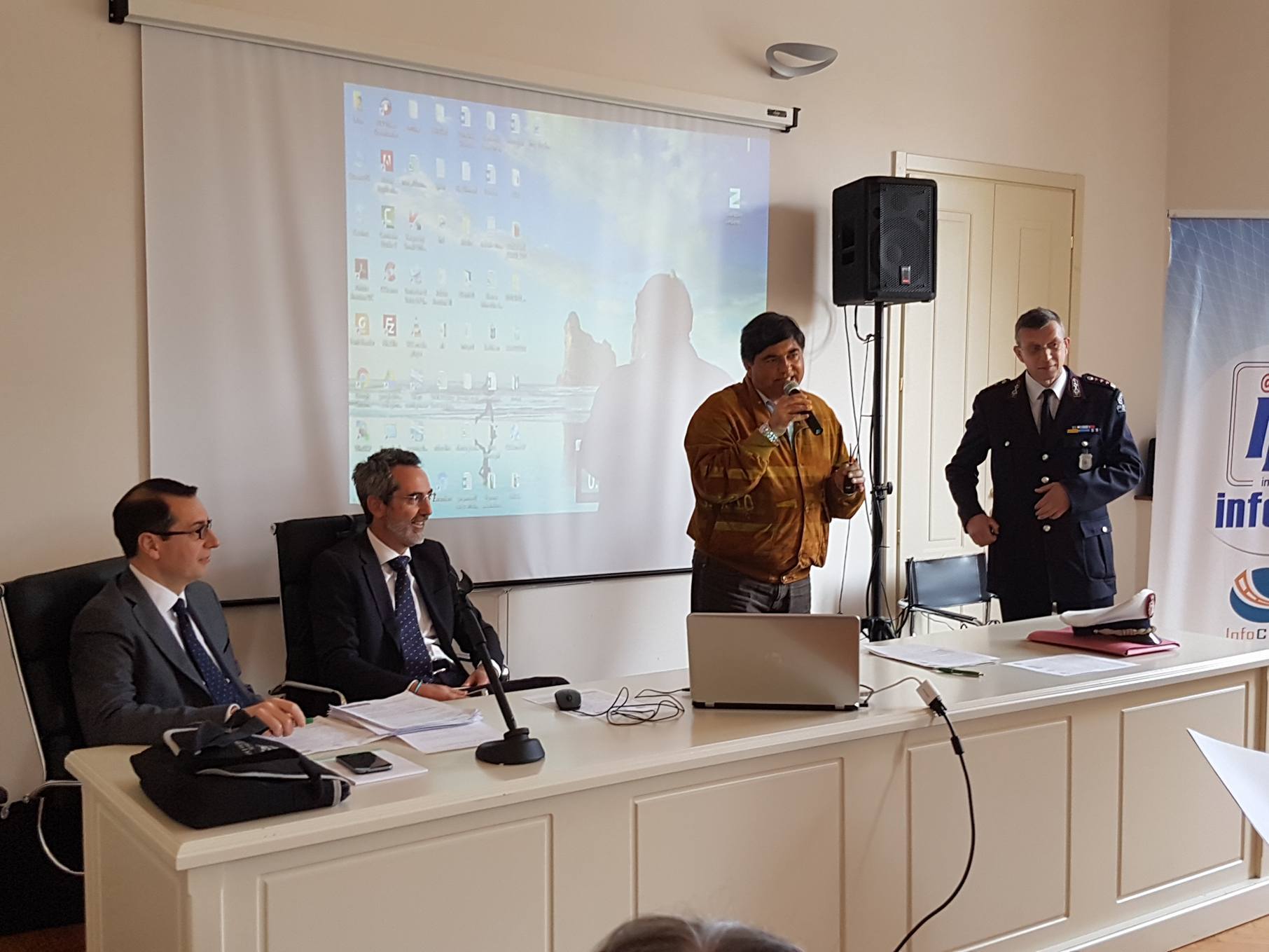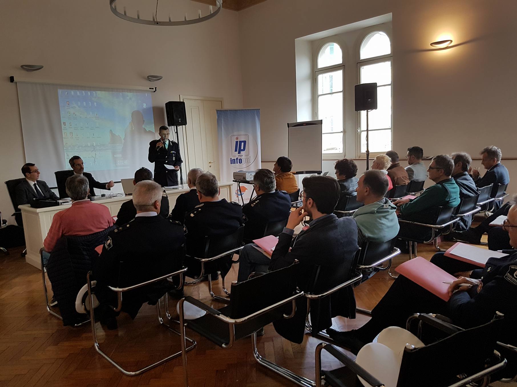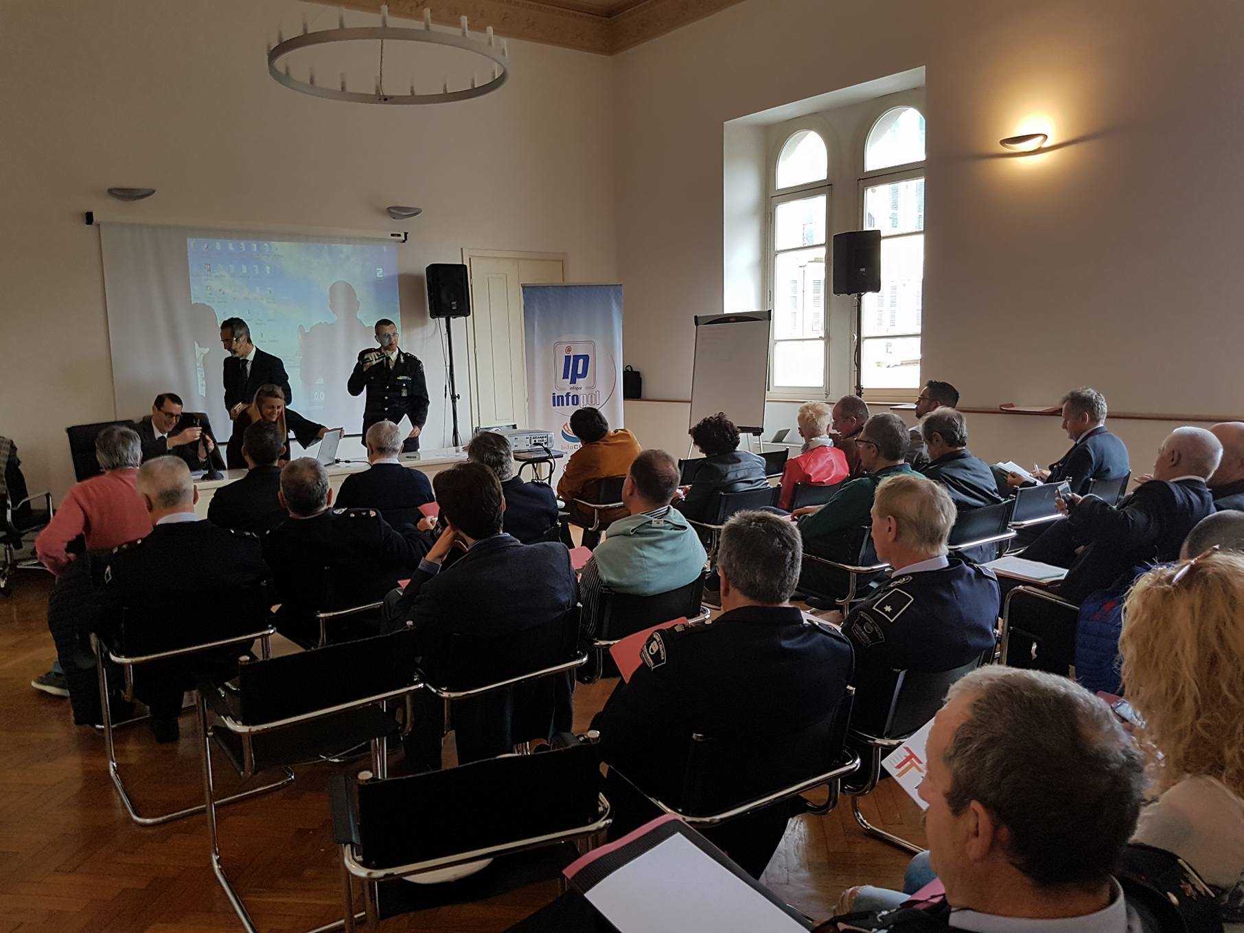 Presente anche l’assessore comunale alla Polizia Municipale Giuseppe De Bonis. La conferenza é aperta dal comandante della Polizia Municipale di Imperia Aldo Bergaminelli. Relatori Antonio De Vita, Consigliere di Tribunale Amministrativo e Regionale e Alessandro Casale, Dirigente, Comandante PL, Vice Segretario Generale e Direttore Infocds.it.