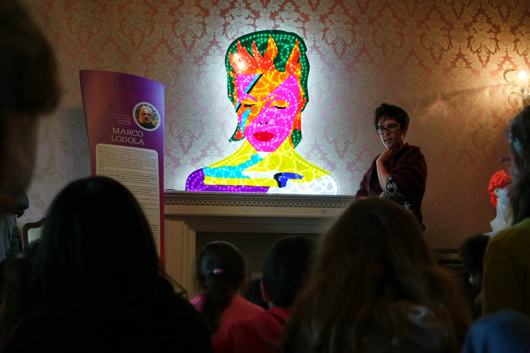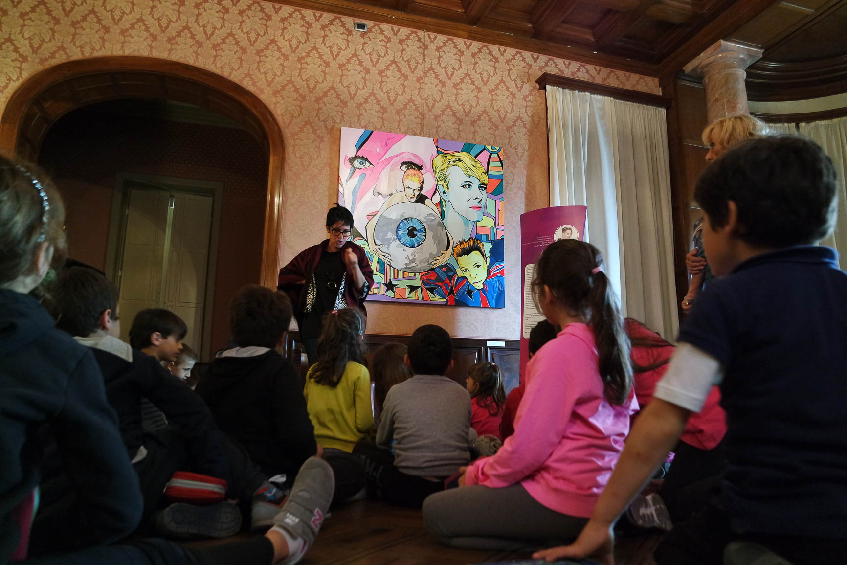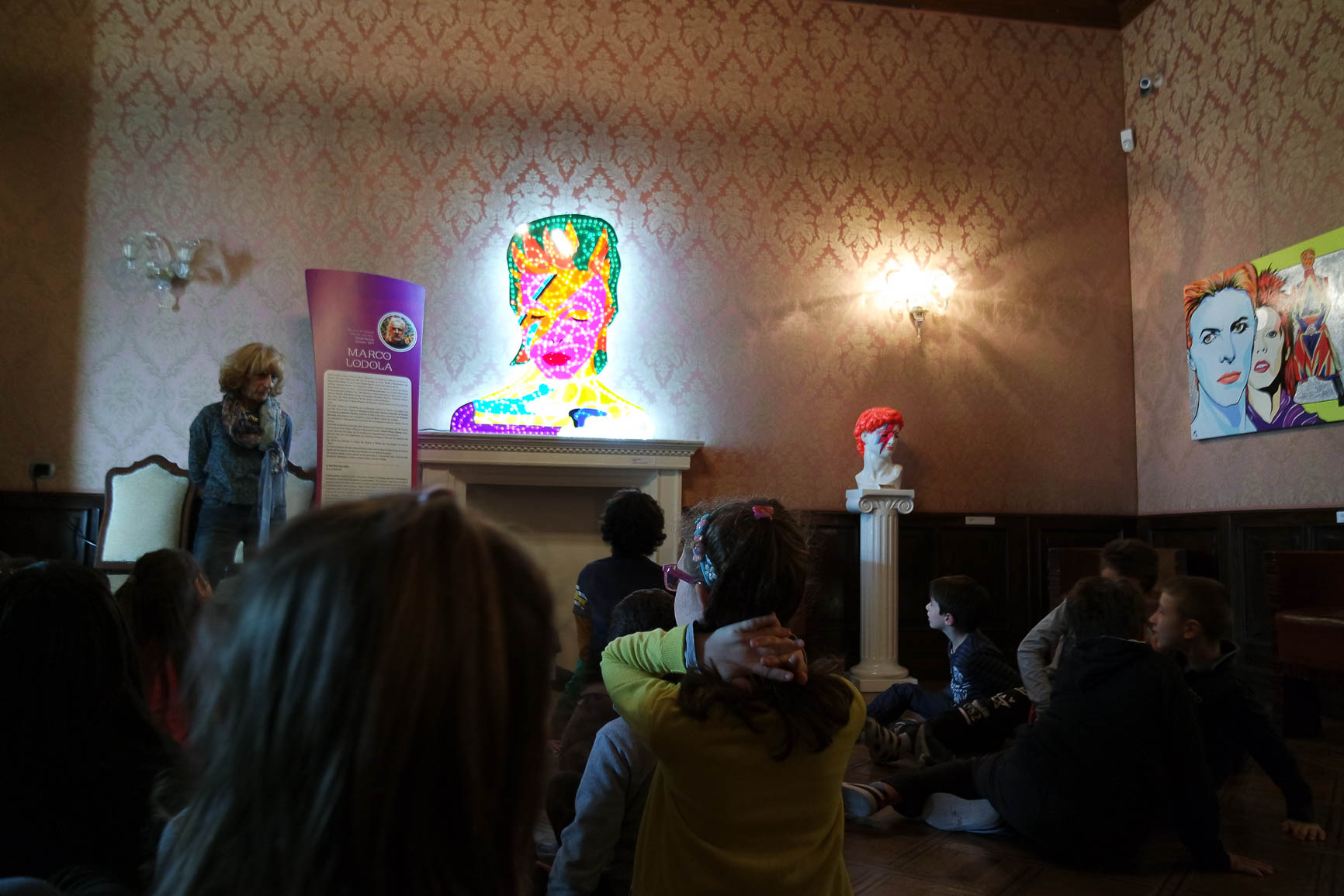 Il contesto in cui attualmente si svolgono i laboratori è la mostra dedicata a David Bowie “The Real Face” il tema del laboratorio è la maschera, attinente per tipo di travestimenti e trasformazioni in cui l’Icona Pop amava calarsi.