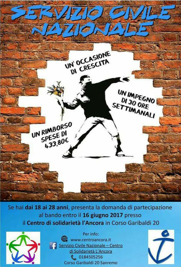 Se avete tra i 18 e i 28 anni e siete interessati all’iniziativa, potete contattare “L’Ancora” entro il 16 giugno 2017 su facebook ( “Servizio Civile Nazionale – Centro di Solidarietà L’Ancora” ), sul sito web ( www.centroancora.it ) o via telefono ( 0184-505256 ).