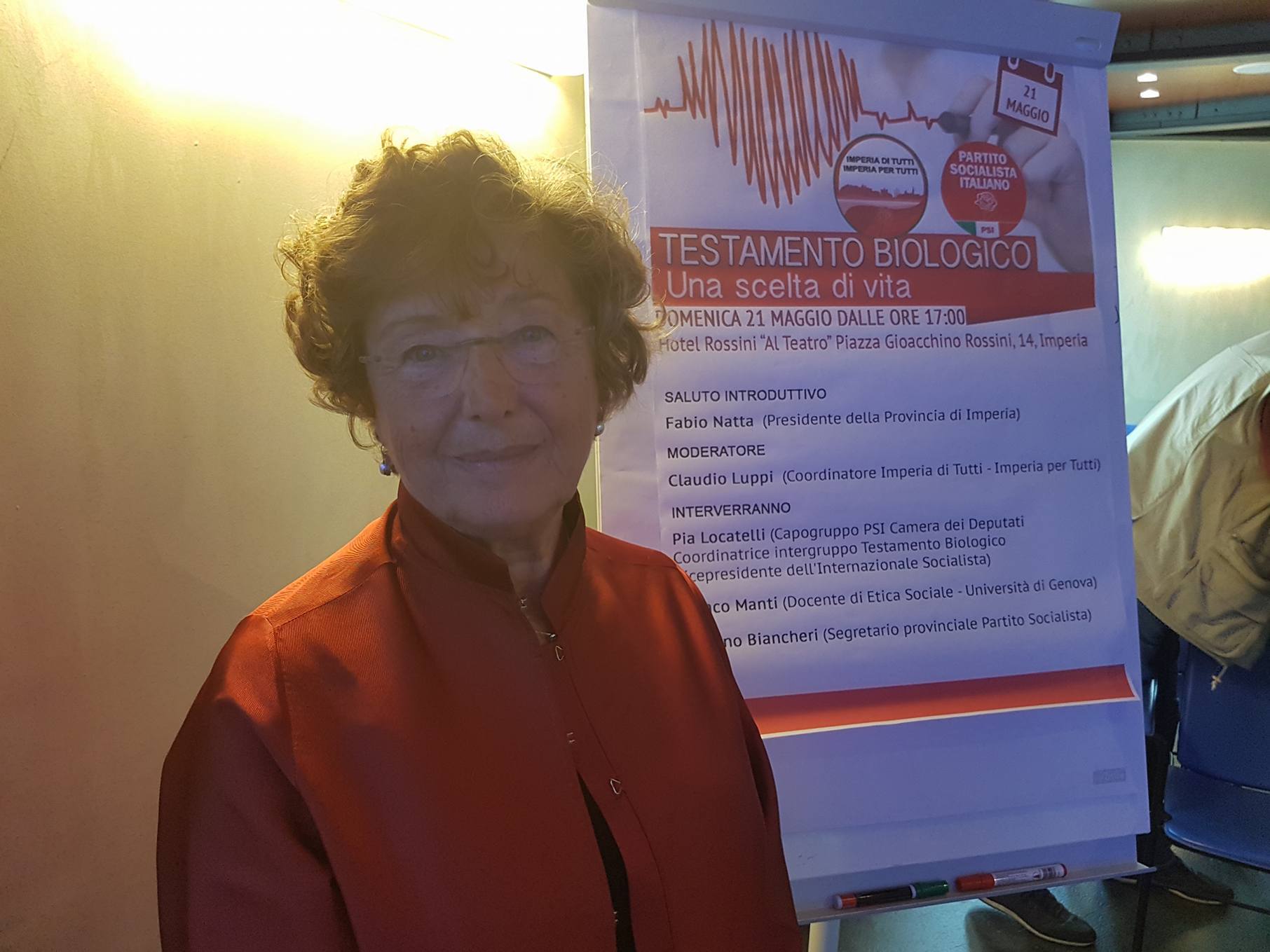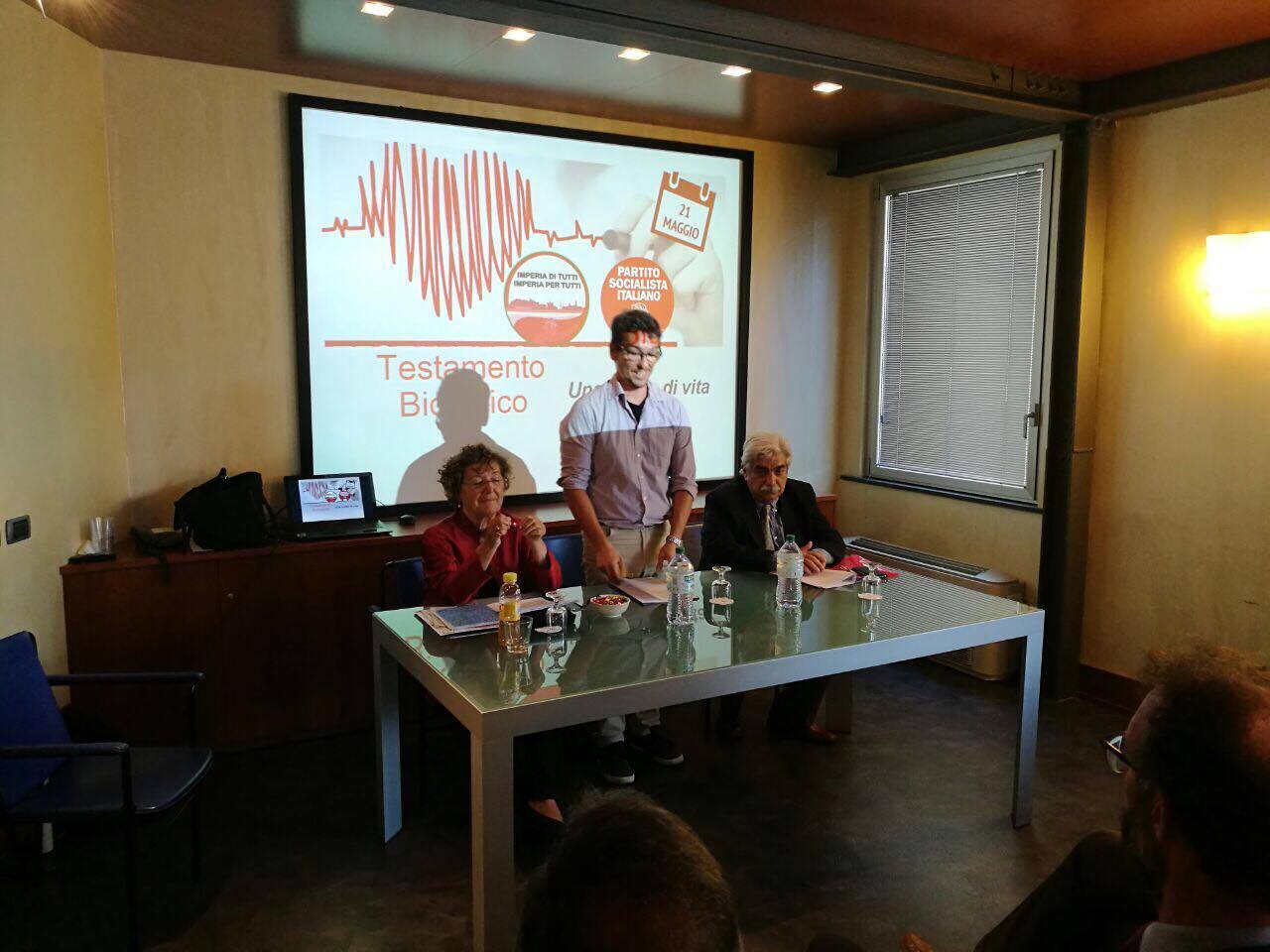 Grande partecipazione all’incontro organizzato da Imperia di tutti Imperia per tutti insieme alla federazione provinciale Partito Socialista all’Hotel Rossini sul tema del Testamento Biologico. Relatori del convegno l’onorevole Pia Locatelli (Capogruppo PSI alla Camera dei Deputati, Coordinatrice Intergruppo Testamento Biologico, Vicepresidente dell’Internazionale Socialista) e il professor Franco Manti (Docente di Etica Sociale – Università di Genova).