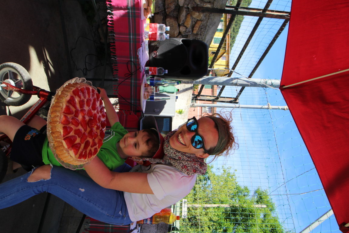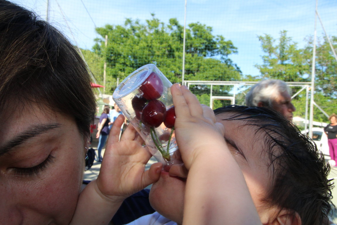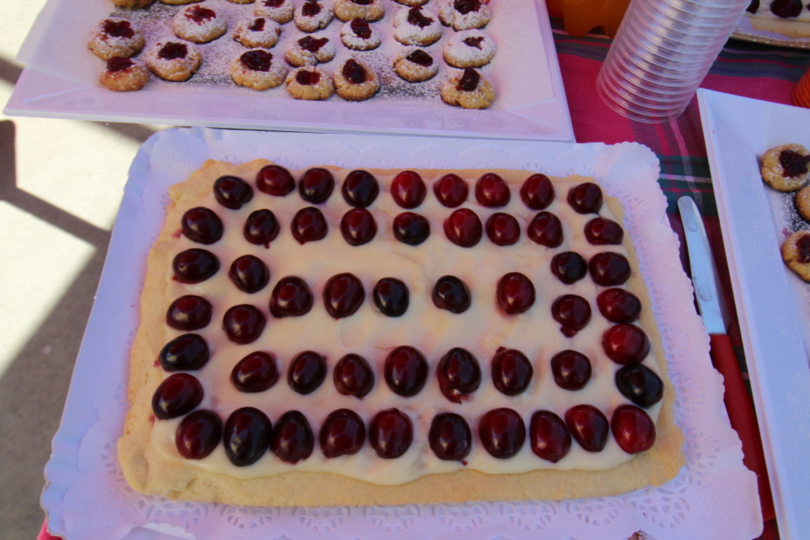 Mai scelta fu più oculata: ciliegie varietà Bigarreau: grandi, lucide, succulente. Per quanto un po’ tutti vi facciano da tempo un salutare spuntino, i frutti sono tanti, tantissimi. Si sfida l’inopinata calura: le mamme e le nonne hanno preparato torte e dolcetti, con la ciliegia come denominatore e la consueta perizia pasticcera tipica di una Comunità di buongustai.