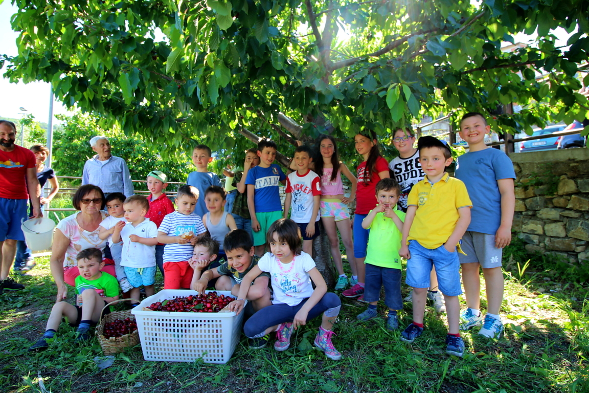 Si parla ormai quasi di una persona, l’adorato ciliegio pubblico piantato anni addietro a fregio del campetto polisportivo degli impianti ludici a monte dell’abitato (è che ci sono anche gli impianti a valle, non manca niente per le giovani generazioni nel paesino della valle dell’Agazza). È così che domenica 21 maggio almeno una ventina di bambini del posto, con qualche amichetto, si ritrovano con le famiglie sotto i rami dell’ormai celebre albero.