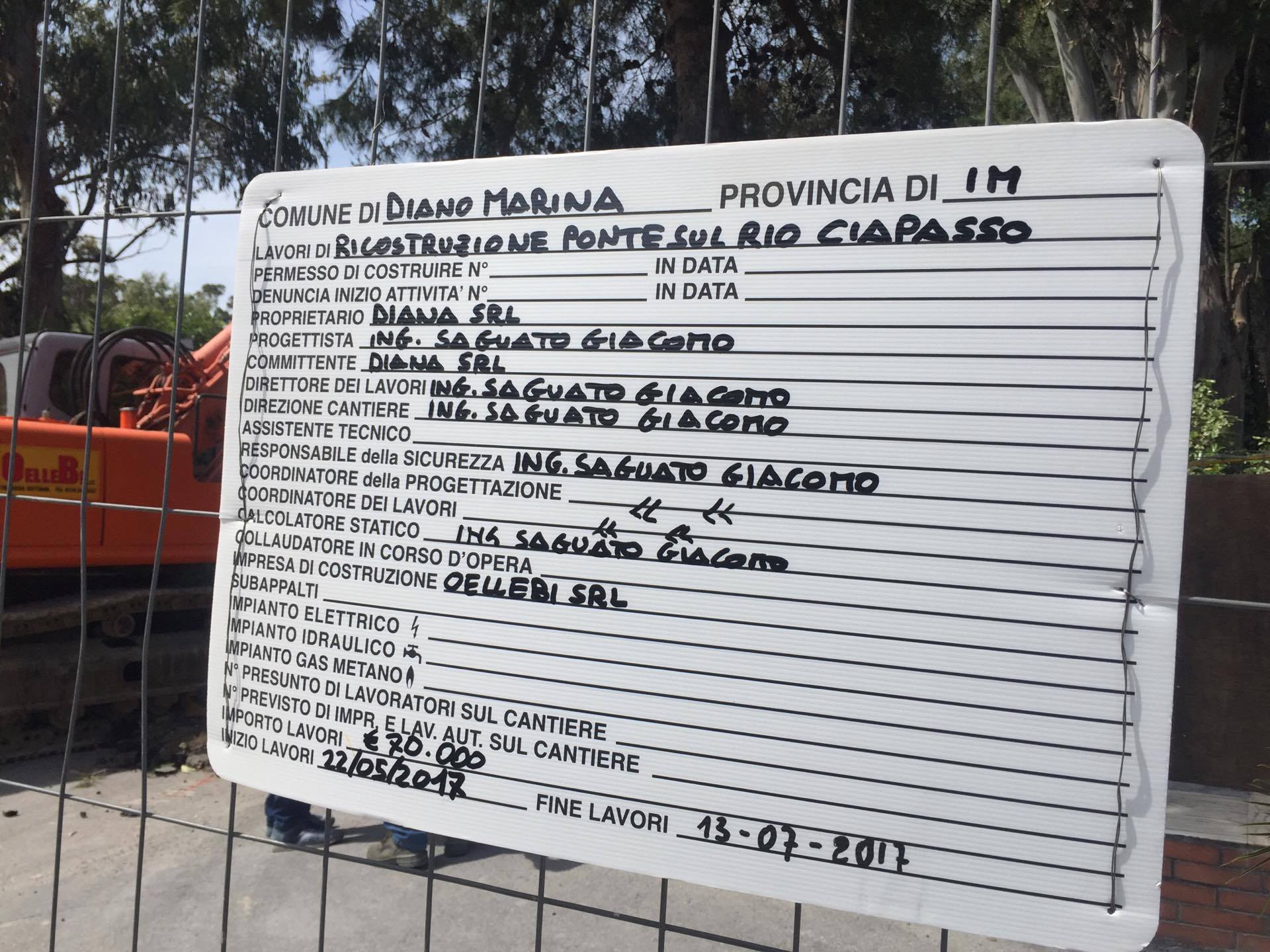 Svolta storica per il futuro del tanto discusso Oasi Park di Diano Marina. Nel primo pomeriggio di oggi, dopo 11 anni di attesa, il titolare dell’Oasi Park, Lucio Quaglio, ha dato il via ai lavori di messa in sicurezza del ponte comunale in via Sori, che attraversa il Rio Ciapasso. Il ponte di proprietà del Comune ma il terreno che è alle due estremità è appunto di proprietà della società Diana Srl. Il ponte fu costruito negli anni 60 per permettere il passaggio dei mezzi pesanti legati alla costruzione dell’Autostrada dei Fiori ma poi non fu mai demolito. La zona poi venne dichiarata esondabile a causa della realizzazione del ponte che malgrado abbia due grandi tubi di scolo non ha evitato l’allagamento della zona nel corso delle alluvioni.
