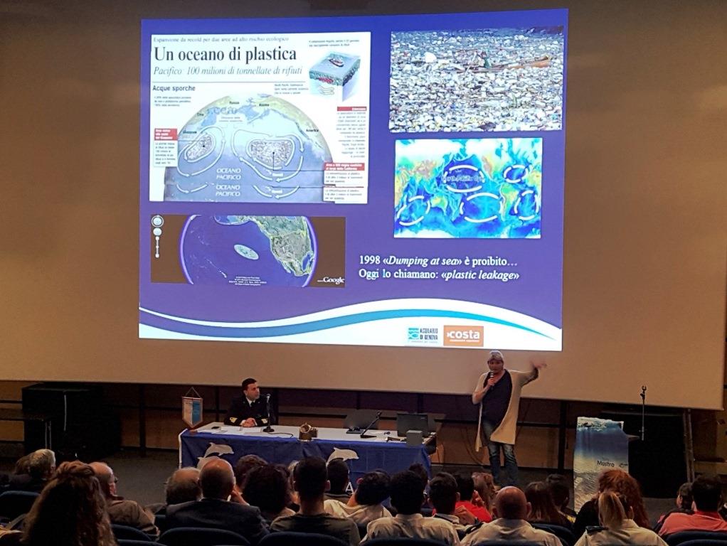 Davanti ad una platea di un centinaio di persone, tra cui molti studenti delle scuole genovesi, si sono alternati oltre alla Presidente dell’Associazione, Rosalba Giugni ed al Comandante della Capitaneria di porto, l’Ammiraglio Giovanni Pettorino, il Consigliere delegato all’ambiente della Città Metropolitana di Genova, Enrico Pignone, e vari esponenti del mondo scientifico ed armatoriale, tra cui il Prof. Bavestrello dell’Università di Genova, la D.ssa Bertolotto dell’A.R.P.A.L., la D.ssa Gili, direttore scientifico dell’Acquario e l’Ing. Canevari, Energy Manager della Compagnia GNV.