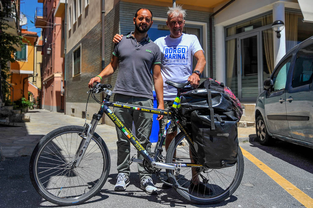 Con la sua bicicletta percorre tutto e cerca di conoscere i borghi del mondo, in Italia, su Imperia. È stata una bella soddisfazione averlo qua, devo ringraziare anche il Civ di Borgo Marina che lo ha accolto.