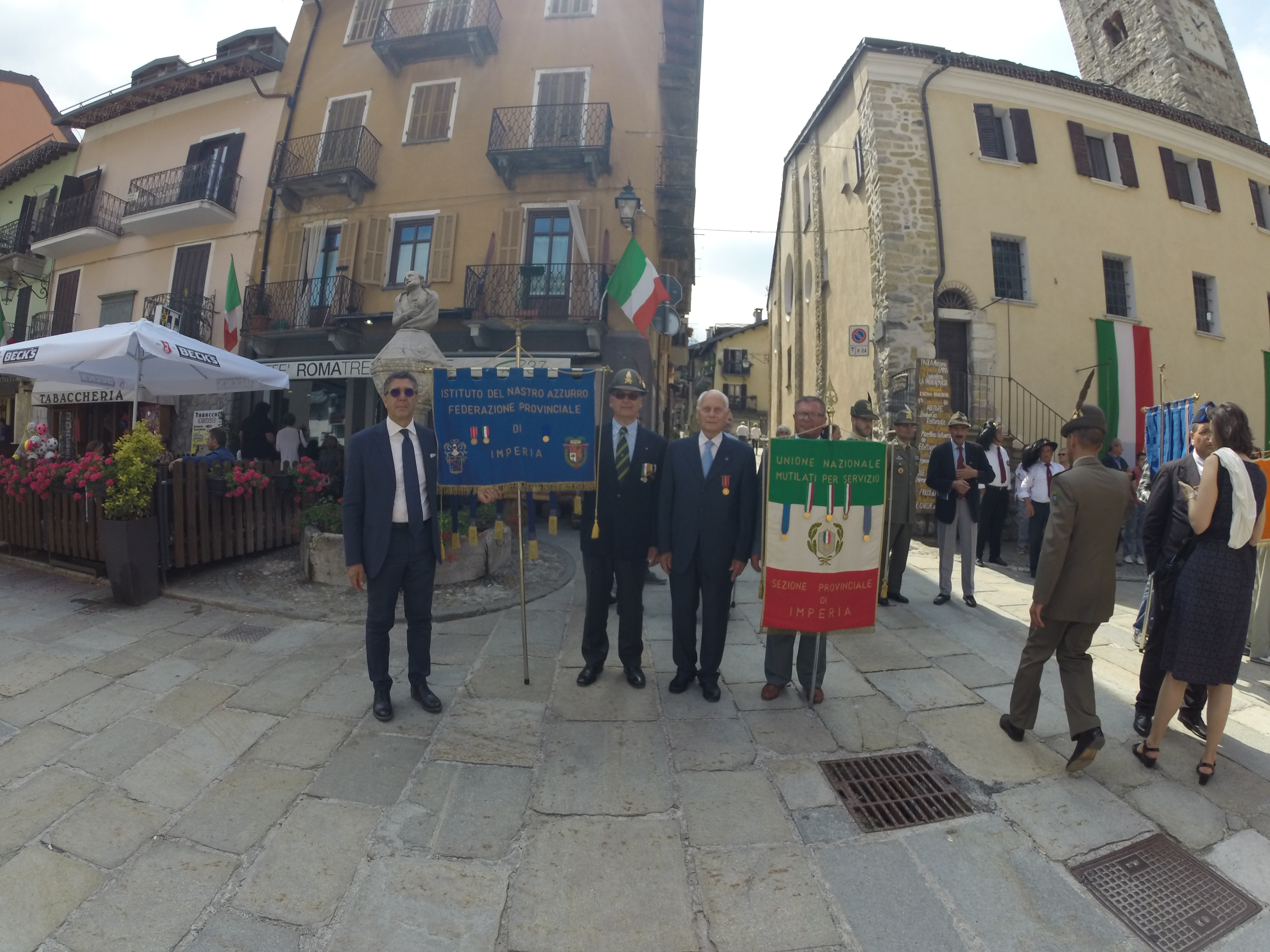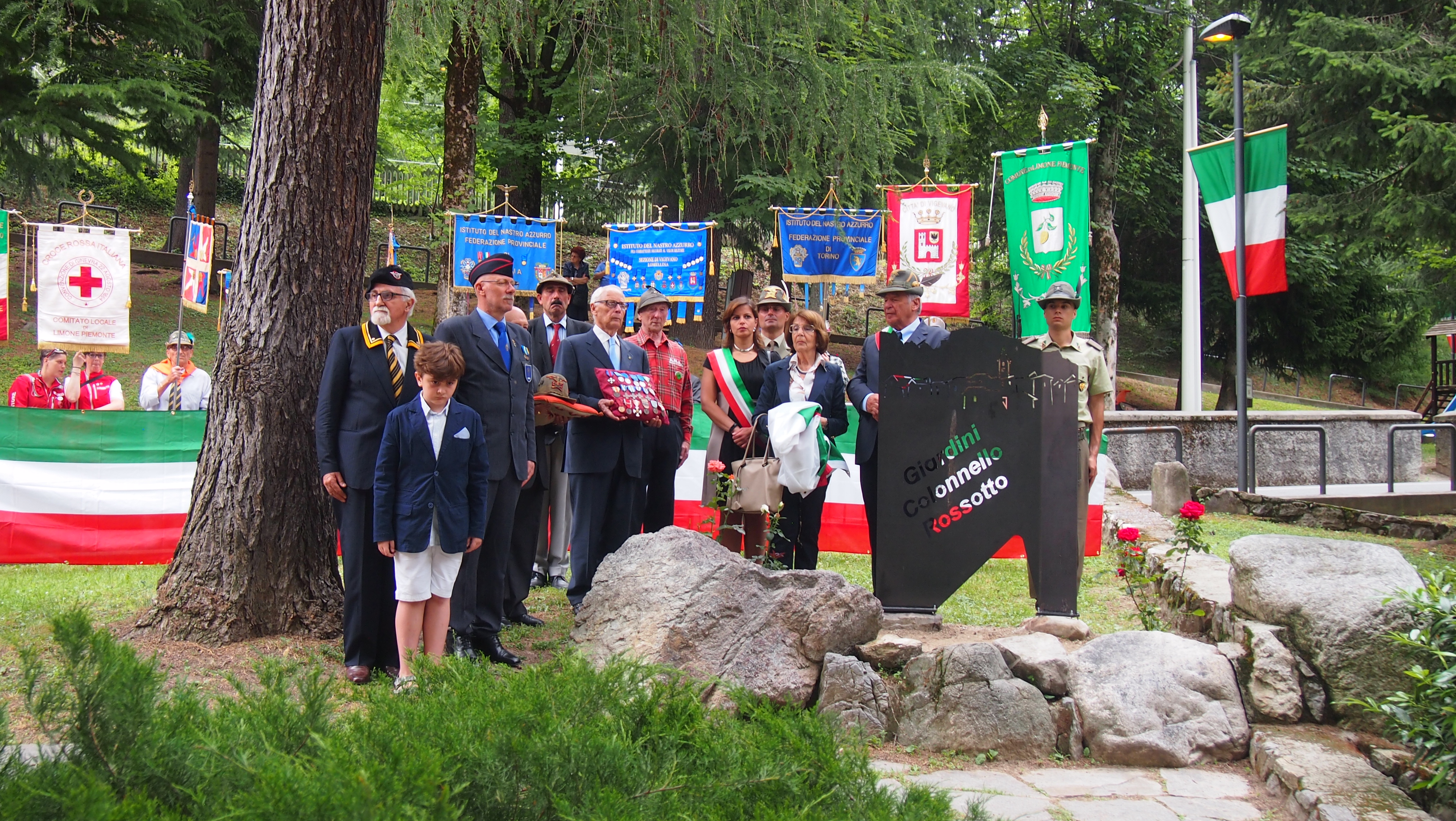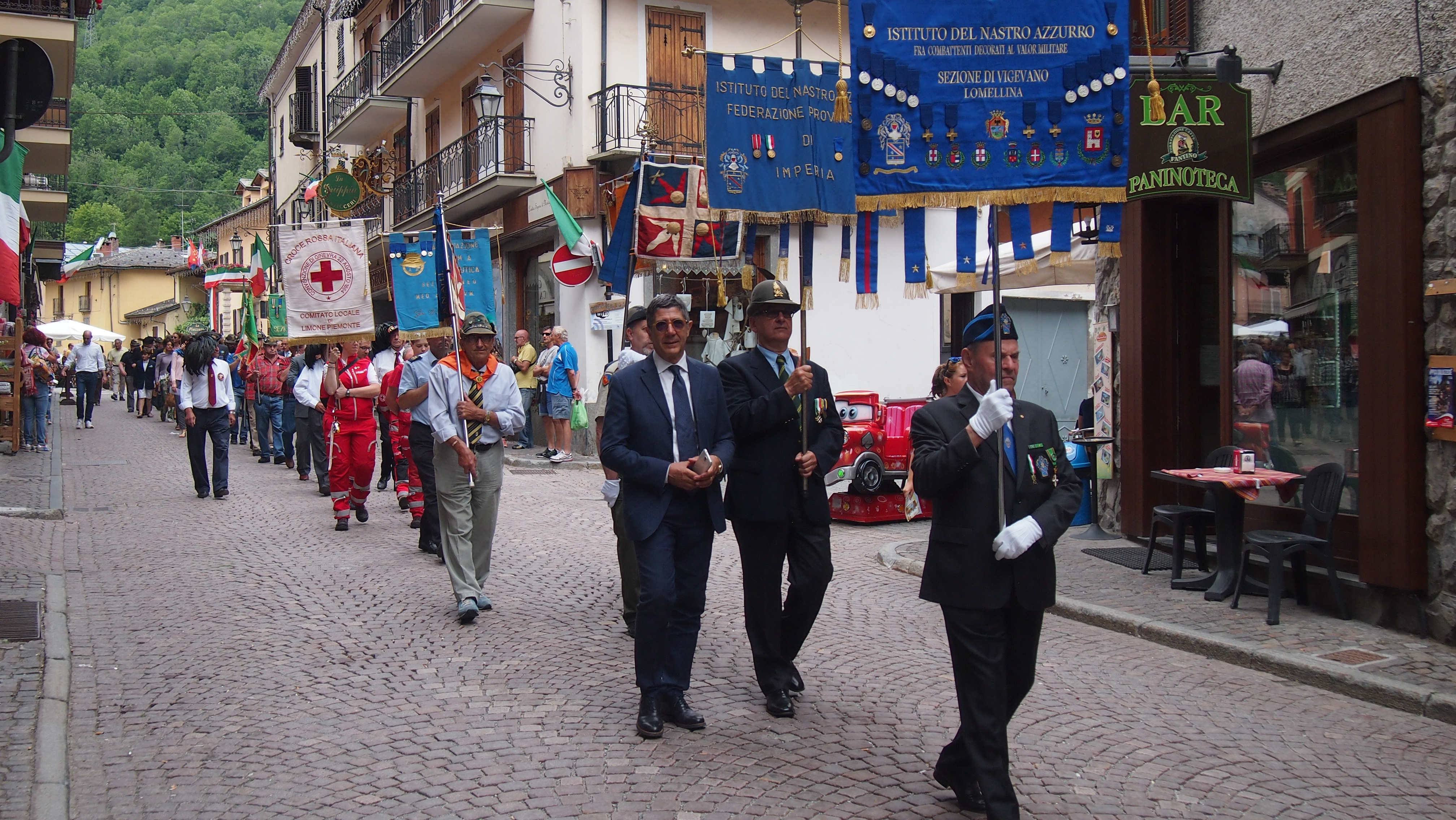 Alla cerimonia hanno partecipato, accanto al sindaco di Limone Piemonte Angelo Fruttero, il presidente della Sezione di Vigevano e Lomellina dell’Istituto del Nastro Azzurro fra combattenti decorati al valor militare Brigadiere Capo dei Carabinieri Calogero Modica, il presidente della Federazione Provinciale di Imperia Comm. Brunetti Antonio medaglia d’oro V.T. e il presidente del Gruppo Alpini di Limone Fedele Gertosio, insieme a numerose autorità civili e militari.