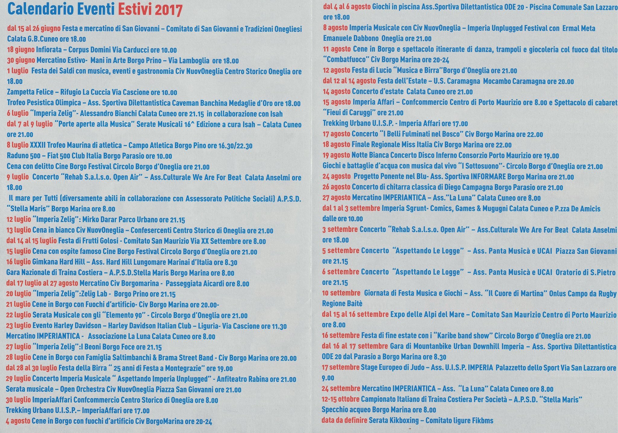 Un grosso lavoro di collaborazione con tutti i Civ imperiesi, con tutte le associazioni di categoria, con tutti i singoli, volontari e persone imperiesi che si sono impegnate per mettere su le loro idee e alla fine cercare di portare a casa quello che è stato oggi pubblicizzare e sponsorizzare un calendario delle manifestazioni estive.
