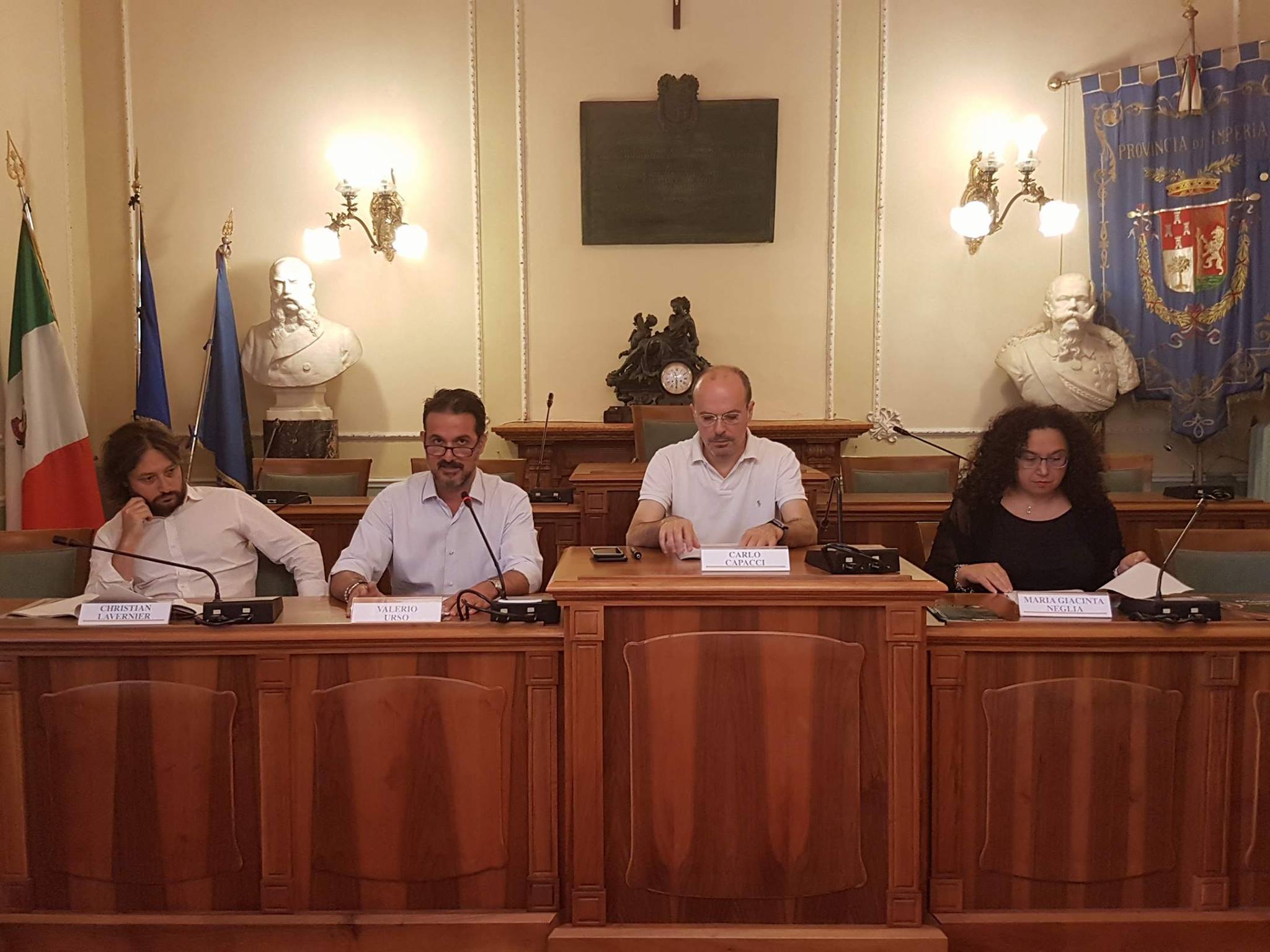 Presenti il sindaco di Imperia Carlo Capacci in veste di consigliere provinciale, per sostituire il presidente della Provincia Fabio Natta, il sindaco di San Bartolomeo al Mare Valerio Urso, il direttore artistico Christian Lavernier, il vicesindaco di San Bartolomeo al Mare Maria Giacinta Neglia.