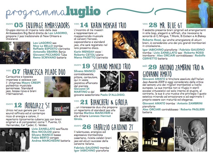 Imperia. Per la quarta settimana del FESTIVAL WE GOT THE JAZZ ESTATE a “I Sognatori” in Largo Varese aPorto Maurizio zona Borgo Foce saranno ospiti:
