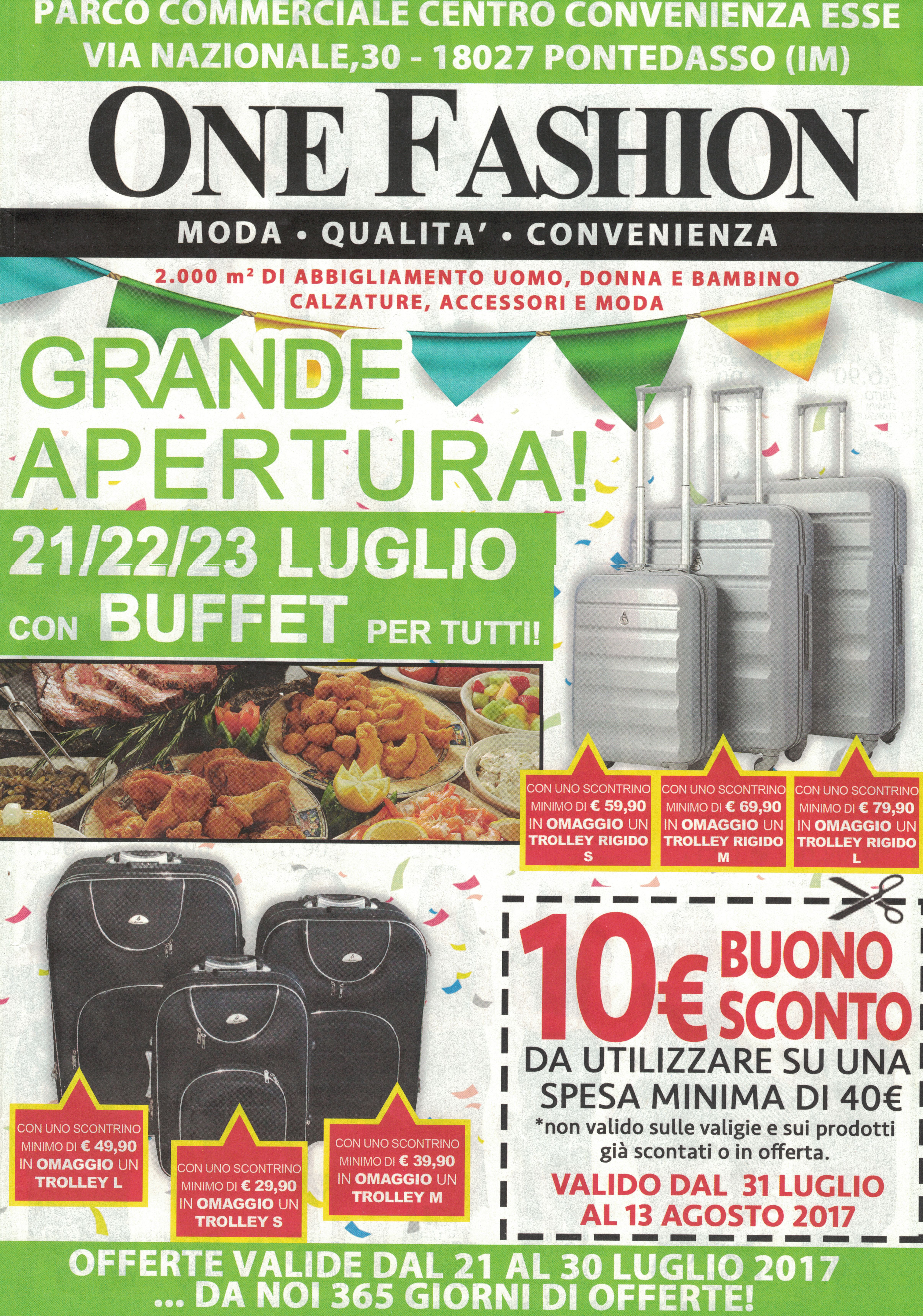 Pontedassio. Ha aperto il 21 luglio scorso One Fashion, in Via Nazionale 30, all’interno del Parco Commerciale del Centro Convenienza Esse. One Fashion è già presente con altri punti vendita in tutto il Nord Italia, fra cui il più vicino è quello di Cisano sul Neva.