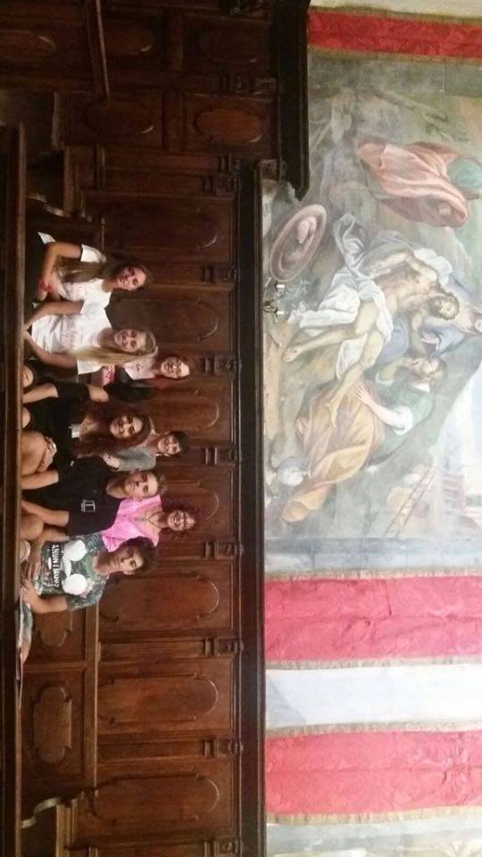 Nell’immagine un gruppo di studenti in stage ed un particolare dello straordinario Oratorio dell’Assunta che risale al 1715 e che si trova adiacente al complesso della Madonna della Ripa ed al Museo di Arte Sacra, e un altro gruppo davanti alla Collegiata di San. Giovanni Battista.