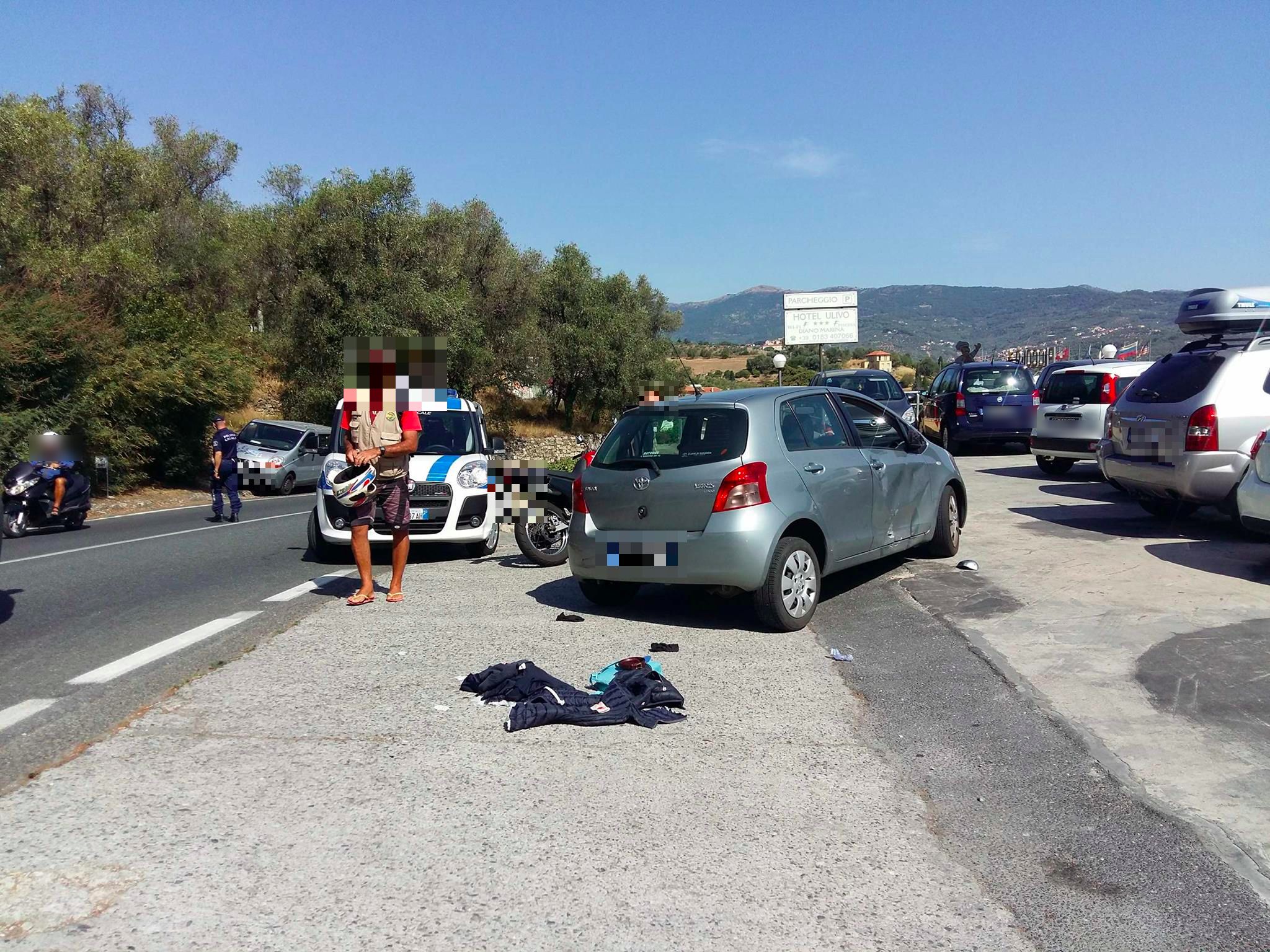Diano Marina. Violento scontro tra un’auto e una moto sul Berta nella mattinata di oggi, all’altezza dell’Hotel Ulivo.