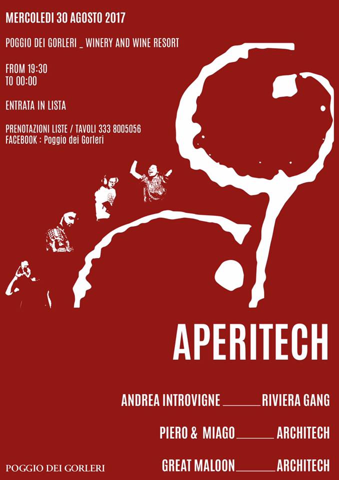 Poggio dei Gorleri vi invita Mercoledì 30 agosto dalle ore 19:30 sulla sua esclusiva terrazza immersa tra le vigne e a bordo piscina, per una degustazione attraverso i sapori della tradizione ligure, accostata ad un dj set techno.