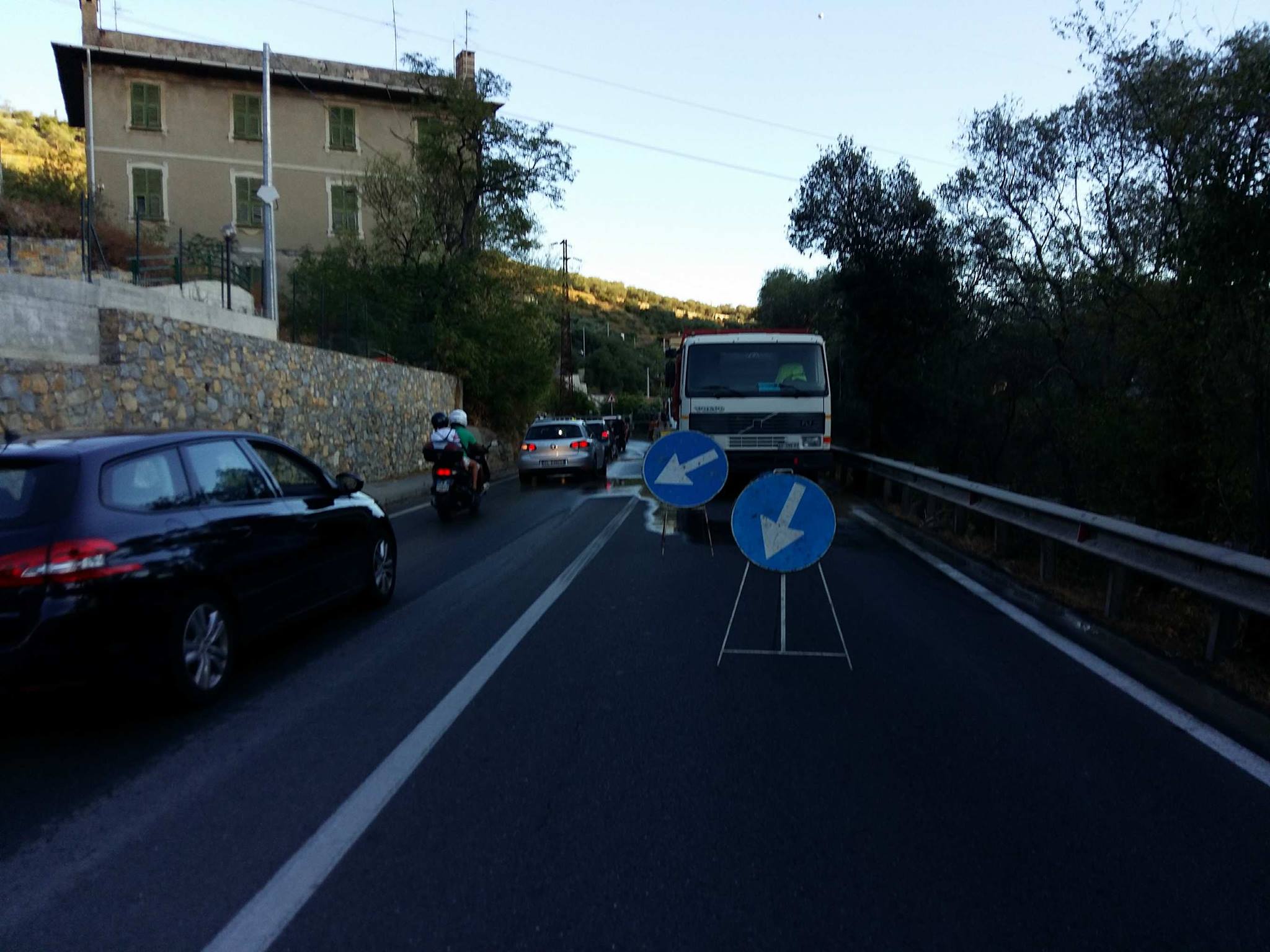 Autisti infuriati questo pomeriggio in via Nazionale, tra Imperia e Pontedassio. A causare i forti rallentamenti la rottura di un tubo dell’acqua. Il guasto è stato segnalato intorno alle ore 16.30 e gli operai dell’Amat sono intervenuti per riparare il danno, chiudendo parte della carreggiata. Il traffico è andato in tilt, con oltre due km di coda tra la rotonda di Castelvecchio e l’ex centrale elettrica.