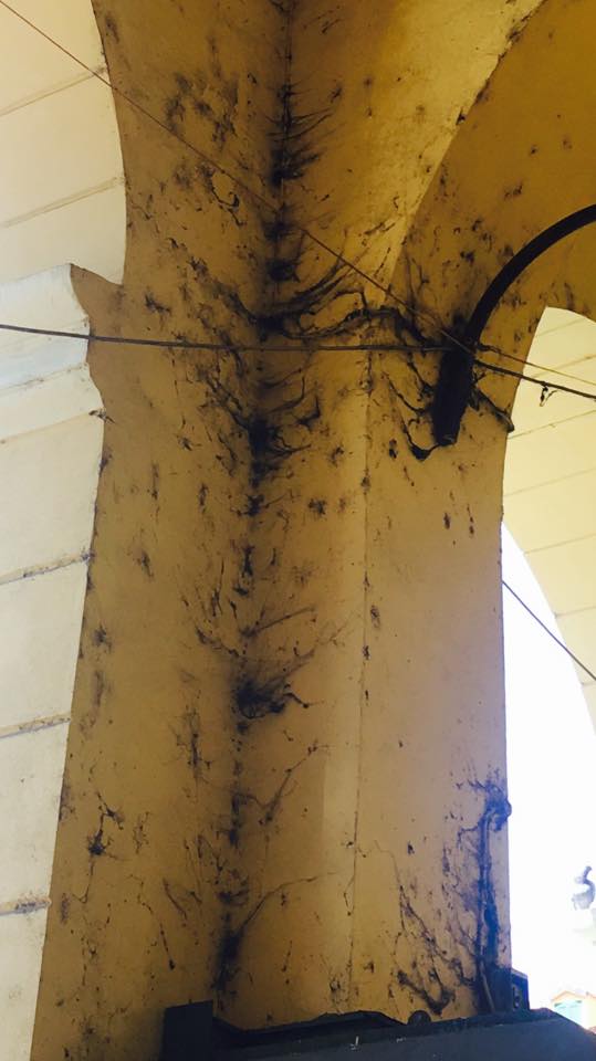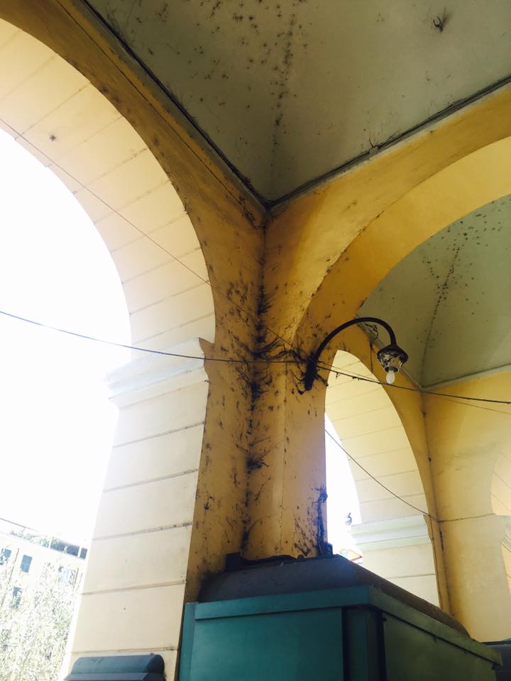 “Imperiesi che avete attività lì vicino, o anche semplici imperiesi per amore della propria città (e siamo nell’angolo centrale di piazza Dante sotto i portici), non vi viene voglia di prendere un bastone lungo con applicato uno straccio e dargli una pulita? Sono ragnatele, trappole di ragnetti per catturare moscerini.