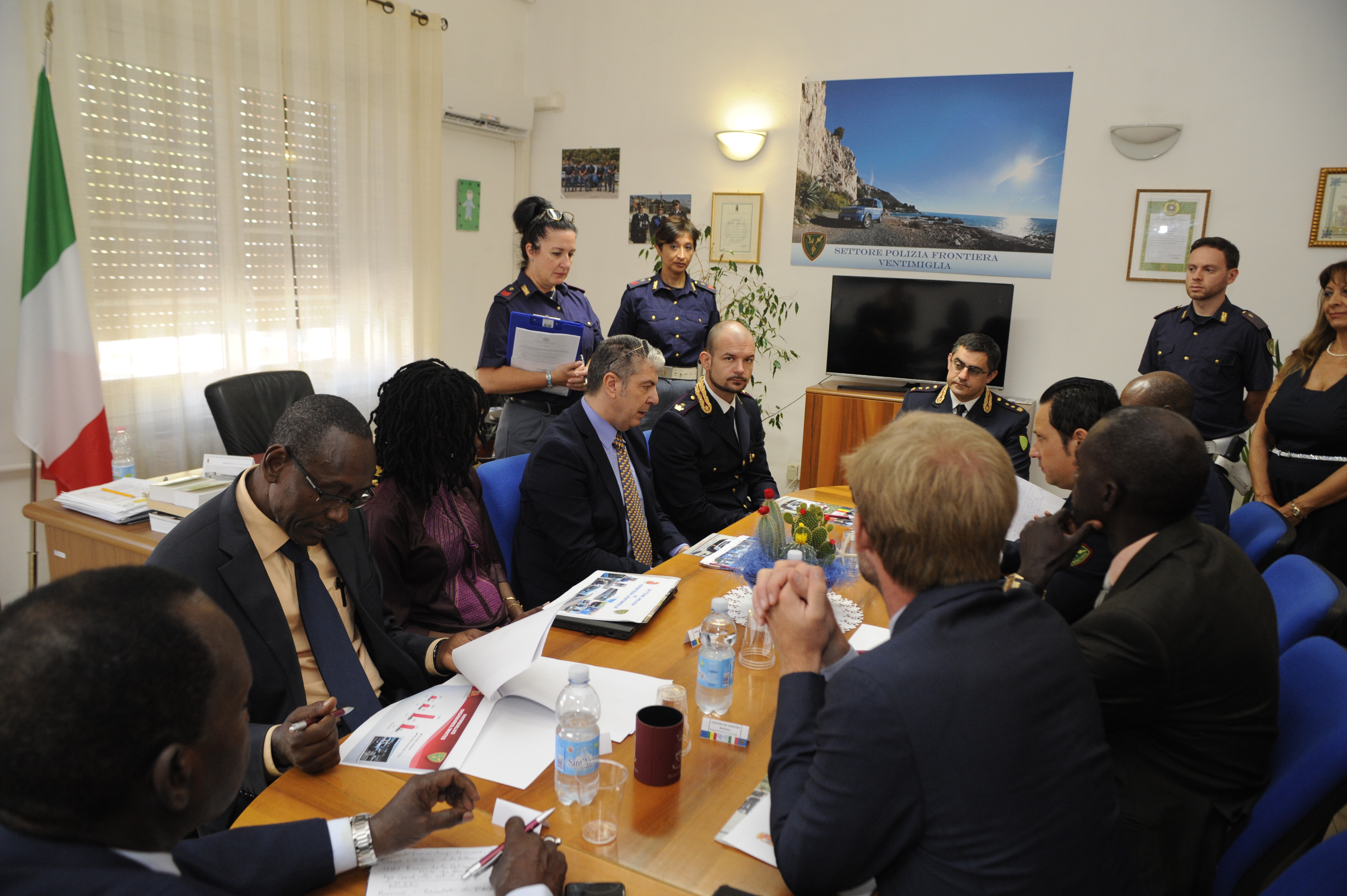 Si è svolta ieri con grande interesse ed entusiasmo, la visita effettuata da una delegazione di alti Funzionari delle forze di sicurezza senegalesi al Settore Polizia Frontiera di Ventimiglia, nell’ambito del progetto “Supporto alla gestione delle frontiere”, finanziato dall’Unione Europea e realizzato dall’OIM, organismo internazionale delle Nazioni Unite incaricato delle Migrazioni.