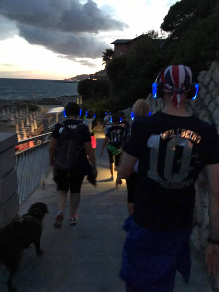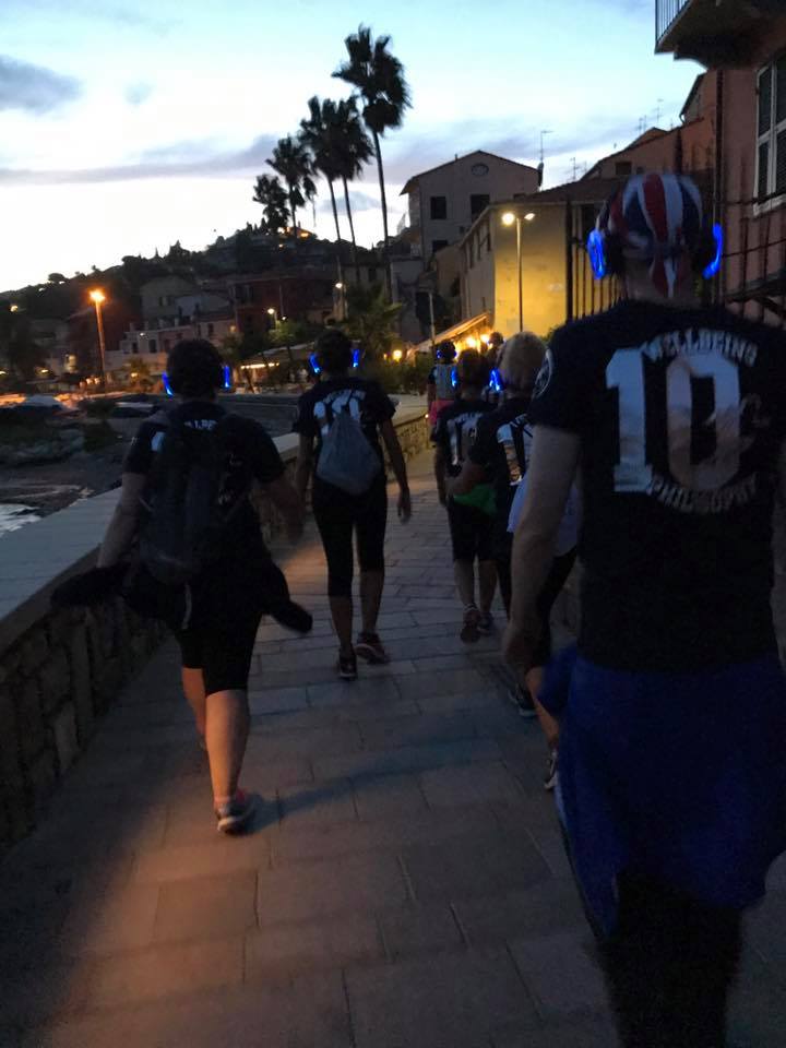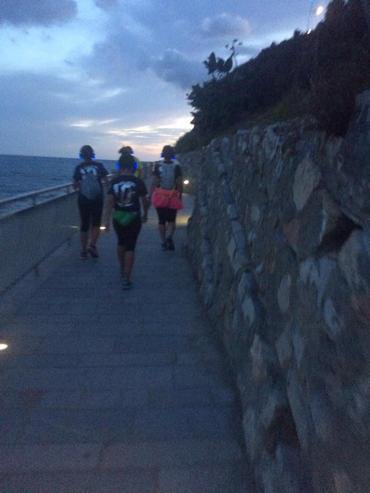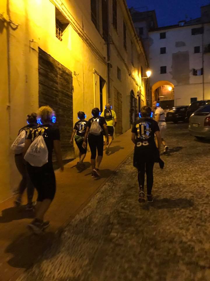L’idea è nata dalla volontà di testare la preparazione, dopo tutto un inverno di allenamento in palestra, all’esterno. Inoltre, queste iniziative si svolgono già in alcuni posti d’Italia e, dati i meravigliosi luoghi di Imperia, ci è sembrata un’ottima idea sfruttare le bellezze che abbiamo. Così abbiamo contattato il master trainer di Milano, abbiamo affittato le cuffie e ci siamo organizzati per portare la camminata per le vie della città.