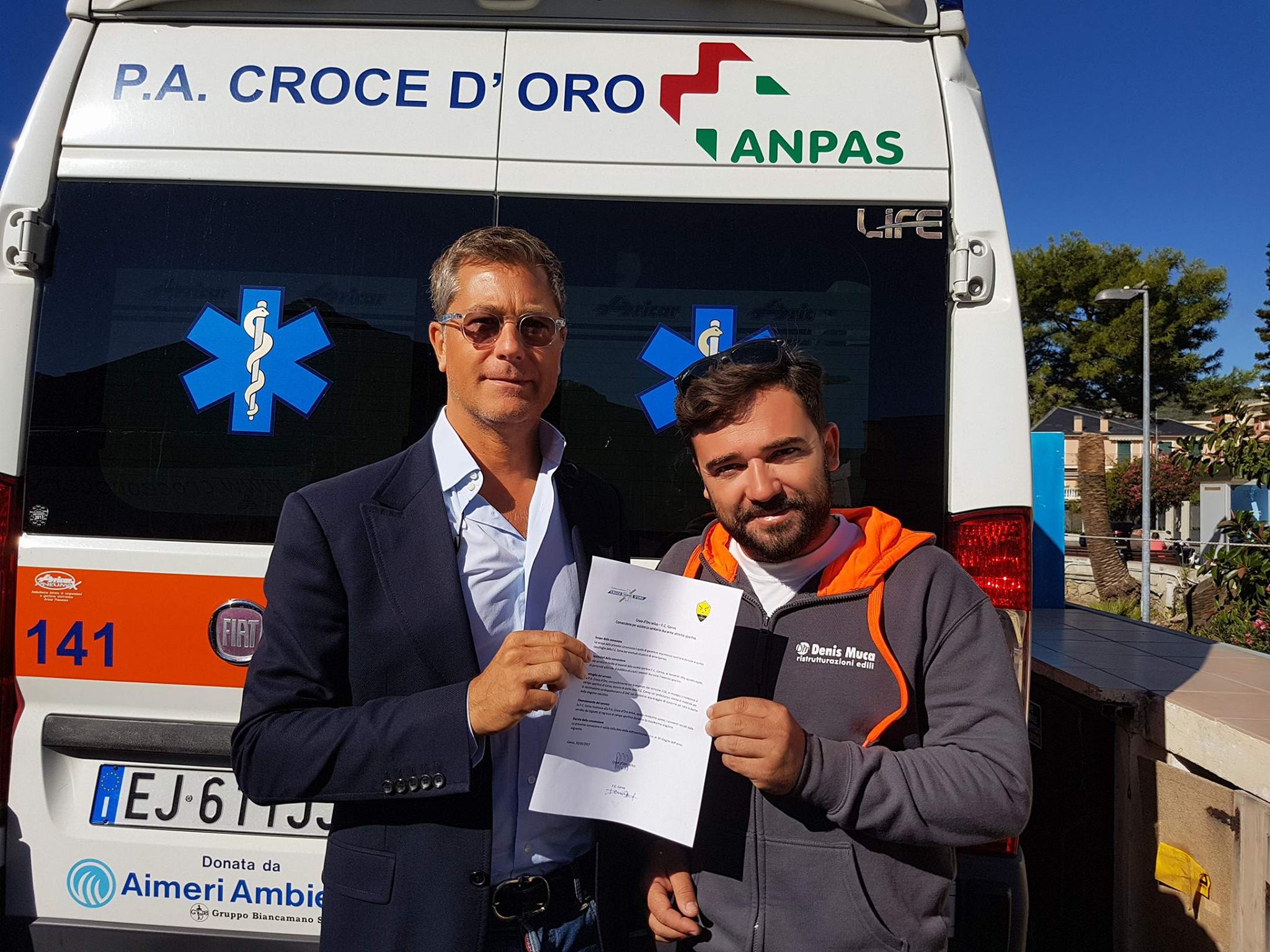 “La P.A. Croce d’Oro, compatibilmente con le esigenze del servizio 118, si impegna a mantenere al campo sportivo di Cervo, durante le partie della F.C. Cervo un’ambulanza dotata di materiale per la rianimazione cardiopolmonare e di DAE con il relativo equipaggio di soccorso per tutta la durata della stagione calcistica.