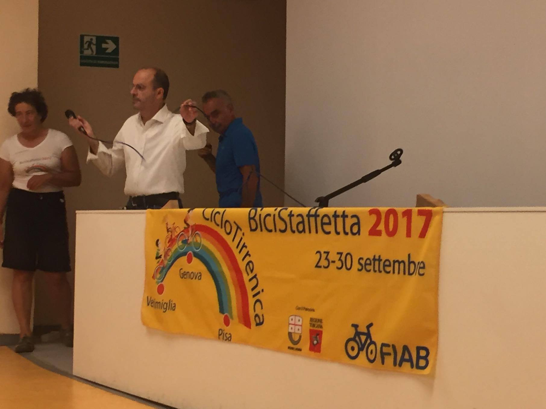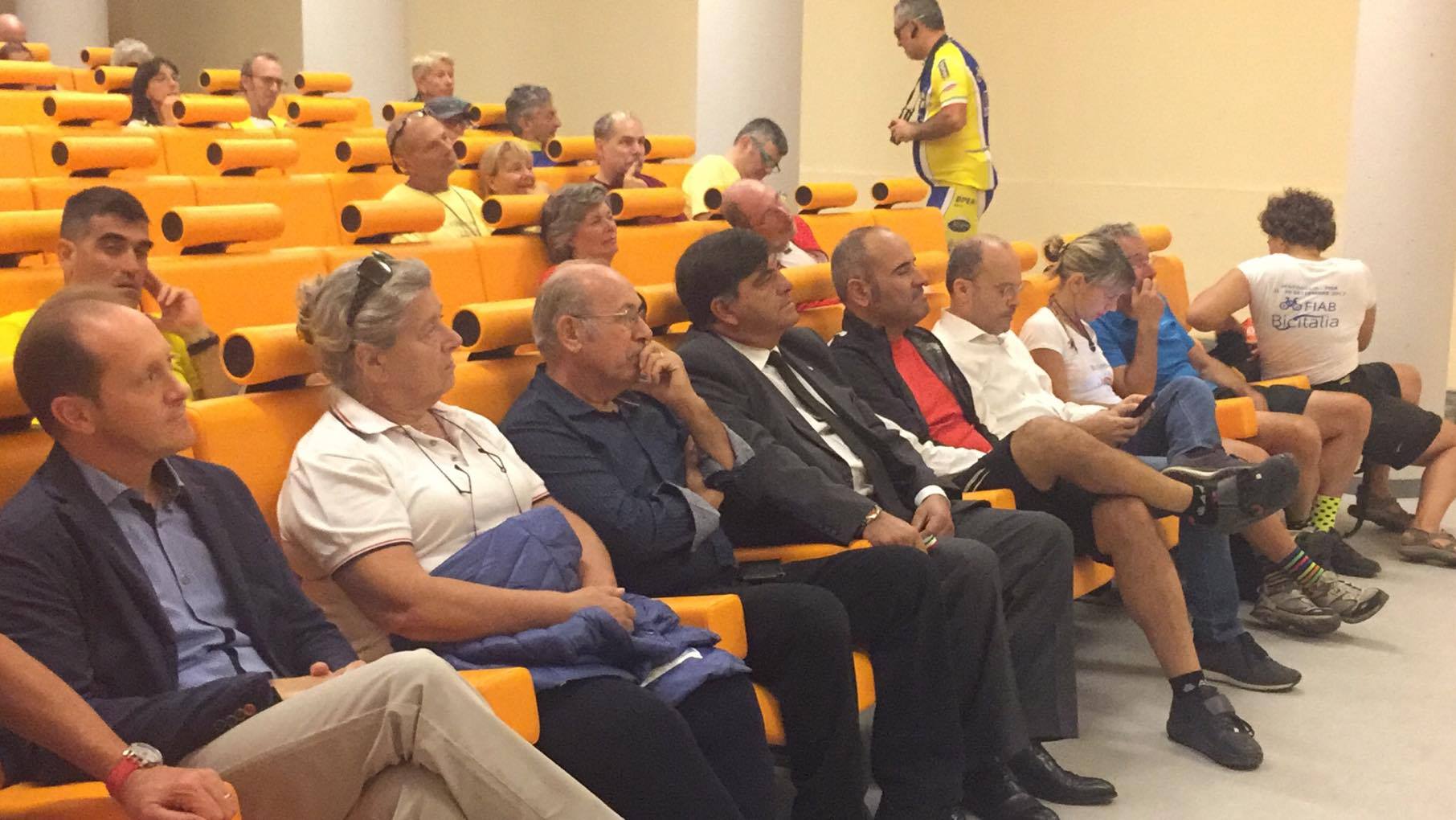 Sono arrivati in circa 50 in sella alle loro biciclette fino all’auditorium del museo navale di Imperia. Ad accoglierli il sindaco Carlo Capacci e l’assessore ai lavori pubblici Guido Abbo assieme ad altri esponenti dell’amministrazione. Presente anche il sindaco di Andora Mauro Demichelis mentre i colleghi del Golfo Dianese, invitati all’evento, non si sono presentati.