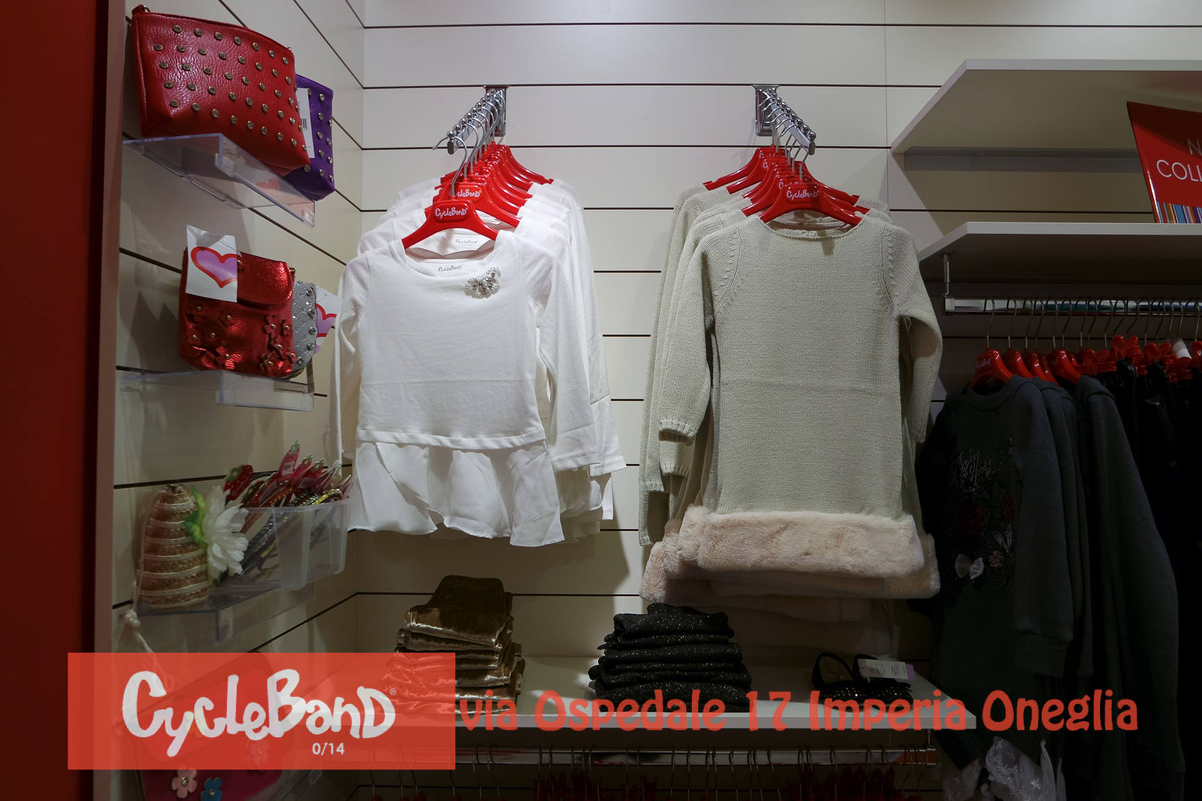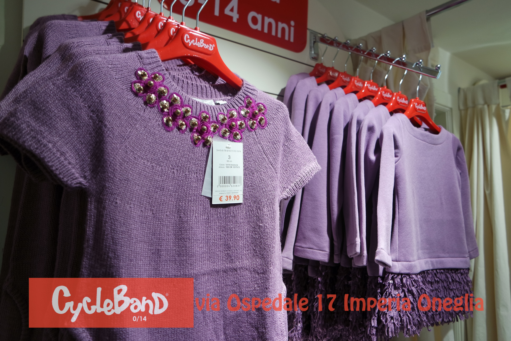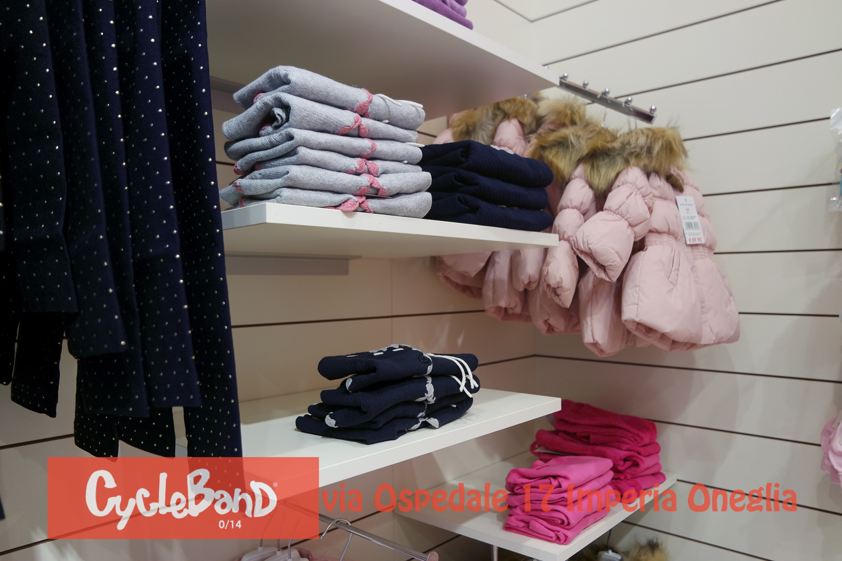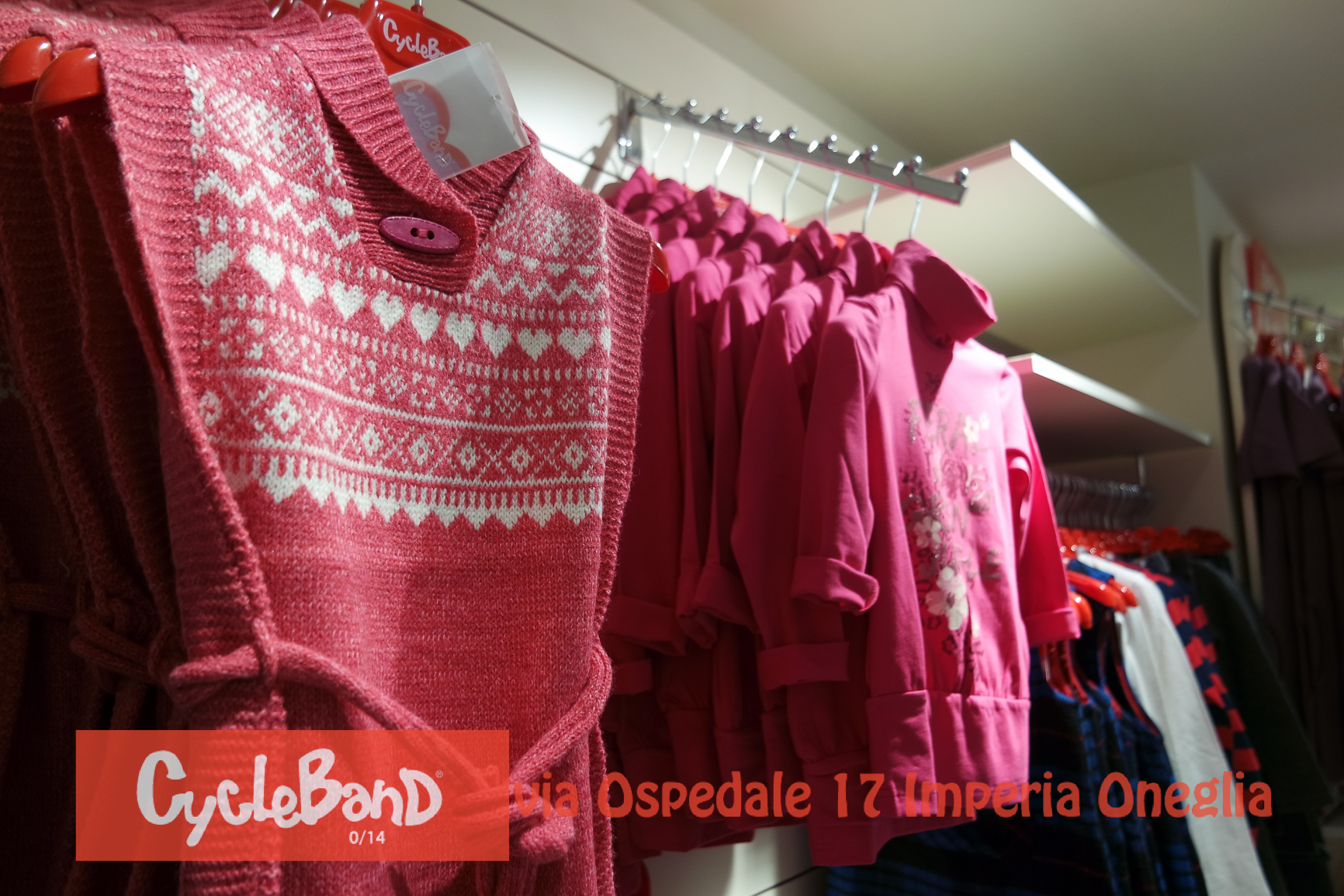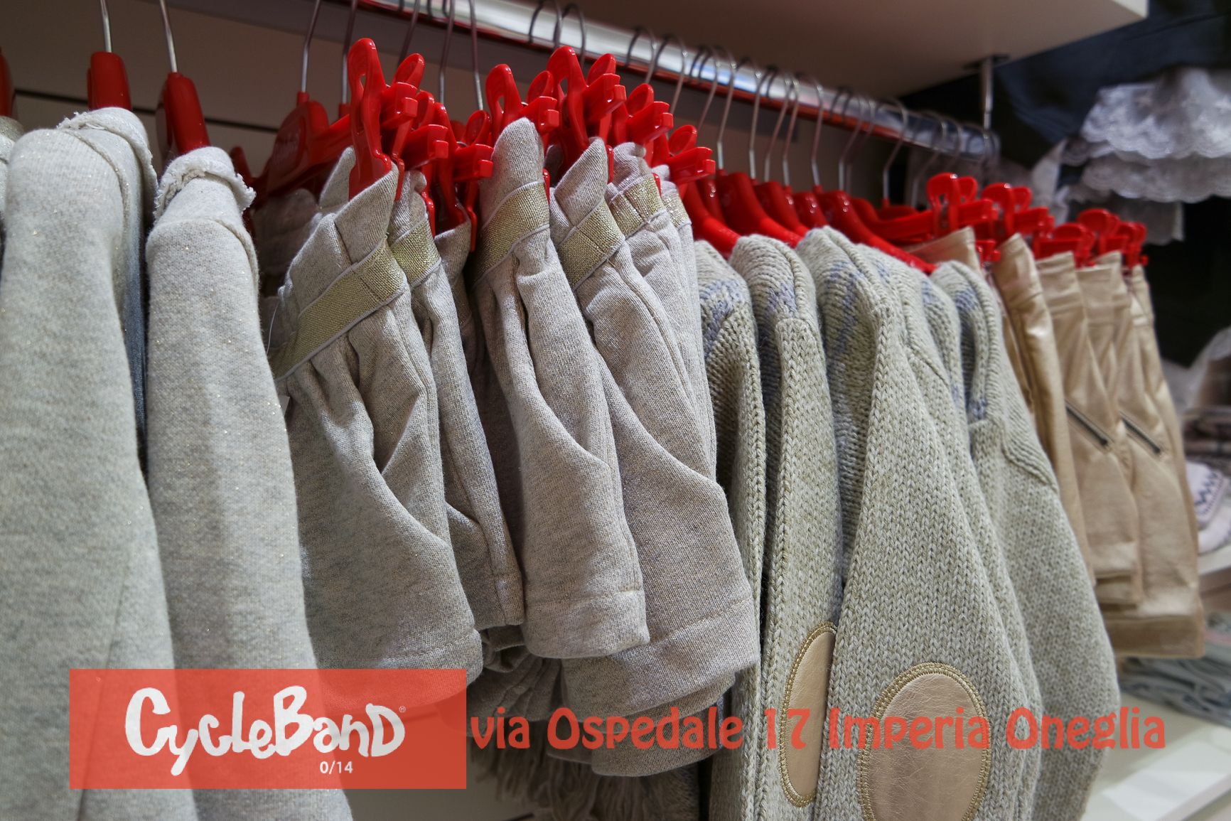 La fascia di prezzo dell’abbigliamento parte da € 9.90per arrivare sino ai 79.90 dei capispalla. Completano l’offerta bavaglini, intimo, accessori e bijoux trendy, pigiami, costumi, copertine, pashmine, collant, calze e borsette. Da Cycleband aderendo alla carta fedeltà, si raccolgono punti per sconti e durante l’anno vengono proposte svariati coupon sconto/o promozioni con accessori in regalo( quella attuale regala lo zainetto a fronte di un acquisto di minimo di € 49.90)
