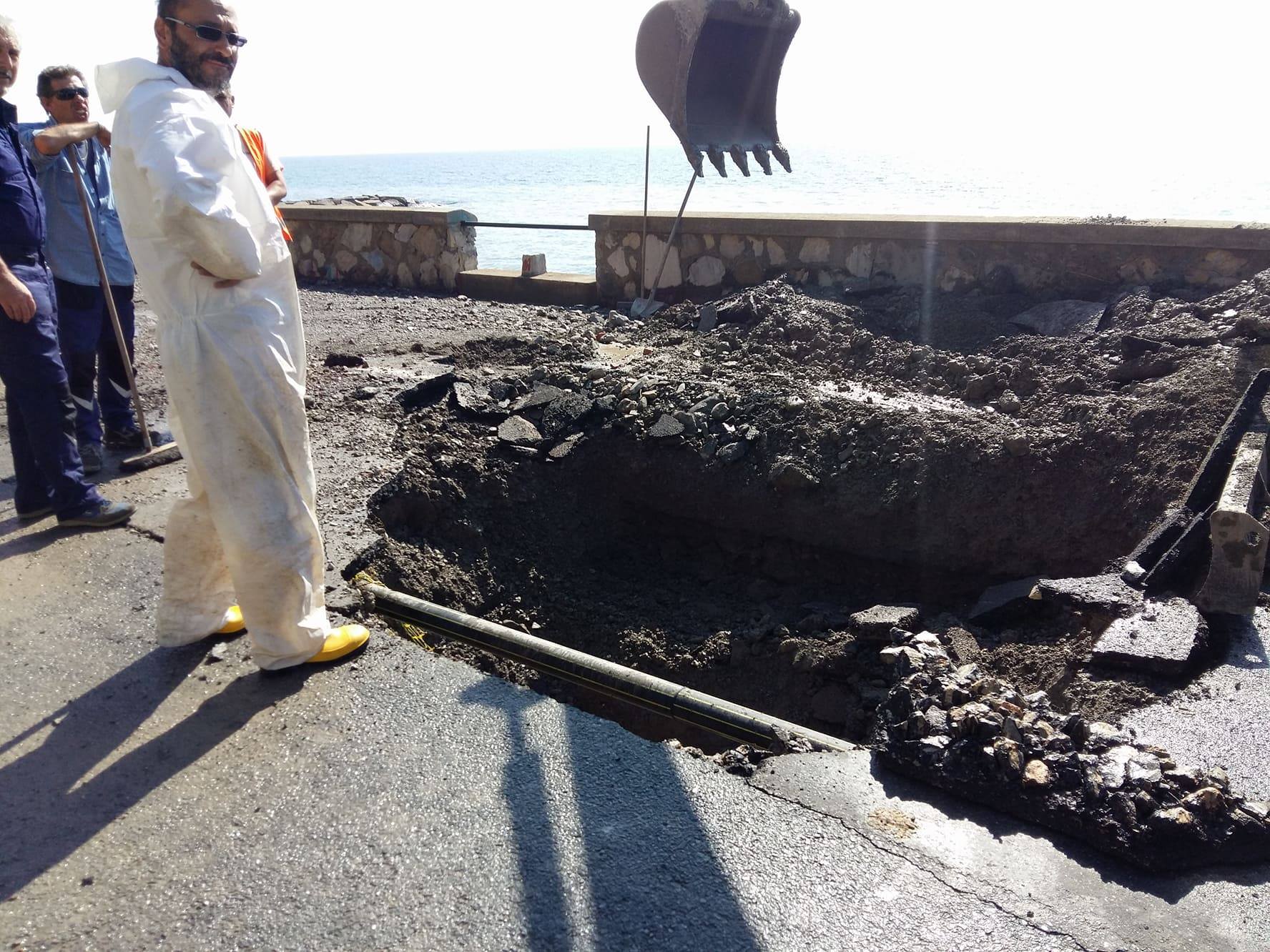 Mattinata da incubo per gli operai dell’Amat. Neanche il tempo di riparare la rottura dell’acquedotto, l’ennesima degli ultimi giorni, nei pressi della Galeazza, che un analogo guasto si è verificato poche centinaia di metri prima, all’altezza del Papeete Beach, con l’acqua che, sgorgando dalla nuova rottura, ha allagato parte di via Novaro.
