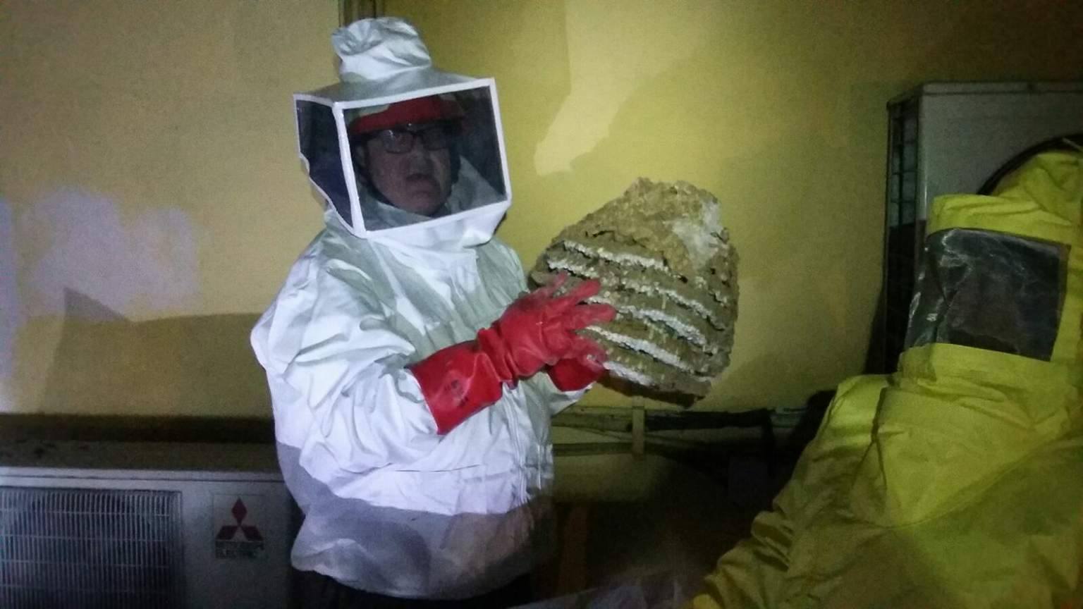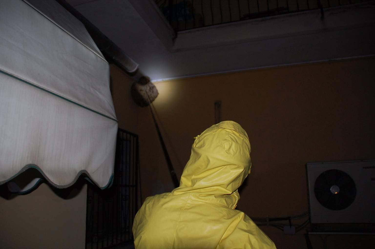 Questa volta, il nido si trovava sul retro della farmacia di Caramagna. L’intervento di neutralizzazione è stato eseguito di notte per motivi di sicurezza.